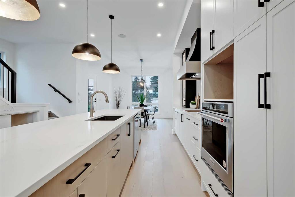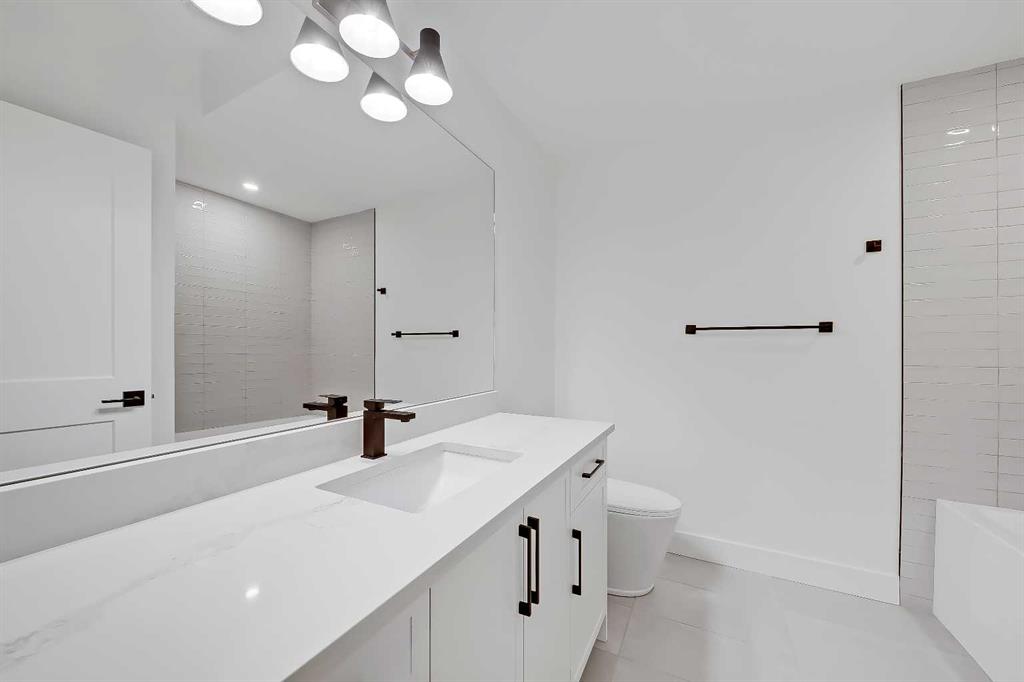 MOVE IN TODAY! Fall in love with this brand new SEMI-DETACHED home in family-friendly RENFREW! This exquisite modern farmhouse offers high-quality upgraded finishes & over 2,640+ sq ft of developed living space across 4 BEDROOMS and a fully developed basement! Situated just moments from the Renfrew Aquatic & Rec Centre, the Renfrew Community Assoc., and the Renfrew Off-Leash Park, you’ll quickly appreciate the active lifestyle you can maintain in your new infill home! The main floor features a chef-inspired kitchen w/ ceiling-height custom cabinetry, a modern tile backsplash, designer pendant lights, an oversized island w/ ample bar seating, a large built-in pantry, & stainless-steel appliances, including a gas cooktop, French door fridge, custom hood fan, and dishwasher. The spacious living room centres on a stunning gas fireplace w/ a tile surround & custom millwork on either side, w/ direct access to the backyard through sliding glass doors. The large dining room offers oversized windows overlooking the front yard, while a hidden mudroom with built-in benches & full-sized closets keeps your family clean & organized. The powder room is nicely tucked away and adds to the convenience & luxury of this well-built home. The elegant master suite features a cathedral-style ceiling, oversized windows, & a spacious walk-in closet. The spa-inspired ensuite is elegantly finished w/ quartz countertops, dual under-mount sinks, a stand-alone soaker tub, & a stunning glass shower w/ a built-in bench. The upper laundry room is tastefully finished w/ matching quartz & a laundry sink, while two additional good-sized bedrooms share use of the modern 5-pc main bathroom with Dual Sinks – no fighting over who brushes their teeth first! Downstairs, the fully developed basement adds additional living space, including an open rec room with a full wet bar, upper & lower cabinetry, and quartz counter. The flex space is perfect for a home GYM or home OFFICE – you choose! There’s also a fourth bedroom w/ a massive walk-in closet & easy access to the main 3-pc bathroom w/ a quartz countertop & walk-in shower with full height tile. Living in Renfrew is unlike any other, w/ easy access to Bridgeland & all its shops & amenities, Tom Campbell Hill Off-Leash, Telus Spark & the Calgary Zoo, the Renfrew Community Association & Skating Rink, plus all the restaurants & shops along Edmonton Trail! Deerfoot is just a stone’s throw away, too, giving you complete access to the entire city for easy commuting or for play. Drive around the neighbourhood, stop into an open house, or book your private viewing to see your new home for yourself – you will love what you see! *Photos are from the show suite next door.