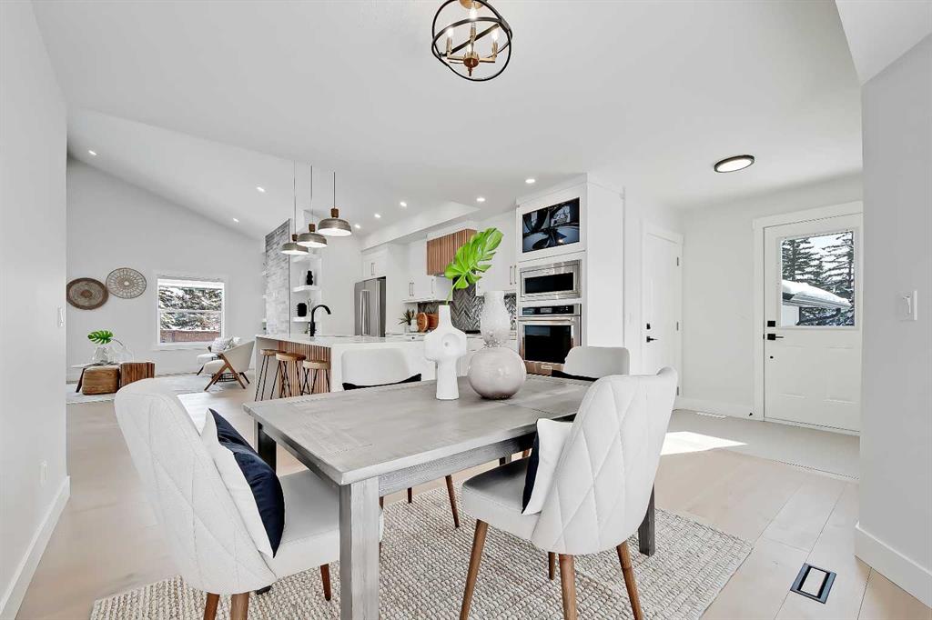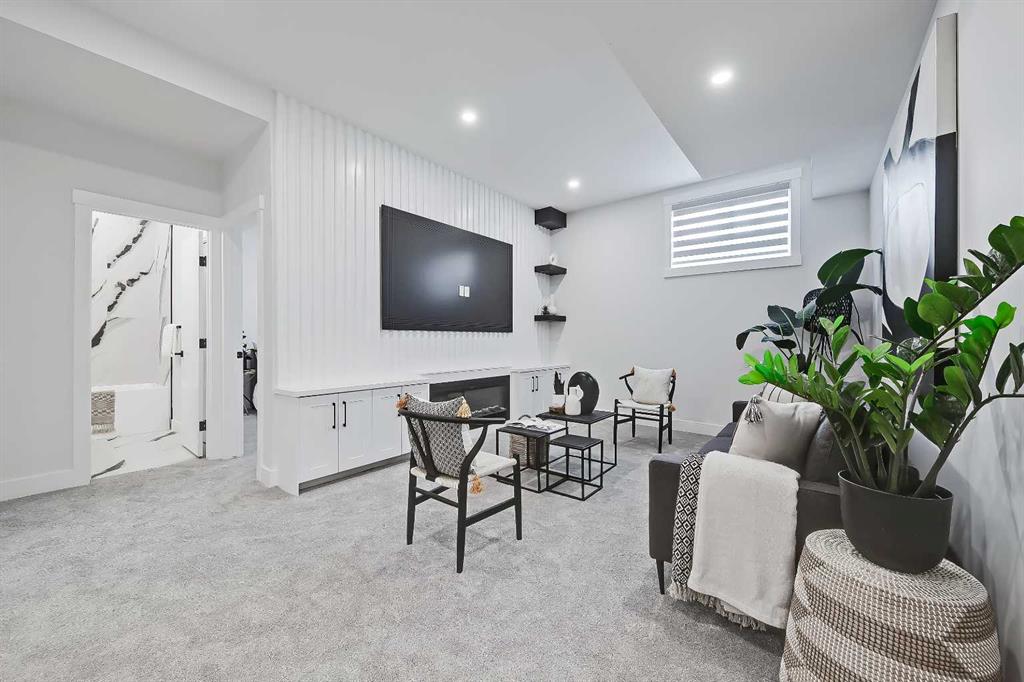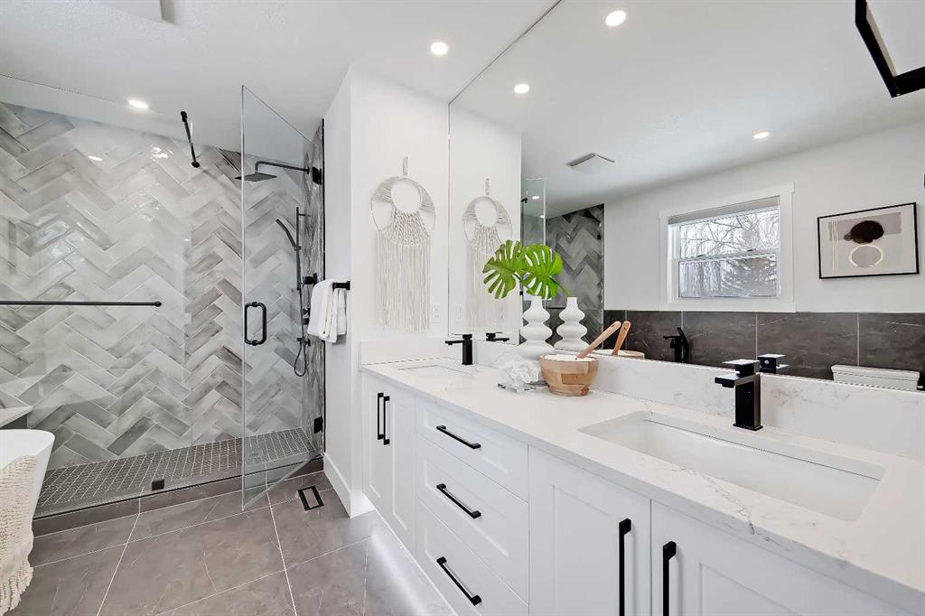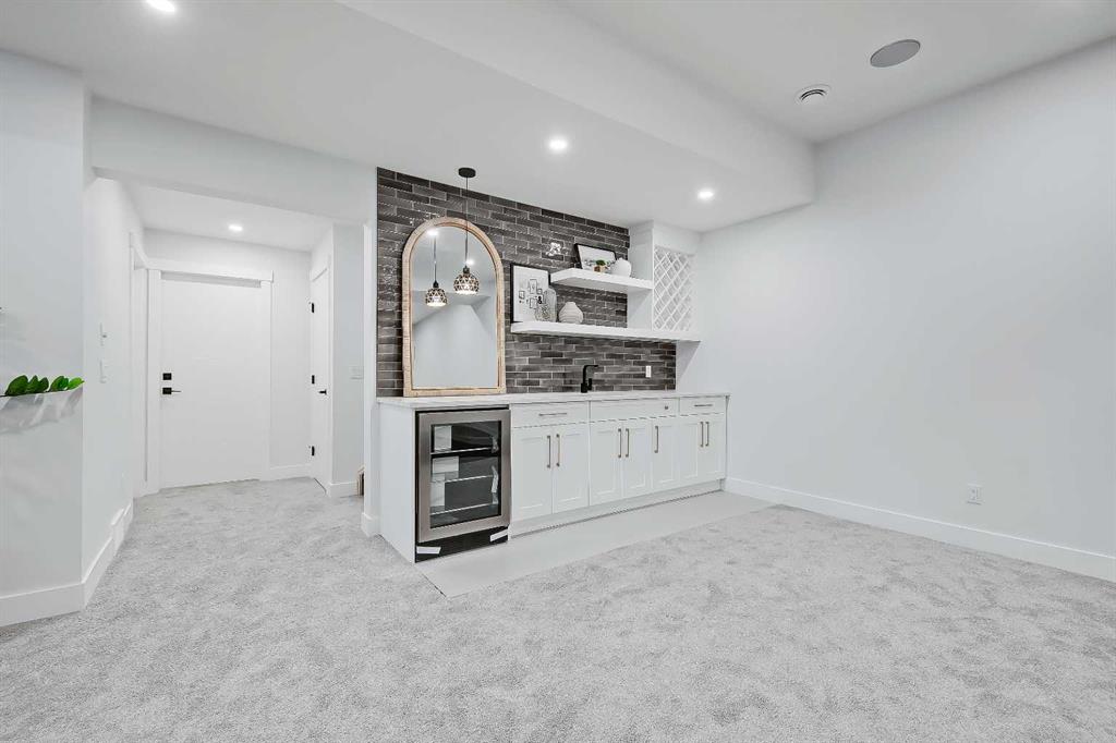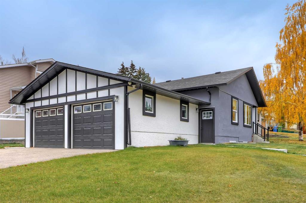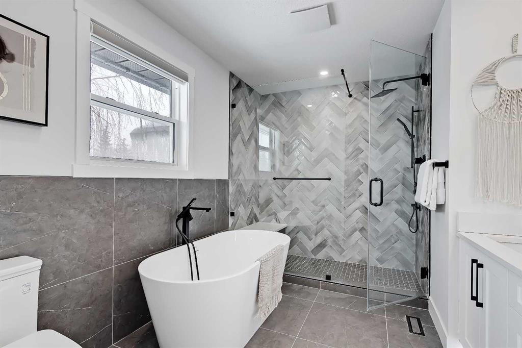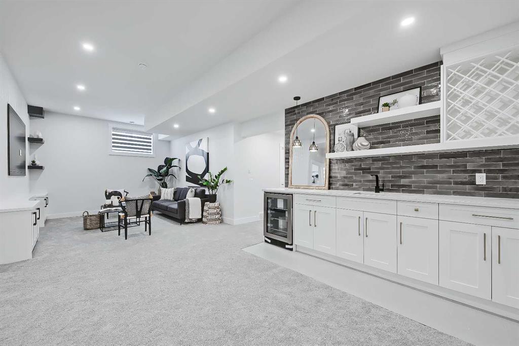 LEGAL SUITE W/ SEPARATE ENTRANCE | VAULTED CEILING | 6 BEDS | HOME OFFICE | HOME GYM | 24X24 OVERSIZED ATTACHED FRONT GARAGE | CONCRETE DECK | FULLY RENOVATED BUNGALOW in one of Northwest Calgary’s best communities! This bright, contemporary home sits on an oversized 9,558 sq ft lot in picturesque EDGEMONT – moments from Nose Hill Park, Edgemont Off Leash Park, community tennis courts, multiple schools & playgrounds, & endless shopping & amenities in Crowfoot Crossing, Northhill Shopping Centre, & more in this amazingly liveable location! The extensive upgrades begin outside w/ the maintenance-free exterior finished w/ BRAND NEW STUCCO & SMARTBOARD & Gemstone LED lighting – no more stringing Christmas Lights! Inside, the entire layout has been redesigned w/ ALL NEW DUCT WORK, 2X NEW FURNACES, A NEW TANKLESS HWT, BRAND NEW PLUMBING, ALL NEW ELECTRICAL WIRING, NEW BEAMS, NEW SUBFLOORS, ALL NEW FRAMING, DRYWALL, & INSULATION! The open-concept main floor welcomes you w/ sweeping views across the VAULTED LIVING ROOM w/ an inset electric fireplace w/ a full-height tile surround & built-in millwork. Brand new oak-engineered hardwood spans the living room & into the contemporary kitchen, where you’ll find shaker-style cabinetry, a classic herringbone tile backsplash, cedar detailing, an oversized island w/ waterfall quartz countertops, & brand-new top-of-the-line KitchenAid stainless steel appliances (including French door fridge, wall oven & microwave, gas cooktop, & custom-built hood fan). A dedicated dining space can hold a six-person table & sits next to two large windows for natural light all day. Perfect for remote work, a dedicated MAIN FLOOR HOME OFFICE features French glass doors & a stunning feature wall. Two bedrooms on the main floor feature built-in closets, while the primary features a tasteful feature wall, a spacious walk-in closet, & a deluxe ensuite w/ barn door entrance, heated tile floors, a freestanding soaker tub, stand-up shower w/ full height tile & 5 shower heads, & dual vanity. A full laundry room w/ a tile backsplash, sink, & folding counter & a main 4-pc modern bath are also found on the main floor. Down the GLASS stairwell, a large rec room enjoys its own built-in media wall & a full wet bar complete w/ sink, tile backsplash, open display shelves, & wine rack. There is also a good-sized bedroom w/ easy access to the 4-pc bath & a dedicated HOME GYM w/ mirrored wall & sports flooring. But the living space doesn’t end there! An exceptional highlight of this bungalow is the RARE TWO-BED LEGAL SUITE w/ SEPARATE SIDE ENTRANCE – ideal for a mother-in-law suite or mortgage helper! The contemporary luxuries of the rest of the home flow into the suite, w/ engineered hardwood floors, a modern kitchen w/ white subway tile backsplash & quartz counters, a spacious living room, a 4-pc bath w/ tub/shower combo w/ full-height tile surround, OFFICE & private laundry. This extraordinary, fully renovated bungalow is the ideal place for your family to call home!