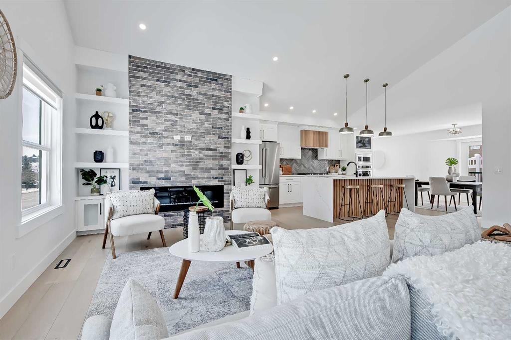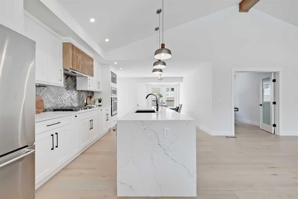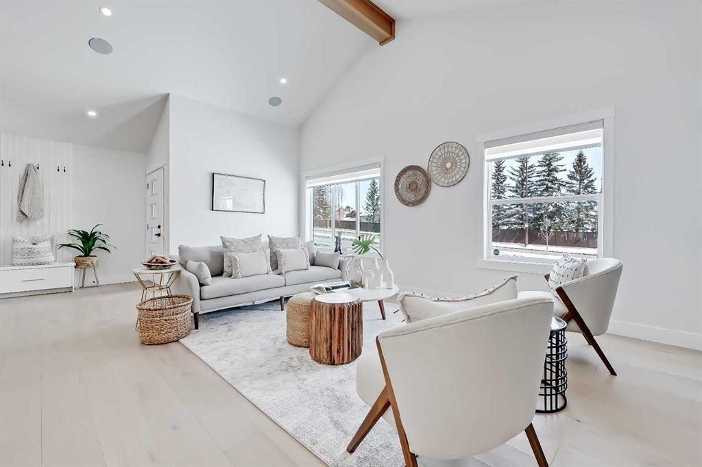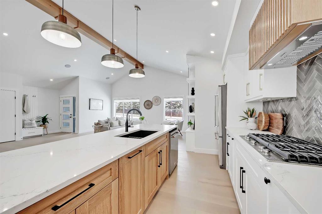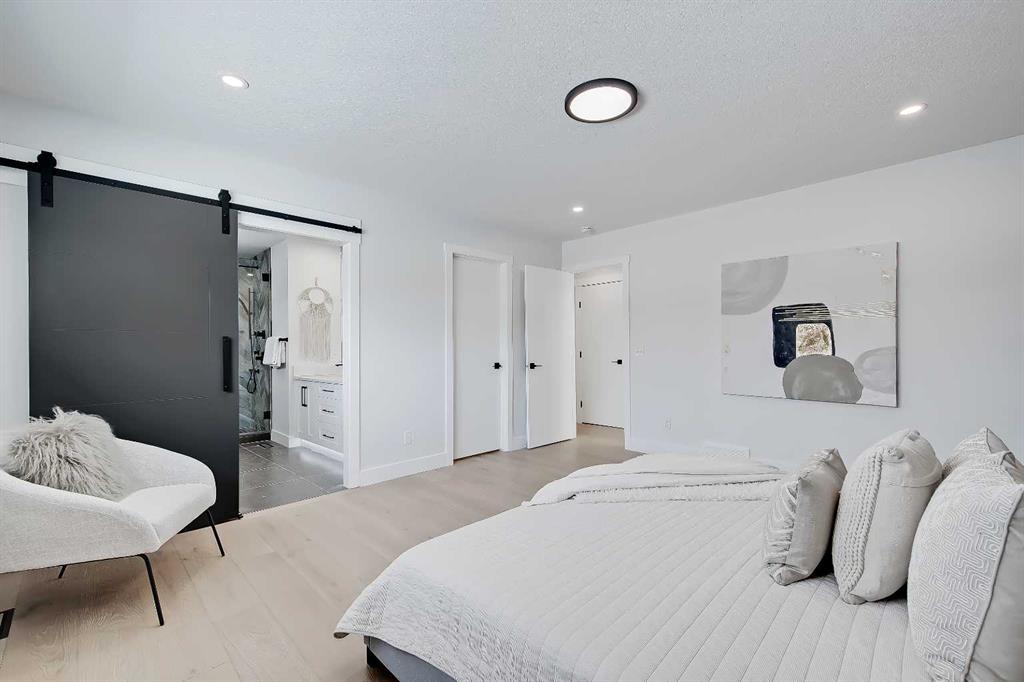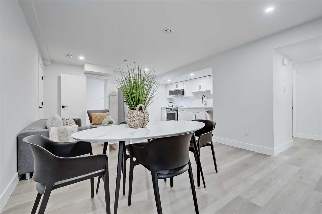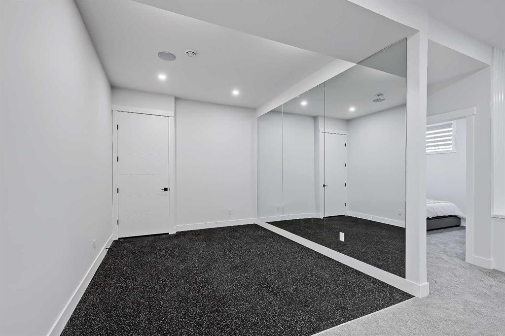 LEGAL SUITE W/ SEPARATE ENTRANCE | VAULTED CEILING | 6 BEDS | HOME OFFICE | HOME GYM | 24X24 OVERSIZED ATTACHED FRONT GARAGE | CONCRETE DECK | FULLY RENOVATED BUNGALOW in one of Northwest Calgary’s best communities! This bright, contemporary home sits on an oversized 9,558 sq ft lot in picturesque EDGEMONT – moments from Nose Hill Park, Edgemont Off Leash Park, community tennis courts, multiple schools & playgrounds, & endless shopping & amenities in Crowfoot Crossing, Northhill Shopping Centre, & more in this amazingly liveable location! The extensive upgrades begin outside w/ the maintenance-free exterior finished w/ BRAND NEW STUCCO & SMARTBOARD & Gemstone LED lighting – no more stringing Christmas Lights! Inside, the entire layout has been redesigned w/ ALL NEW DUCT WORK, 2X NEW FURNACES, A NEW TANKLESS HWT, BRAND NEW PLUMBING, ALL NEW ELECTRICAL WIRING, NEW BEAMS, NEW SUBFLOORS, ALL NEW FRAMING, DRYWALL, & INSULATION! The open-concept main floor welcomes you w/ sweeping views across the VAULTED LIVING ROOM w/ an inset electric fireplace w/ a full-height tile surround & built-in millwork. Brand new oak-engineered hardwood spans the living room & into the contemporary kitchen, where you’ll find shaker-style cabinetry, a classic herringbone tile backsplash, cedar detailing, an oversized island w/ waterfall quartz countertops, & brand-new top-of-the-line KitchenAid stainless steel appliances (including French door fridge, wall oven & microwave, gas cooktop, & custom-built hood fan). A dedicated dining space can hold a six-person table & sits next to two large windows for natural light all day. Perfect for remote work, a dedicated MAIN FLOOR HOME OFFICE features French glass doors & a stunning feature wall. Two bedrooms on the main floor feature built-in closets, while the primary features a tasteful feature wall, a spacious walk-in closet, & a deluxe ensuite w/ barn door entrance, heated tile floors, a freestanding soaker tub, stand-up shower w/ full height tile & 5 shower heads, & dual vanity. A full laundry room w/ a tile backsplash, sink, & folding counter & a main 4-pc modern bath are also found on the main floor. Down the GLASS stairwell, a large rec room enjoys its own built-in media wall & a full wet bar complete w/ sink, tile backsplash, open display shelves, & wine rack. There is also a good-sized bedroom w/ easy access to the 4-pc bath & a dedicated HOME GYM w/ mirrored wall & sports flooring. But the living space doesn’t end there! An exceptional highlight of this bungalow is the RARE TWO-BED LEGAL SUITE w/ SEPARATE SIDE ENTRANCE – ideal for a mother-in-law suite or mortgage helper! The contemporary luxuries of the rest of the home flow into the suite, w/ engineered hardwood floors, a modern kitchen w/ white subway tile backsplash & quartz counters, a spacious living room, a 4-pc bath w/ tub/shower combo w/ full-height tile surround, OFFICE & private laundry. This extraordinary, fully renovated bungalow is the ideal place for your family to call home!