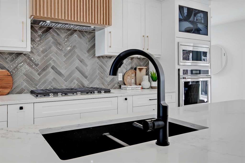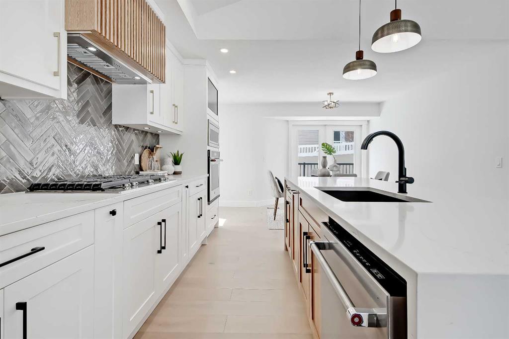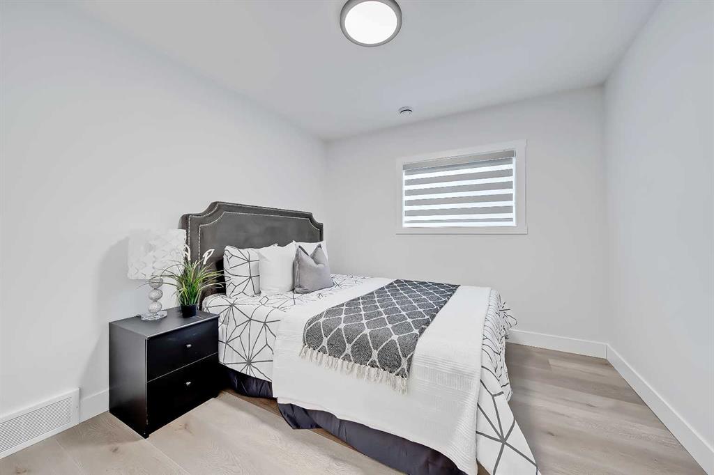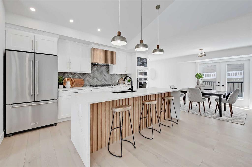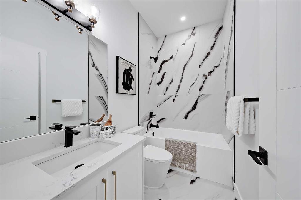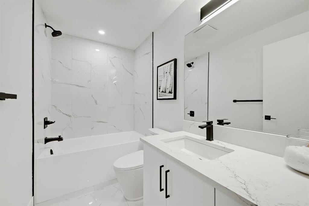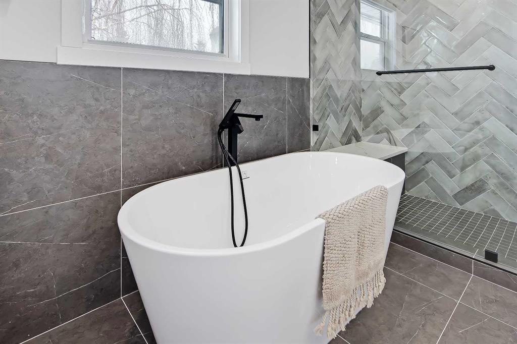 LEGAL SUITE W/ SEPARATE ENTRANCE | VAULTED CEILING | 6 BEDS | HOME OFFICE | HOME GYM | 24X24 OVERSIZED ATTACHED FRONT GARAGE | CONCRETE DECK | FULLY RENOVATED BUNGALOW in one of Northwest Calgary’s best communities! This bright, contemporary home sits on an oversized 9,558 sq ft lot in picturesque EDGEMONT – moments from Nose Hill Park, Edgemont Off Leash Park, community tennis courts, multiple schools & playgrounds, & endless shopping & amenities in Crowfoot Crossing, Northhill Shopping Centre, & more in this amazingly liveable location! The extensive upgrades begin outside w/ the maintenance-free exterior finished w/ BRAND NEW STUCCO & SMARTBOARD & Gemstone LED lighting – no more stringing Christmas Lights! Inside, the entire layout has been redesigned w/ ALL NEW DUCT WORK, 2X NEW FURNACES, A NEW TANKLESS HWT, BRAND NEW PLUMBING, ALL NEW ELECTRICAL WIRING, NEW BEAMS, NEW SUBFLOORS, ALL NEW FRAMING, DRYWALL, & INSULATION! The open-concept main floor welcomes you w/ sweeping views across the VAULTED LIVING ROOM w/ an inset electric fireplace w/ a full-height tile surround & built-in millwork. Brand new oak-engineered hardwood spans the living room & into the contemporary kitchen, where you’ll find shaker-style cabinetry, a classic herringbone tile backsplash, cedar detailing, an oversized island w/ waterfall quartz countertops, & brand-new top-of-the-line KitchenAid stainless steel appliances (including French door fridge, wall oven & microwave, gas cooktop, & custom-built hood fan). A dedicated dining space can hold a six-person table & sits next to two large windows for natural light all day. Perfect for remote work, a dedicated MAIN FLOOR HOME OFFICE features French glass doors & a stunning feature wall. Two bedrooms on the main floor feature built-in closets, while the primary features a tasteful feature wall, a spacious walk-in closet, & a deluxe ensuite w/ barn door entrance, heated tile floors, a freestanding soaker tub, stand-up shower w/ full height tile & 5 shower heads, & dual vanity. A full laundry room w/ a tile backsplash, sink, & folding counter & a main 4-pc modern bath are also found on the main floor. Down the GLASS stairwell, a large rec room enjoys its own built-in media wall & a full wet bar complete w/ sink, tile backsplash, open display shelves, & wine rack. There is also a good-sized bedroom w/ easy access to the 4-pc bath & a dedicated HOME GYM w/ mirrored wall & sports flooring. But the living space doesn’t end there! An exceptional highlight of this bungalow is the RARE TWO-BED LEGAL SUITE w/ SEPARATE SIDE ENTRANCE – ideal for a mother-in-law suite or mortgage helper! The contemporary luxuries of the rest of the home flow into the suite, w/ engineered hardwood floors, a modern kitchen w/ white subway tile backsplash & quartz counters, a spacious living room, a 4-pc bath w/ tub/shower combo w/ full-height tile surround, OFFICE & private laundry. This extraordinary, fully renovated bungalow is the ideal place for your family to call home!