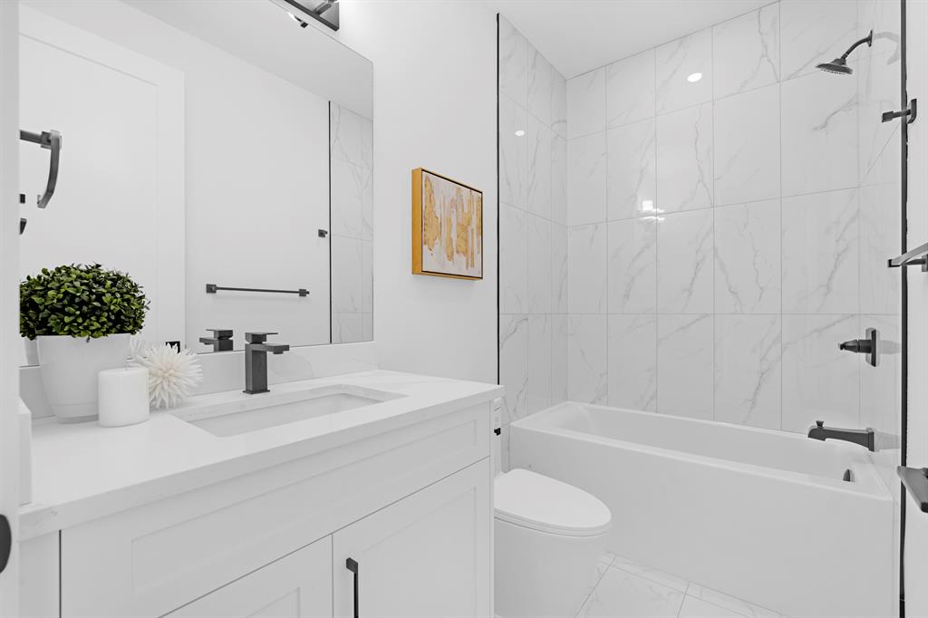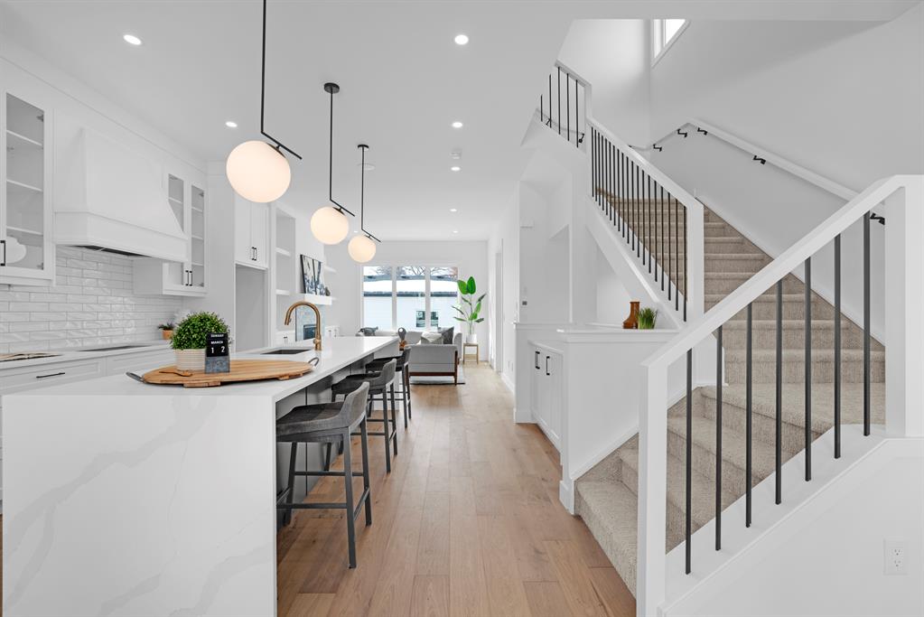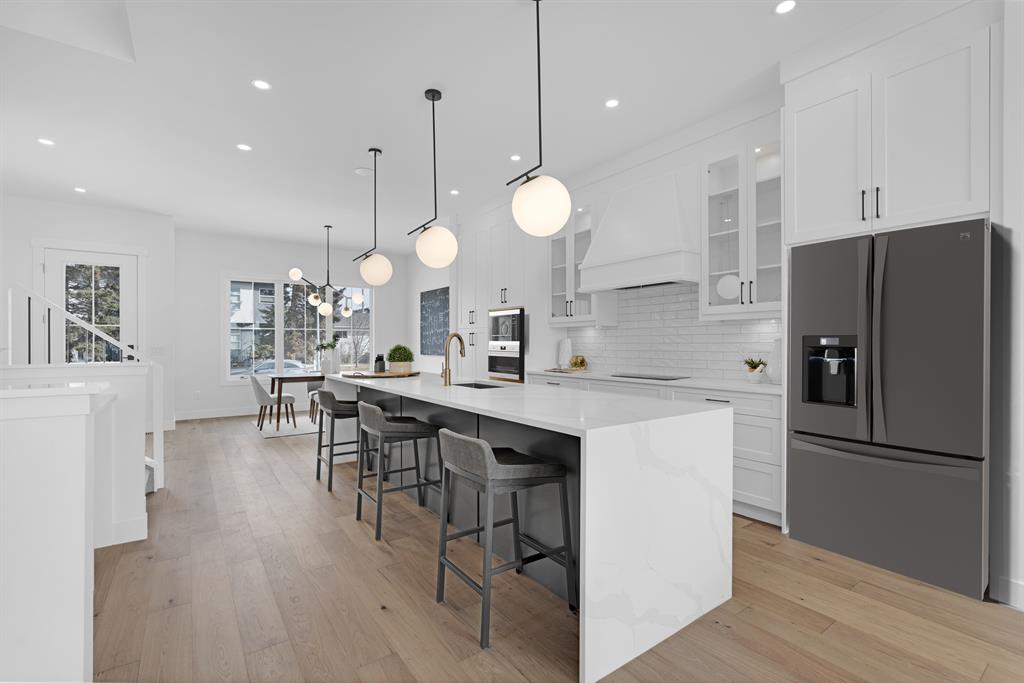 MOVE IN TODAY!! Fall in love with the home AND location in this brand new SEMI-DETACHED home in family-friendly RENFREW! This exquisite modern farmhouse offers high-quality upgraded finishes & over 2,500 sq ft of developed living space across 4 BEDROOMS, an UPPER BONUS ROOM, and a fully developed basement! Situated just moments from the Renfrew Aquatic & Rec Centre, the Renfrew Community Assoc., and the Renfrew Off-Leash Park, you’ll quickly appreciate the active lifestyle you can maintain in your new infill home! The main floor features a chef-inspired kitchen w/ ceiling-height custom cabinetry, a modern tile backsplash, designer pendant lights, an oversized island w/ ample bar seating, a large built-in pantry, & stainless-steel appliances, including a gas cooktop & French door fridge. The spacious living room centres on a stunning gas fireplace feature wall w/ a tile surround & full-length custom millwork on either side w/ direct access to the SOUTH-facing backyard through sliding glass doors. The large dining room offers oversized windows overlooking the front yard, while a hidden mudroom adds to the convenience & luxury of this well-built home. Both the front & back entrances enjoy built-in benches & full-sized closets to keep your family clean & organized, too! A spacious bonus room w/ a tray ceiling greets you at the top of the stairs, an excellent location for a kid’s playroom or an open home office space! The elegant master suite features a tray ceiling, oversized windows, & a spacious walk-in closet. The spa-inspired ensuite is elegantly finished w/ quartz countertops, dual under-mount sinks, a stand-alone soaker tub, & a stunning glass shower w/ a built-in bench. The upper laundry room is tastefully finished w/ matching quartz & a laundry sink, while two additional good-sized bedrooms share use of the modern 4-pc main bathroom. Downstairs, the fully developed basement adds 728 sq ft of additional living space, including an open rec room w/ a full wet bar w/ bar sink, upper & lower cabinetry, & quartz counter. There’s also a fourth bedroom w/ a massive walk-in closet & easy access to the main 4-pc bathroom w/ a quartz countertop & a tub/shower combo. Living in Renfrew is unlike any other, w/ easy access to Bridgeland & all its shops & amenities, Tom Campbell Hill Off-Leash, Telus Spark & the Calgary Zoo, the Renfrew Community Association & Skating Rink, plus all the restaurants & shops along Edmonton Trail! Deerfoot is just a stone’s throw away, too, giving you complete access to the entire city for easy commuting or for play. **photos from show suite which is also for sale**