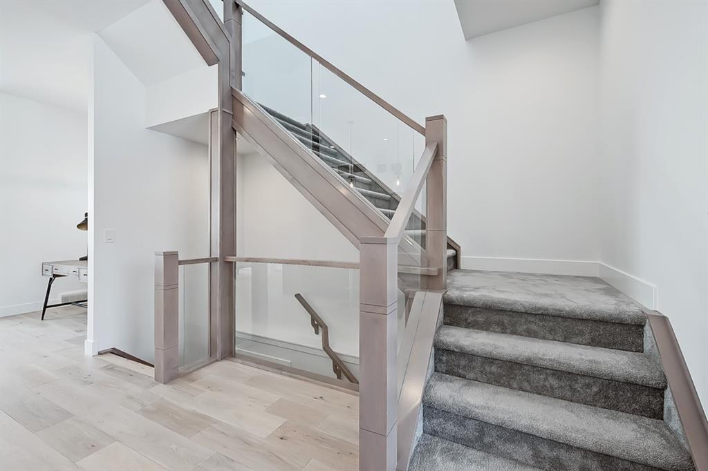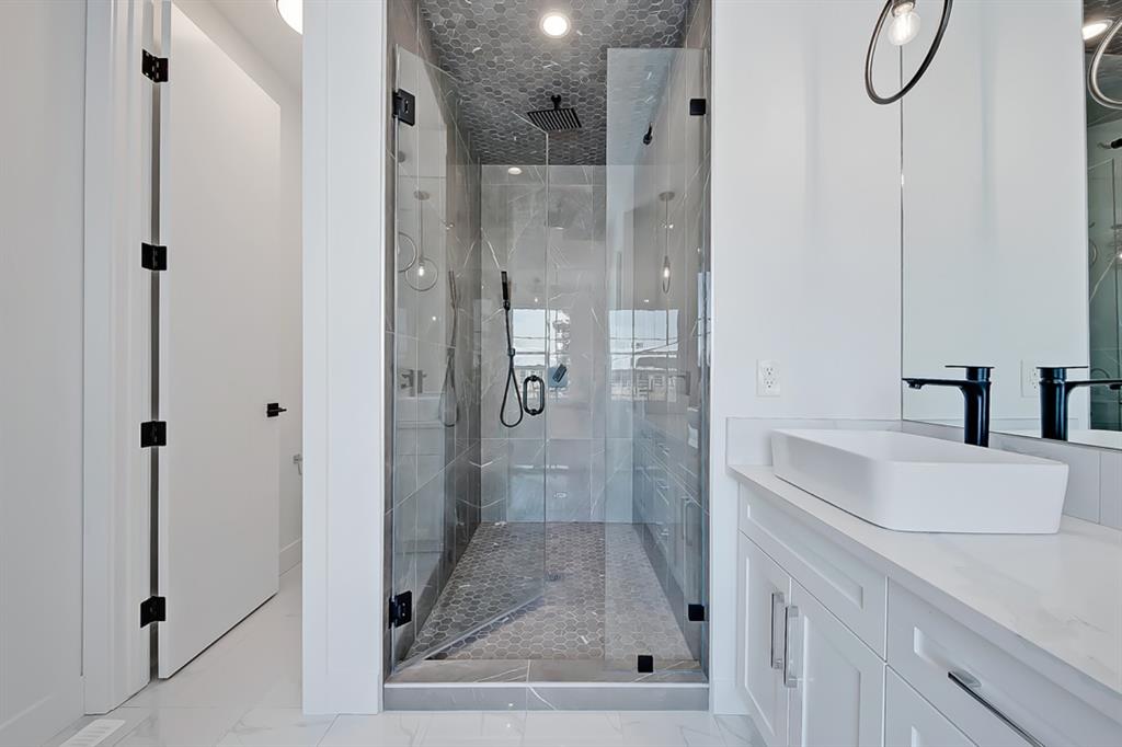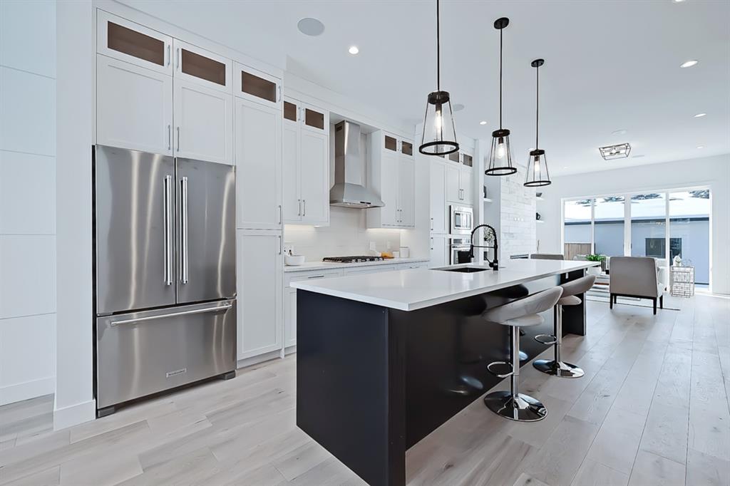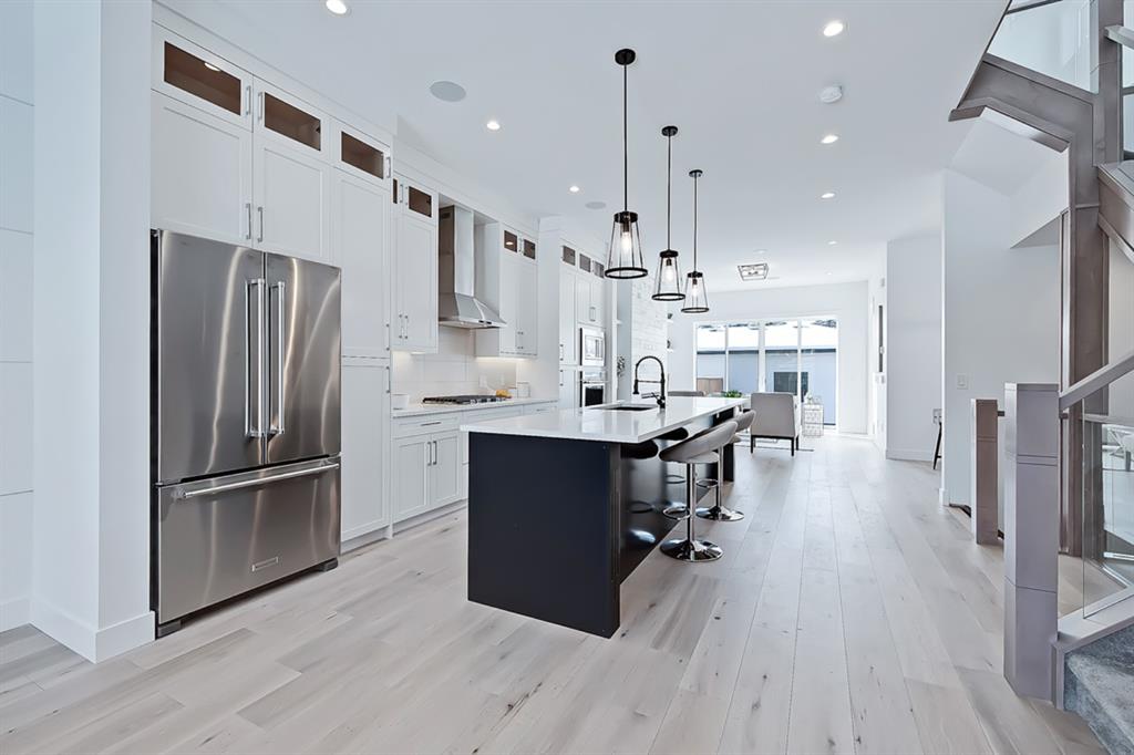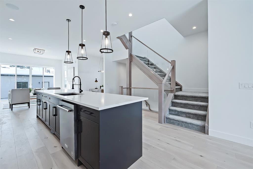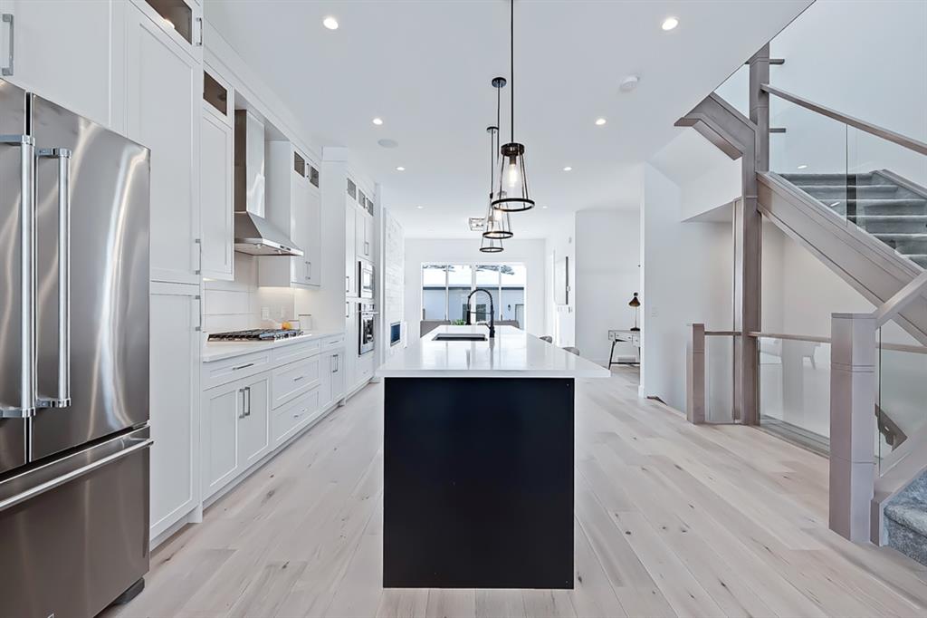 *VISIT MULTIMEDIA LINK FOR 360 VT & FLOORPLANS* Live in luxury steps from local amenities and minutes away from downtown! This stunning 2-storey infill is situated in a premier location, with over 1,907 sq ft of living space above grade, and 4 bedrooms, 3 full bathrooms, a bonus den and study area, already built into the home! The central custom-built kitchen features quartz countertops, ample cabinetry, a modern tile backsplash and a stainless-steel appliance package! The oversized center island is perfect for prepping ingredients and keeping on top of dishes with the grey Silgranit dual basin undermounted sink. Flanking the kitchen towards the front of the home, the bright formal dining area has enough room for a large table and showcases a decorative wall and oversized window that overlooks the quiet tree-lined street. Nestled along the side of the home is a personal study space, perfect for a desk and to be customized into an at-home workstation! Back towards the rear of the home, the living room centres on a modern gas fireplace, custom tile feature wall, custom cabinetry & shelving and full height sliding glass doors, that provide direct access to the back yard. Neatly tucked away is a tiled mudroom, with a built-in bench and hooks for jackets, as well as a private 2-piece powder room, nicely finishing off the main floor. Upstairs, the oversized master suite features a walk-in closet, large window, and a spa-like 5-piece ensuite boasting tile floors, a modern vanity with dual undermount sinks, a walk-in shower, a stand-alone drop-in soaker tub, and a private water closet. Two additional good-sized bedrooms include built-in closets and share use of the elegant main 4-piece bathroom which includes tile floors, a modern vanity and a fully tiled tub/shower combo. Nicely finishing off the upper floor is a spacious bonus room that is perfect for additional office space, workspace for kids or a flex room for family. Heading down the stairs, the bright recreational room features a fully loaded wet bar with quartz counters, a prep sink and rough-ins for a beverage fridge. An oversized additional fourth bedroom includes a spacious walk-in closet, perfect for hosting overnight guests or converting into a home gym, with close access to the 4-piece bath. Rosscarrock is an up-and-coming vibrant community, offering close proximity to LRT, Downtown, walkable amenities and all levels of schools, making this the perfect neighbourhood for professionals and families alike!