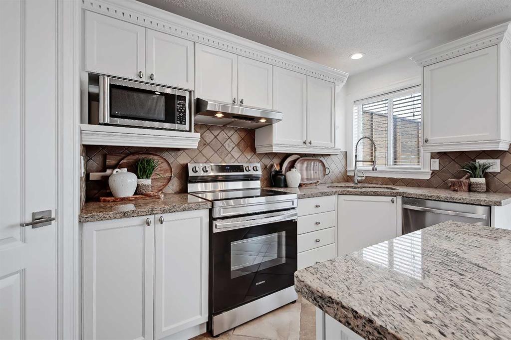 FRESHLY PAINTED | NEW CARPET ON UPPER FLOOR | NEW HARDWARE | NEW, UPDATED LIGHTING | Don’t miss your chance to live in this NEWLY UPDATED, 5-BED, 3.5-BATH home in charming STRATHCONA PARK! Just steps from picturesque Strathcona Ravines Park, w/ 23 hectares of green space and a creek perfect for summer bike rides and after-dinner strolls. Ideal for families of all sizes, there are plenty of schools and amenities close by, including Dr. Roberta Bondar School, Olympic Heights School, and Ambrose University, and Strathcona Square is moments away for shopping and amenities. The incredible home features a spacious main floor, ideal for a large and busy family, w/ a mix of tile and hardwood throughout. Views from the front foyer into the front sitting room and attached formal dining room w/ a stunning chandelier create an airy, inviting space w/ the grand vaulted ceiling above. A main floor home office is the ideal work-from-home space, w/ a full wall of built-ins, including lower cabinetry, upper open shelving w/ crown moulding, and desk space. The open-concept kitchen, den, and dining nook continue the home’s spacious atmosphere w/ a sizable kitchen that features ample cabinetry, a corner pantry, an oversized central island w/ open display shelving and closed storage w/ an unblemished GRANITE countertop for tons of workspace, and a full-height tile backsplash. The stainless steel appliances include a French door fridge/freezer, electric range, dishwasher, and microwave. The corner dual undermount stainless steel sink overlooks the backyard, perfect for keeping an eye on the kids while they play. The dining nook has a bay window w/ direct access to the rear deck and backyard, while the den features a stunning gas fireplace w/ a stone surround and wood mantle, elegant built-ins on either side, and vaulted ceiling. The main floor is finished w/ a 2-pc powder room and a laundry/mudroom off the ATTACHED DOUBLE GARAGE. The upper floor consists of a lovely primary suite complete w/ a 5-pc ensuite w/ dual vanity, walk-in closet, and jetted tub, plus two good-sized secondary bedrooms and a modern 4-pc main bathroom w/ tub/shower combo w/ full-height tile surround. Downstairs, the fully finished basement gives you two more bedrooms, another 4-pc modern bath, a large rec room w/ built-in media centre and full wet bar, plus a games area w/ built-in millwork! Strathcona Park is a quiet community offering many hiking and walking trails and off-leash areas, along w/ breathtaking views of the valley—it’s a true Calgary hidden gem! Surrounded by Stoney Trail, Sarcee Trail, and Bow Trail, it’s also in a convenient location for commuting and getting around the city. You’re a quick 4-min drive from the Aspen Landing Shopping Centre and 8-min from the Signal Hill Centre, where you’ll find everything your family needs like Superstore, Save On, Winners, Michaels, Cineplex, and more! Don’t hesitate; this is your chance to call this fabulous house your home today!