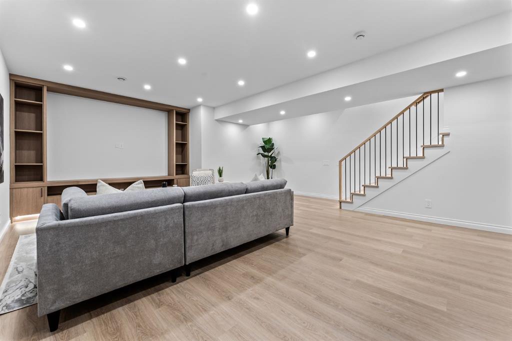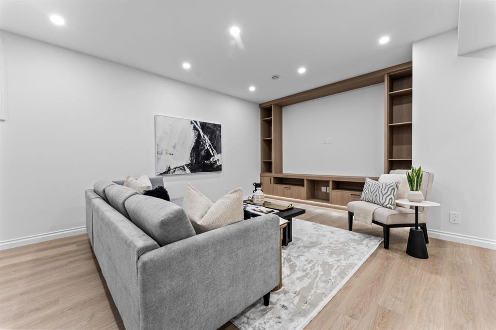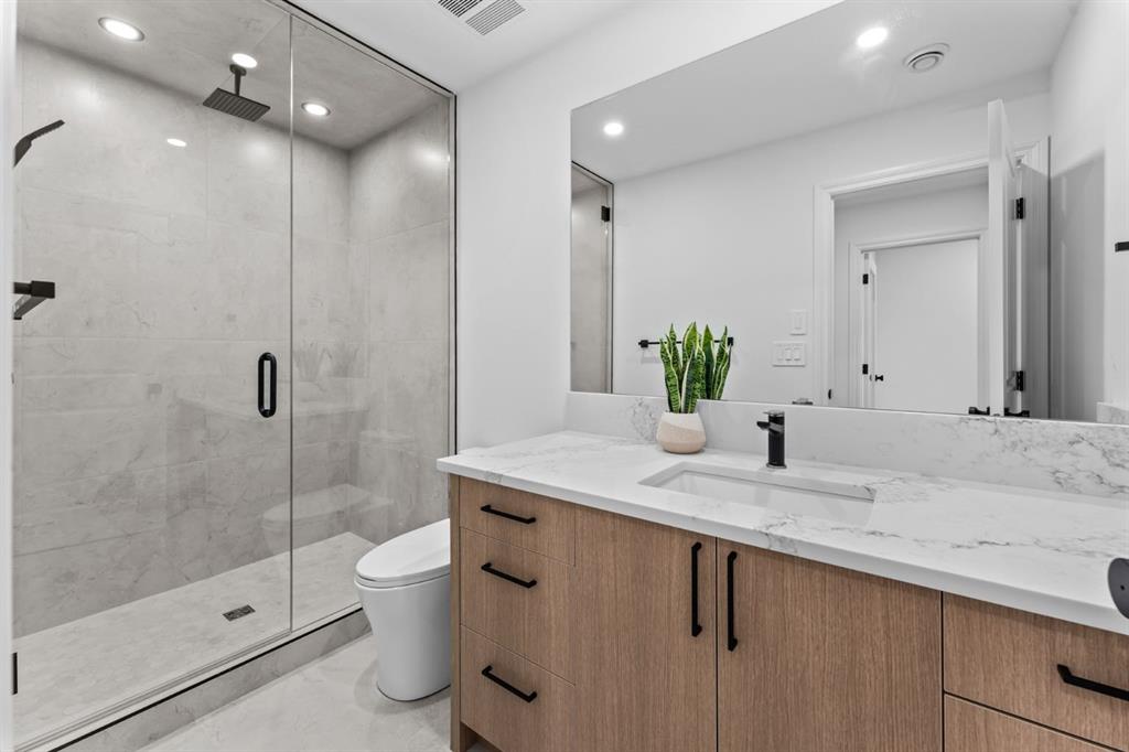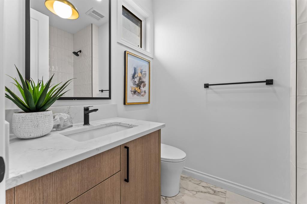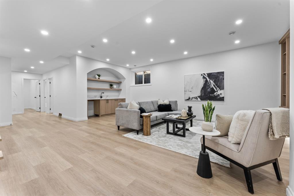 Move into your new ULTRA-LUXURY, DETACHED INFILL today! Expertly designed and crafted by AG Developments, this one-of-a-kind home is located on a quiet street in sought-after INGLEWOOD! Steps from the Inglewood Aquatic Centre, Good News Coffee, Mills Park Playground, the Bow River Pathway system, and just a block away from 9th Ave, you’re in a dream location that will perfectly match your family’s lifestyle! The highly desirable location is only improved upon by this home’s fantastic layout, with room for all the kids plus some. The curb appeal, highlighted by the welcoming and timeless RED BRICK exterior, welcomes you into an impressive foyer with a built-in bench and custom-built cabinetry and closets under a stylish panelled wall with direct access to the front dining room with designer light and more custom cabinetry and wall moulding. 10-ft ceilings and wide plank-engineered hardwood flooring span the entire level into the spacious shared kitchen and family room area, with a convenient walkthrough BUTLER’S PANTRY into the dining room. The luxury kitchen offers you tons of space for hosting holiday dinners and making memories, with an oversized central island with an endless quartz countertop, a dual basin undermount sink, full-height cabinetry, a full-height quartz backsplash, pot filler, tons of lower drawers, and that lovely walk-through pantry w/ prep sink, beverage fridge, display shelving, plus a WALK-IN PANTRY! The family room blends seamlessly with the open-concept kitchen with custom millwork, designer lighting, & a stunning inset gas fireplace with ceiling-height honed quartz surround. A rear mudroom with a built-in closet and bench takes you outside to the detached 28×22 GARAGE, while an elegant powder room finishes off the main floor. LED lit wood-wrapped stairs lead you upstairs and to the upscale primary suite featuring a high vaulted ceiling, a massive walk-in closet with B/I shelving & lighting , an incredible 5-pc ensuite w/ designer tile, an elegant soaker tub, a fully tiled STEAM SHOWER with a bench, dual vanity w/ quartz counter, lower drawers, LED backlighting, heated tile floors, and a private water closet. The two secondary bedrooms are both JR SUITES with recessed ceilings, walk-in closets, and modern 4-pc ENSUITES. Finishing off the upper floor is the good-sized laundry room w/ a sink, quartz counter, and tile floor. Downstairs, the living space seems endless with a dedicated and spacious home gym, a fourth bedroom, AND a private home office space! That’s alongside the massive rec area with a full wet bar, perfect for everyday use! Another 3-pc contemporary bathroom finishes off this level. Other highlights of this incredible home include rough-ins for A/C and in-floor heat in the basement. This home and location are ideal for any family looking to settle into the ultimate inner-city lifestyle! With designer finishes and upgrades like this, you don’t want to wait to talk with us about making this home your dream home!