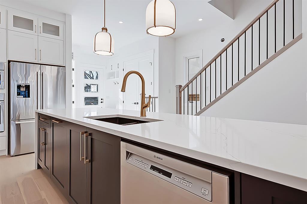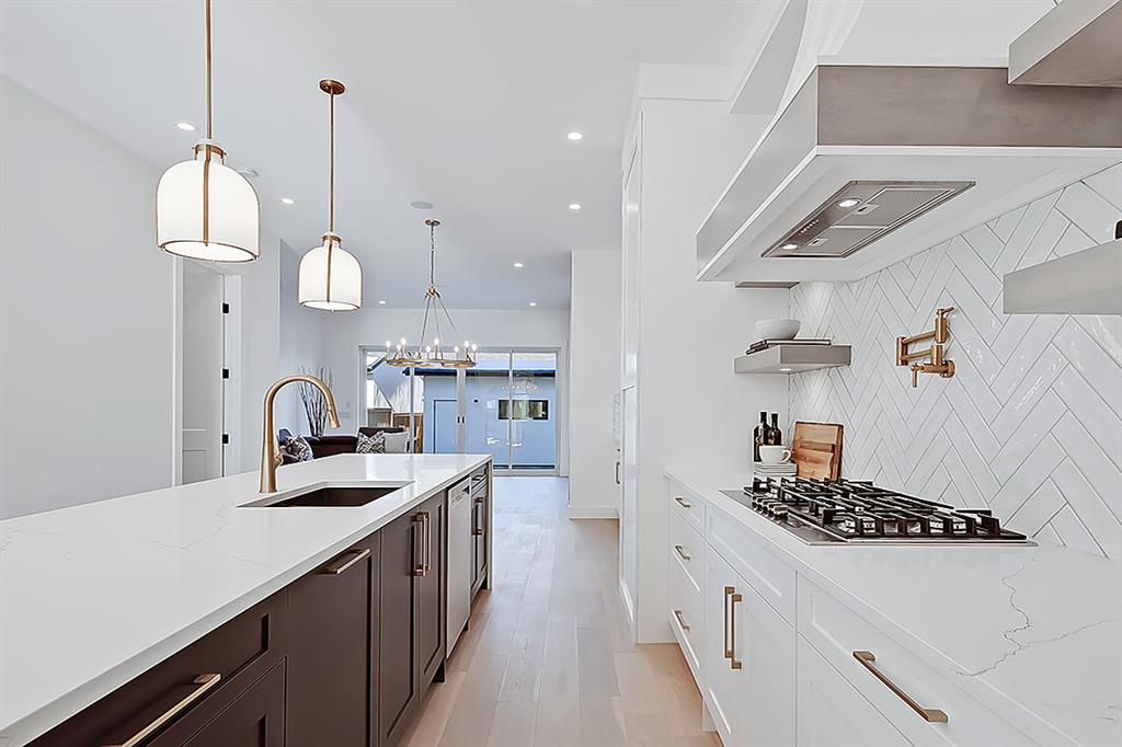 OPEN HOUSE SUN FEB 5th 2-4PM | MOVE IN TODAY! | BUILDER OFFERING $5000 IN UPGRADES FREE! |This 2-storey DETACHED infill in CAPITOL HILL Is move-in ready & is the one you’ve been waiting for. This stunning home provides over 2600 sq ft of total finished living space, 3 bedrooms above grade, a fully developed basement, luxury upgrades and finishes, and a rare PAVED BACK ALLEY. The open-concept main floor features 10-ft ceilings, large exterior windows, and wide-plank engineered hardwood flooring. The kitchen sits at the center of the bright main level, with quartz countertops, stunning custom cabinetry with soft-close hardware, and a full-height herringbone tile backsplash. The oversized central island gives you lots of extra space for day-to-day prep and features ample bar seating, a dual basin under-mounted sink, and a wine display. And to top it all off, this upscale kitchen comes with a premium BOSCH stainless steel appliance package & pot filler! The dedicated dining space next to the kitchen features an upscale built-in pantry with additional counter space and upper cabinetry. The living room continues the grand feeling of this spectacular home with an inset gas fireplace with tile surround, custom built-ins with accent lighting, and an incredible 12-ft x 8-ft 4-panel double sliding glass door bringing you onto the back patio! The living space continues with a side mudroom & SEPARATE SIDE ENTRANCE with a built-in closet, a large front foyer with a built-in bench and an additional closet, plus an elegant 2-pc powder room. But we’re not done there – ideal for those working from home, a private and quiet HOME OFFICE is just off the front foyer, with oversized windows overlooking the sunny South-facing front yard! Upstairs, you’ll find two good-sized bedrooms with custom closets, a full 4-pc bathroom, and a large laundry room with a window & laundry sink. The primary suite features soaring 13-ft vaulted ceilings, South-facing windows, and an expansive walk-in closet with custom millwork and window. The spa-inspired ensuite is elegantly finished with heated tile floors, dual vanity, a stand-alone soaker tub, a large roughed-in steam shower with a built-in bench, and a private water closet. Downstairs, the lower level is fully developed with a large rec room and full wet bar featuring a quartz counter, custom cabinetry, and a bar sink. The 4-pc bathroom has a quartz counter and a tub/shower combo easily accessible from the guest bedroom. Capitol Hill is a friendly neighbourhood ideal for families of all sizes! You’re blocks away from 16th Ave; North Hill Shopping Centre is a 10-min walk, and so is SAIT! Kensington/Sunnyside – including Riley Park, Safeway, Hayden Block, Made by Marcus, the Hillhurst-Sunnyside Community Assoc., and more – is a brisk 10-min bike ride away. You’ll quickly settle into inner-city living in this modern luxury home.