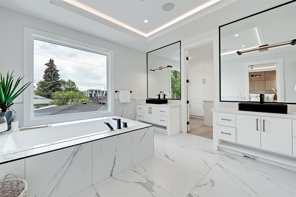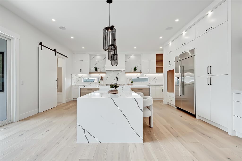 BRAND NEW, luxurious 6-BED, 7.5 BATH DETACHED home with over 6,083 sq ft of total living space in HOUNSFIELD HEIGHTS/BRIAR HILL! This stunning, modern home has endless, highly upgraded spaces & SMART HOME features for your family to enjoy. Stepping through the front door, you’re immediately greeted by a stunning open-to-above view w/ two-stories of windows & direct access to the front family room w/ a two-way gas fireplace. The chef-inspired kitchen features a custom, oversized island w/ attached lower seating & beautiful waterfall quartz countertops. The clean & modern ceiling-height cabinetry surrounds the kitchen offering ample storage space & includes a built-in pantry. A full-height quartz backsplash brings the space together w/ a contemporary look & is stunning next to the upgraded stainless steel appliance package. This home also enjoys BUILT IN SECURITY cameras w/ a built-in panel in the kitchen for ultimate safety & convenience. Every homeowner’s dream – the SECOND KITCHEN/BUTLER’S PANTRY is accessible off the kitchen or dining room, enjoy even more storage space w/ ceiling-height cabinetry, wrap-around quartz counters, dual undermount sink, dishwasher, a second gas range, plus another French door refrigerator! The dry bar includes a beverage fridge & open display shelves for the ultimate entertainment experience. Sharing an open floorplan, the kitchen opens into a bright dining nook off the rear patio w/sliding glass doors to the rear deck & EXPOSED AGGREGATE PATIO. The spacious family room w/an oversized window, inset gas fireplace with built-in millwork complements this space. At the front of the house the dining & living room share a two-way gas fireplace. The main floor is finished w/ a mudroom off the ATTACHED TRIPLE CAR GARAGE w/ a built-in bench & closed storage, an elegant 2-pc powder room, & a good-sized bedroom/office w/ a walk-in closet & private 3-pc ensuite. Up the stairs, you’re welcomed into a bright bonus room perfect for a cozy sitting area. The upper floor is home to 3 bedrooms (2 of which have their own walk-in closets & private ensuites & another w/ its own private balcony), a main 4-pc bath, a large laundry room, & the exquisite primary suite. The suite features a tray ceiling w/ LED mood lighting, a white oak feature wall, designer lighting, an ultra-luxurious 5-pc ensuite w/ soaker tub, walk-in shower, dual vanities, & walk-in closet w/ custom cabinetry & central counter/drawer space. The living space continues into the 1,916 sq ft developed basement, with an open family room, games room, second mudroom, extended wet bar w/ modern backsplash, quartz counters, beverage fridge, wine rack, & display shelves, plus a guest bedroom w/ walk-in closet & private ensuite & a full THEATRE ROOM w/ built-in media centre & rough-ins for a projector screen! We’d love to say more, but the features & specs in this home are endless! Book your showing today & see just how amazing this home is for yourself.