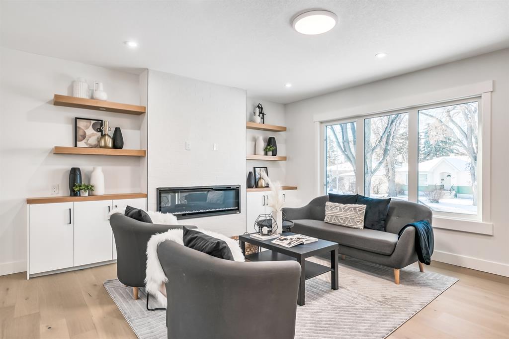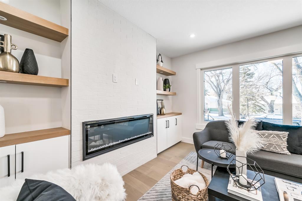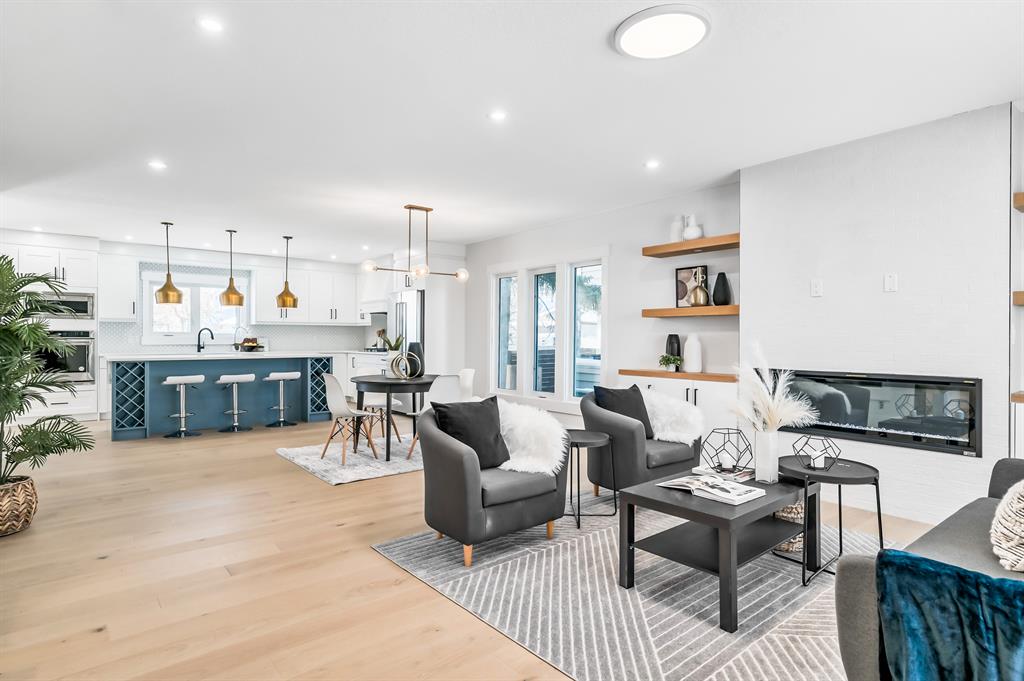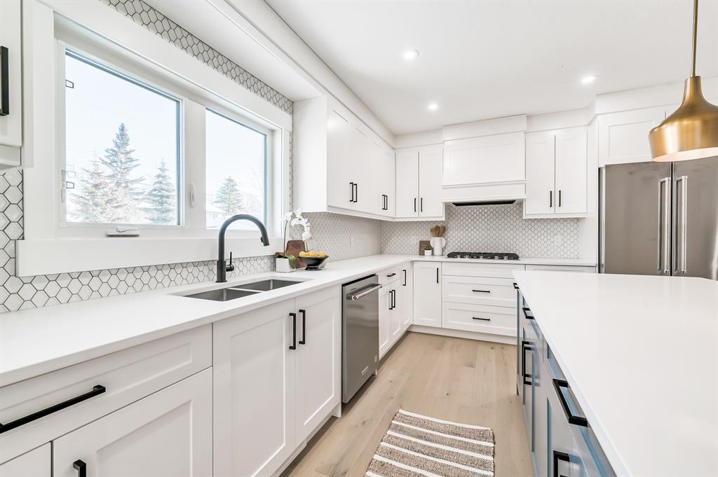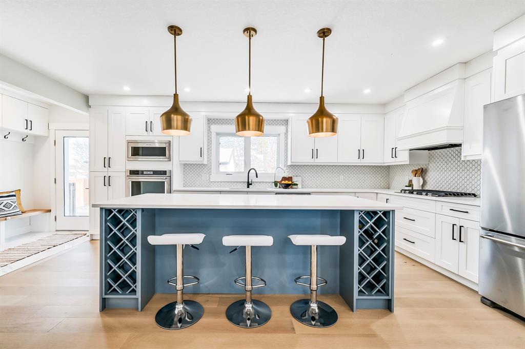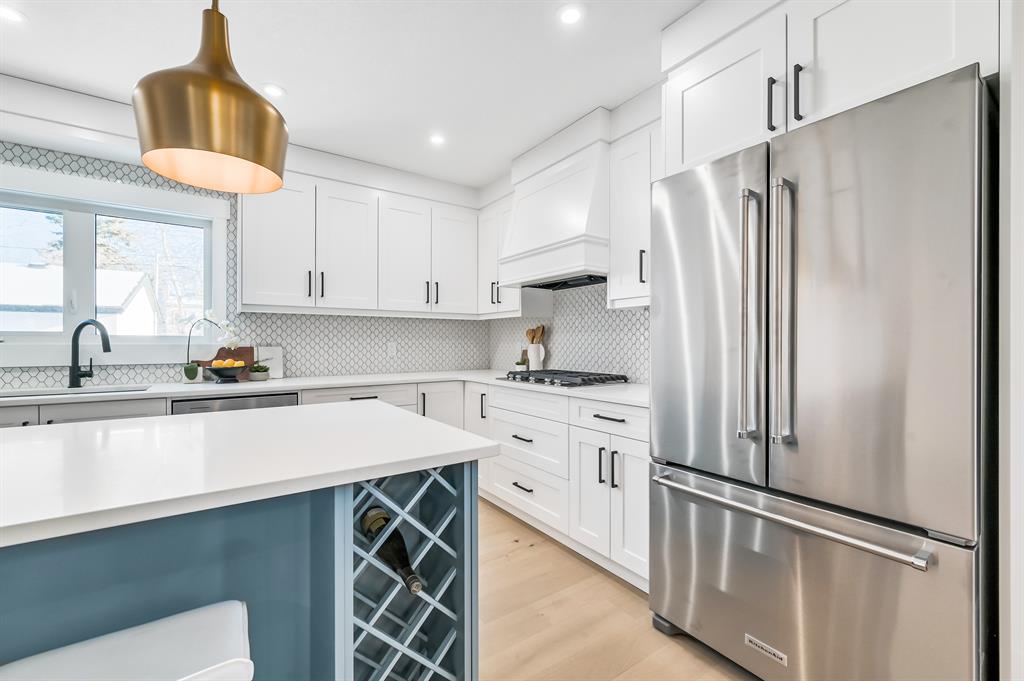 OPEN HOUSE SUN JAN 22 11:00 AM-1:00 PM | You absolutely need to see this EXTENSIVELY RENOVATED 3-BED, 4-BATH BUNGALOW in the established community of ROSEDALE! Taken to the studs, this home shows like new and offers TRIPLE PANE windows, new plumbing, electrical, furnace, insulation, drywall, lighting, appliances, updated wide planked engineered hardwood flooring, an electric fireplace & a 480sqft extension! The modern elegance begins as you step into the spacious & bright foyer w/ a built-in bench, hooks & storage cabinets. The open-concept design showcases a seamless transition from living room, to dining to kitchen with a naturally sunny & bright atmosphere. The contemporary living room features a stunning media centre with open display shelves with oak accents, & inset electric fireplace. Oversized triple pane windows follow you into the chef-inspired kitchen, where you’ll find shaker-style cabinetry, a classic white tile backsplash, lots of cabinetry, a walk in pantry, large island w/ quartz countertop, & brand-new KitchenAid stainless steel appliances (including French door fridge, wall oven & microwave, gas cooktop, & custom-built hood fan). Two bedrooms on the main floor include the primary suite w/ a deluxe ensuite w/ heated tile floors, a freestanding soaker tub, stand-up shower w/ full height tile, & dual vanity; plus a good sized secondary bedroom with custom closet and direct ensuite access to the 4-piece bathroom. A main floor office w/a built in desk with oak top and full glass walls leaves this space feeling open & airy and nicely finishes off this level. Downstairs, a large rec room enjoys its own built-in media centre & a full wet bar complete w/ a sink, tile backsplash, beverage fridge, open display shelves, and lower cabinetry. A good-sized bedroom with its own private ensuite & walk-in closet and a multi-purpose room perfect for a HOME GYM, additional office space, or overnight guests w/ easy access to the 4-pc bath w/ a large tub/shower combo w/ tile surround. The laundry is conveniently tucked away & nicely finishes off this space. Out back, not only will you enjoy the fully fenced & landscaped yard w/ a brand new concrete patio & walkways, but there’s also a TRIPLE detached garage w/ dual overhead doors. Rosedale offers a quiet, friendly neighbourhood to relax and unwind in, perfect for retirees or those raising a family. Mature trees and big lots line the streets, w/ many schools & parks making up the neighbourhood. You are also within walking distance to SAIT, public transportation, and the trendy Kensington shops are a short 10 min walk away! Commuting is a breeze as the community is surrounded by 16th Avenue and 10th Street giving you quick access to DT and major roadways to take you anywhere in the city you want to go! It’s truly a fantastic location in one of the most prestigious inner-city communities and a great place to call home. *VISIT MULTIMEDIA LINK FOR A VIDEO WALKTHROUGH!*