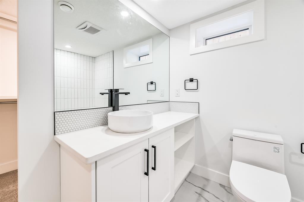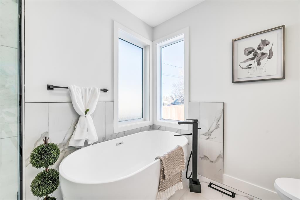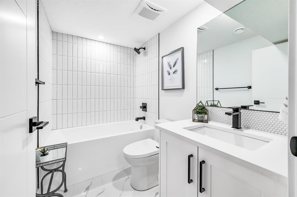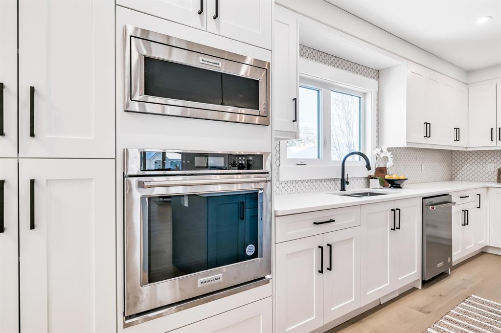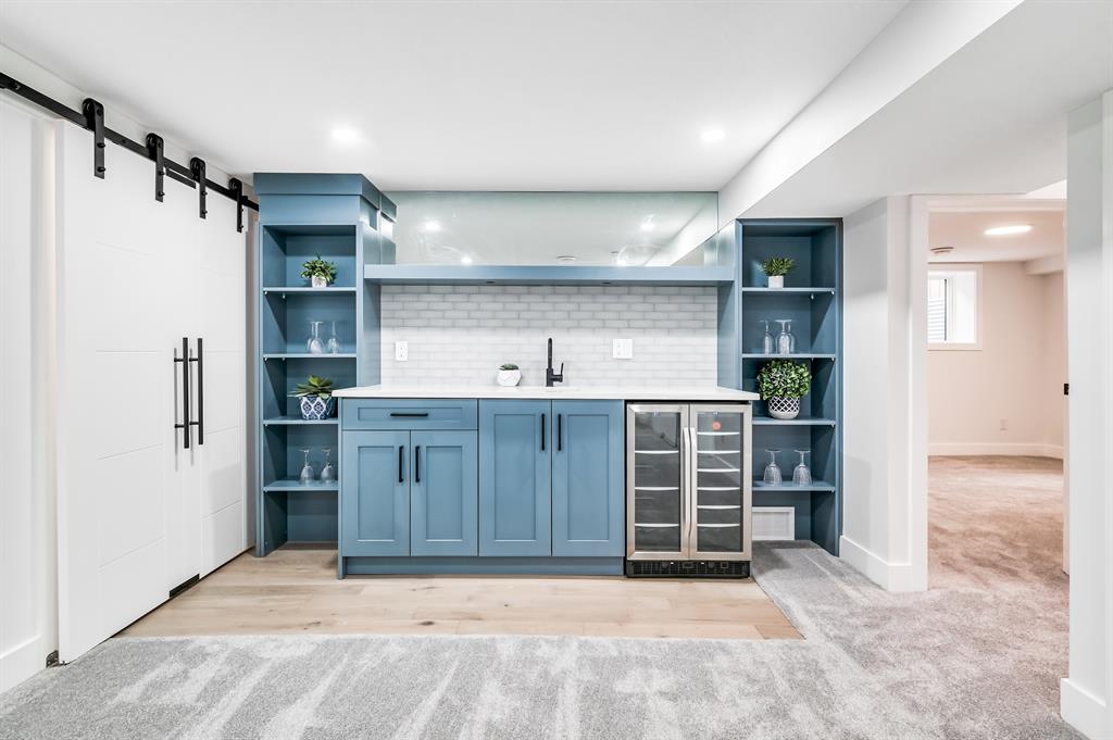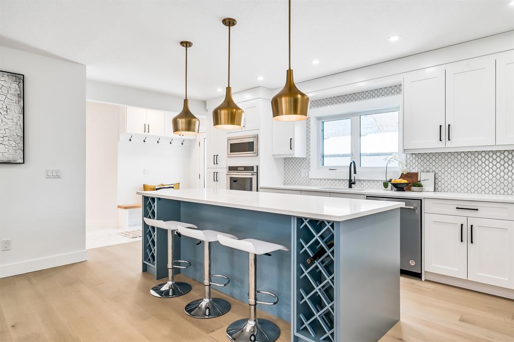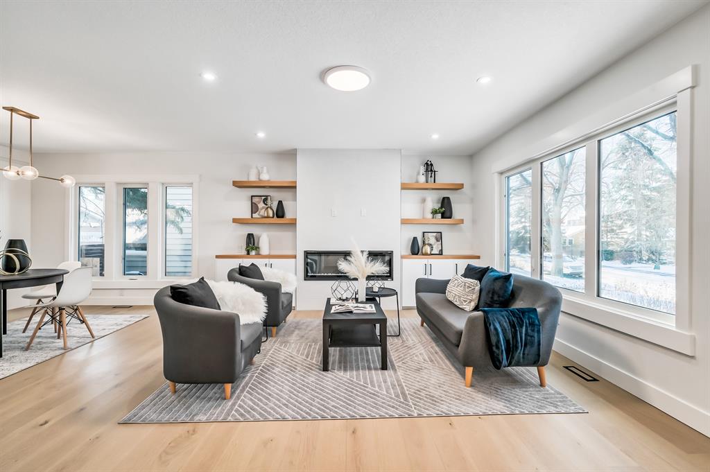 OPEN HOUSE SUN JAN 22 11:00 AM-1:00 PM | You absolutely need to see this EXTENSIVELY RENOVATED 3-BED, 4-BATH BUNGALOW in the established community of ROSEDALE! Taken to the studs, this home shows like new and offers TRIPLE PANE windows, new plumbing, electrical, furnace, insulation, drywall, lighting, appliances, updated wide planked engineered hardwood flooring, an electric fireplace & a 480sqft extension! The modern elegance begins as you step into the spacious & bright foyer w/ a built-in bench, hooks & storage cabinets. The open-concept design showcases a seamless transition from living room, to dining to kitchen with a naturally sunny & bright atmosphere. The contemporary living room features a stunning media centre with open display shelves with oak accents, & inset electric fireplace. Oversized triple pane windows follow you into the chef-inspired kitchen, where you’ll find shaker-style cabinetry, a classic white tile backsplash, lots of cabinetry, a walk in pantry, large island w/ quartz countertop, & brand-new KitchenAid stainless steel appliances (including French door fridge, wall oven & microwave, gas cooktop, & custom-built hood fan). Two bedrooms on the main floor include the primary suite w/ a deluxe ensuite w/ heated tile floors, a freestanding soaker tub, stand-up shower w/ full height tile, & dual vanity; plus a good sized secondary bedroom with custom closet and direct ensuite access to the 4-piece bathroom. A main floor office w/a built in desk with oak top and full glass walls leaves this space feeling open & airy and nicely finishes off this level. Downstairs, a large rec room enjoys its own built-in media centre & a full wet bar complete w/ a sink, tile backsplash, beverage fridge, open display shelves, and lower cabinetry. A good-sized bedroom with its own private ensuite & walk-in closet and a multi-purpose room perfect for a HOME GYM, additional office space, or overnight guests w/ easy access to the 4-pc bath w/ a large tub/shower combo w/ tile surround. The laundry is conveniently tucked away & nicely finishes off this space. Out back, not only will you enjoy the fully fenced & landscaped yard w/ a brand new concrete patio & walkways, but there’s also a TRIPLE detached garage w/ dual overhead doors. Rosedale offers a quiet, friendly neighbourhood to relax and unwind in, perfect for retirees or those raising a family. Mature trees and big lots line the streets, w/ many schools & parks making up the neighbourhood. You are also within walking distance to SAIT, public transportation, and the trendy Kensington shops are a short 10 min walk away! Commuting is a breeze as the community is surrounded by 16th Avenue and 10th Street giving you quick access to DT and major roadways to take you anywhere in the city you want to go! It’s truly a fantastic location in one of the most prestigious inner-city communities and a great place to call home. *VISIT MULTIMEDIA LINK FOR A VIDEO WALKTHROUGH!*