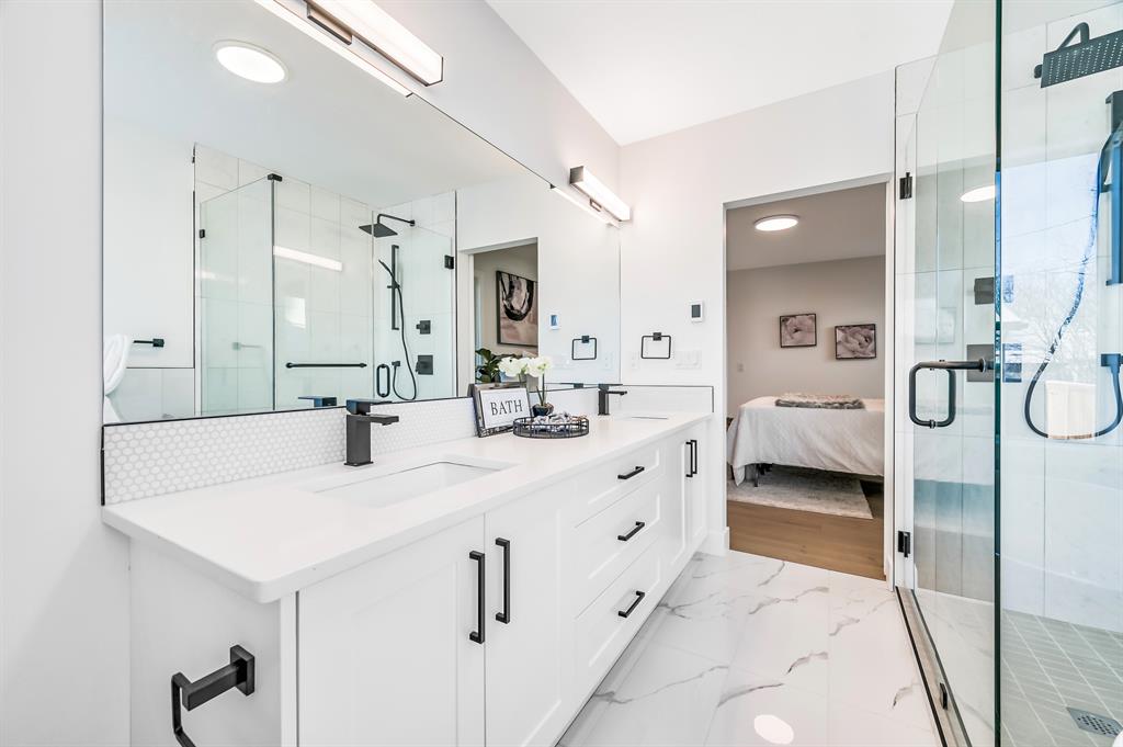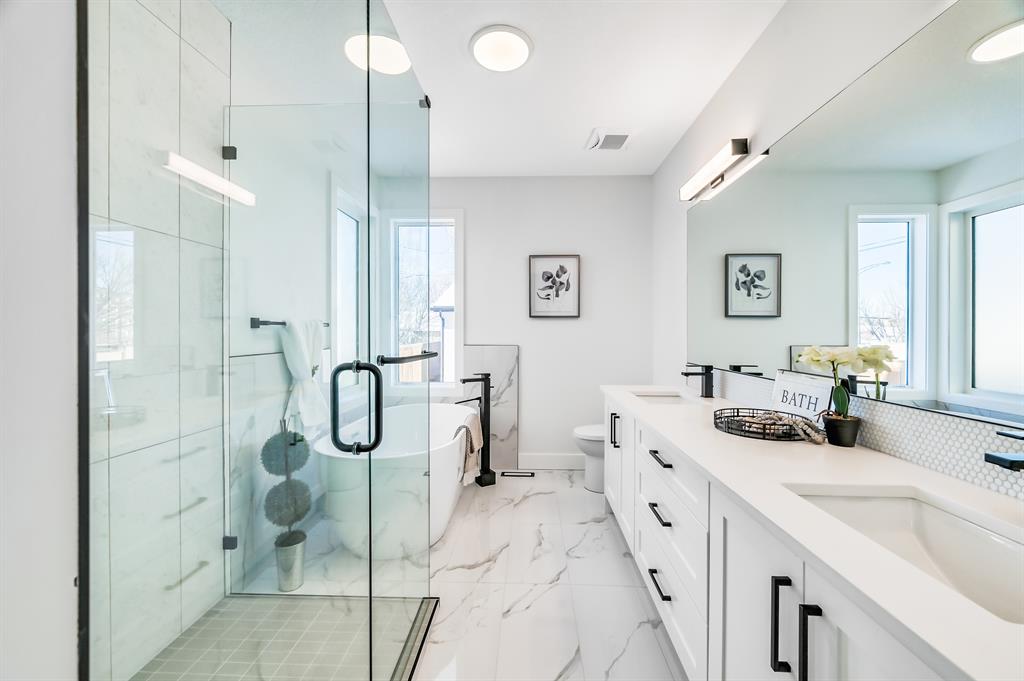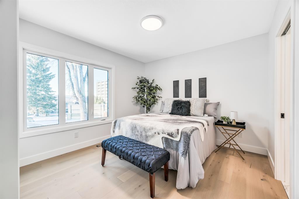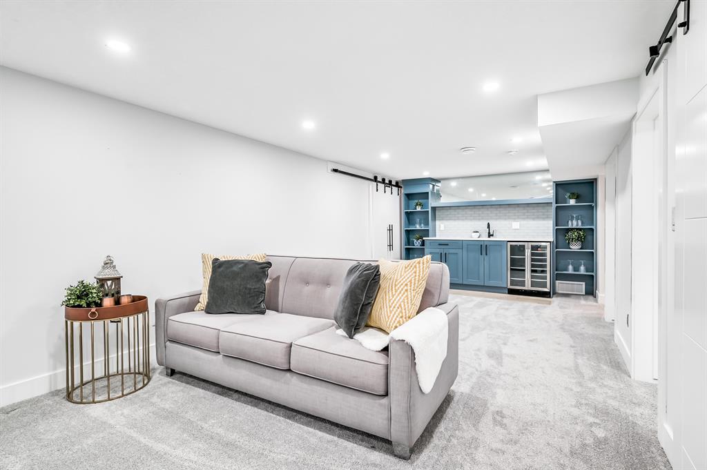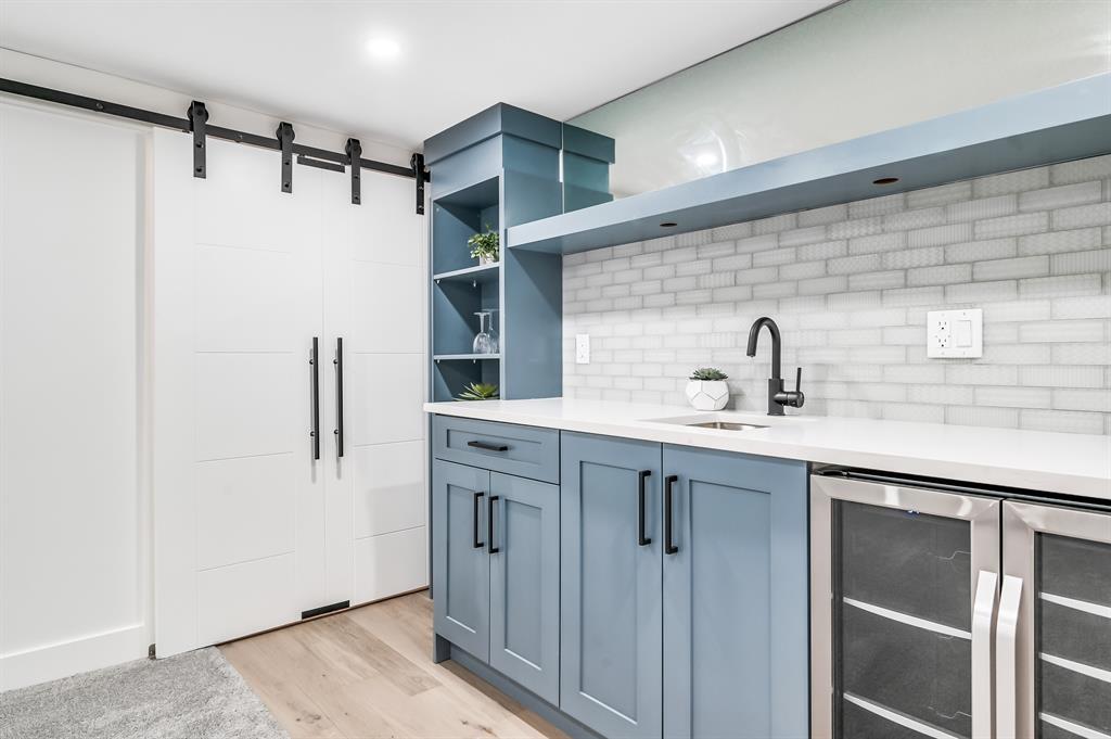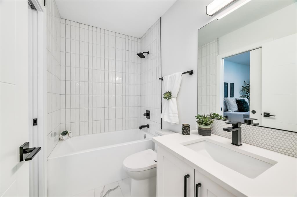 OPEN HOUSE SUN JAN 22 11:00 AM-1:00 PM | You absolutely need to see this EXTENSIVELY RENOVATED 3-BED, 4-BATH BUNGALOW in the established community of ROSEDALE! Taken to the studs, this home shows like new and offers TRIPLE PANE windows, new plumbing, electrical, furnace, insulation, drywall, lighting, appliances, updated wide planked engineered hardwood flooring, an electric fireplace & a 480sqft extension! The modern elegance begins as you step into the spacious & bright foyer w/ a built-in bench, hooks & storage cabinets. The open-concept design showcases a seamless transition from living room, to dining to kitchen with a naturally sunny & bright atmosphere. The contemporary living room features a stunning media centre with open display shelves with oak accents, & inset electric fireplace. Oversized triple pane windows follow you into the chef-inspired kitchen, where you’ll find shaker-style cabinetry, a classic white tile backsplash, lots of cabinetry, a walk in pantry, large island w/ quartz countertop, & brand-new KitchenAid stainless steel appliances (including French door fridge, wall oven & microwave, gas cooktop, & custom-built hood fan). Two bedrooms on the main floor include the primary suite w/ a deluxe ensuite w/ heated tile floors, a freestanding soaker tub, stand-up shower w/ full height tile, & dual vanity; plus a good sized secondary bedroom with custom closet and direct ensuite access to the 4-piece bathroom. A main floor office w/a built in desk with oak top and full glass walls leaves this space feeling open & airy and nicely finishes off this level. Downstairs, a large rec room enjoys its own built-in media centre & a full wet bar complete w/ a sink, tile backsplash, beverage fridge, open display shelves, and lower cabinetry. A good-sized bedroom with its own private ensuite & walk-in closet and a multi-purpose room perfect for a HOME GYM, additional office space, or overnight guests w/ easy access to the 4-pc bath w/ a large tub/shower combo w/ tile surround. The laundry is conveniently tucked away & nicely finishes off this space. Out back, not only will you enjoy the fully fenced & landscaped yard w/ a brand new concrete patio & walkways, but there’s also a TRIPLE detached garage w/ dual overhead doors. Rosedale offers a quiet, friendly neighbourhood to relax and unwind in, perfect for retirees or those raising a family. Mature trees and big lots line the streets, w/ many schools & parks making up the neighbourhood. You are also within walking distance to SAIT, public transportation, and the trendy Kensington shops are a short 10 min walk away! Commuting is a breeze as the community is surrounded by 16th Avenue and 10th Street giving you quick access to DT and major roadways to take you anywhere in the city you want to go! It’s truly a fantastic location in one of the most prestigious inner-city communities and a great place to call home. *VISIT MULTIMEDIA LINK FOR A VIDEO WALKTHROUGH!*