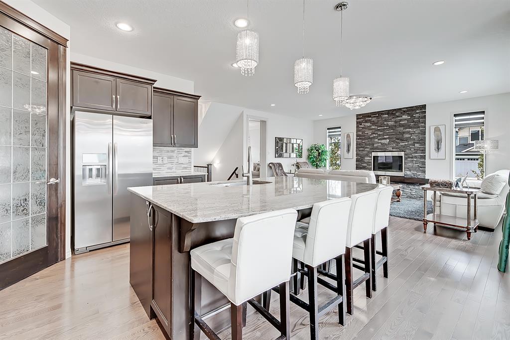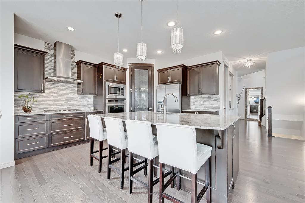 OPEN HOUSE SUN MAY 28 1-4PM | The ultimate family home on a CORNER LOT with an UPPER BONUS ROOM, SOUTH BACKYARD, DECK, and LOWER stamped concrete PATIO await in the picturesque community of ASPEN WOODS! Located on a quiet side street w/ an oversized yard only steps from the Bumblebee Park and a short bike ride to Dr. Roberta Bondar & Guardian Angel School, and moments from the shopping and amenities at Aspen Landing & West Springs Village. This incredible home has over $150,000 in upgrades & features a spacious 3,587 sq ft of developed living space, ideal for a large & busy family. Views across the spacious main floor from the bright open to above front foyer create an airy, inviting space as you step into the elegant front living room w/ large windows, designer light, and quick access to the MAIN FLOOR HOME OFFICE w/ an interior window making this space feel open & bright. The office has direct access to a 4 piece bathroom making it easy to use as a main floor bedroom! The open-concept kitchen, living room, and dining nook continue the home’s spacious atmosphere w/ a large, inviting kitchen that features ample cabinetry, a corner pantry, an oversized central island w/ designer pendant lights, and a gas cooktop set against an eye-catching full-height tile backsplash. The dining nook enjoys three walls of windows w/ direct access to the upper deck, and the living room has a stunning gas fireplace w/ ceiling-height stone surround and wood mantle. The upper floor consists of an oversized 20-ft x 14-ft bright bonus room – large enough for a full couch set and entertainment unit. A lovely primary suite complete w/ an elegant 5-pc ensuite, two good-sized secondary bedrooms, a modern 4-pc main bathroom, and fully equipped laundry room. Downstairs, an additional 1,069 sq ft of fully developed space add room for your family to spread out, with 9ft ceiling, an additional bedroom, 4-pc bath, massive rec area, plus a games space large enough for a pool table! Just in time for summer BBQs and family get-togethers, the outdoor space is just as incredible as the indoor in this family home! The 51-ft x 105-ft CORNER LOT gives your family not only a large backyard but lots of side yard space, too! The raised back deck is perfect for your BBQ & outdoor dining set, while the lower stamped concrete patio is big enough for a full lounge set. Aspen Woods is a quiet, idyllic community w/ beautiful views of rolling countryside & convenient access to major roads – 17 Ave, Stoney Trail, Old Banff Coach Rd, and Sarcee Trail – for easy commuting around the city. This family home is a quick 3-min drive from the Aspen Landing Shopping Centre and 9-min from the Signal Hill Centre, where you’ll find everything your family needs like Superstore, Winners, Cineplex, restaurants & more! You’re also only 10-min away from Griffith Woods Park for plenty of quality time spent outdoors! Surrounded by top private schools like Webber, Rundle, and Calgary Academy school options are not a problem here!