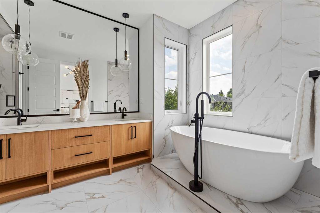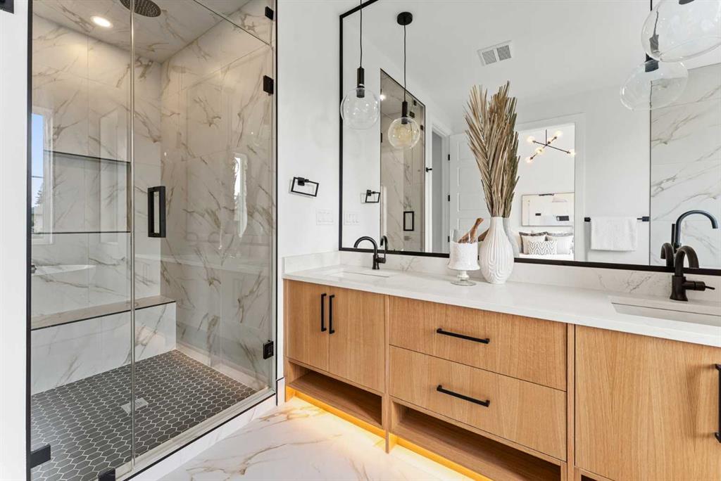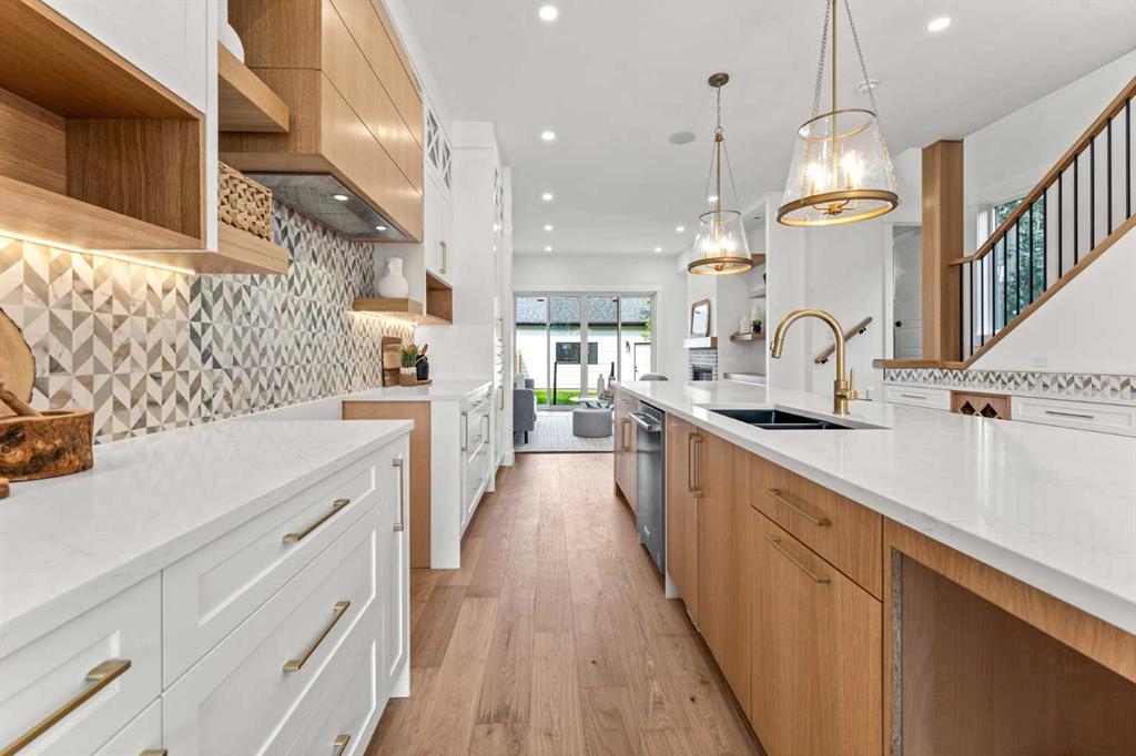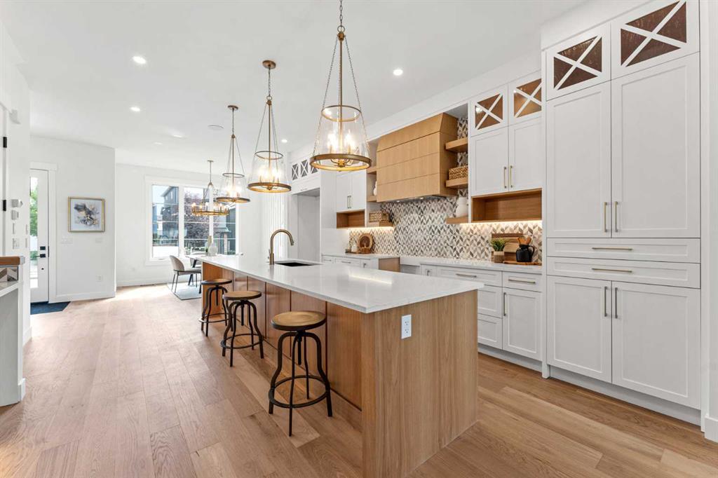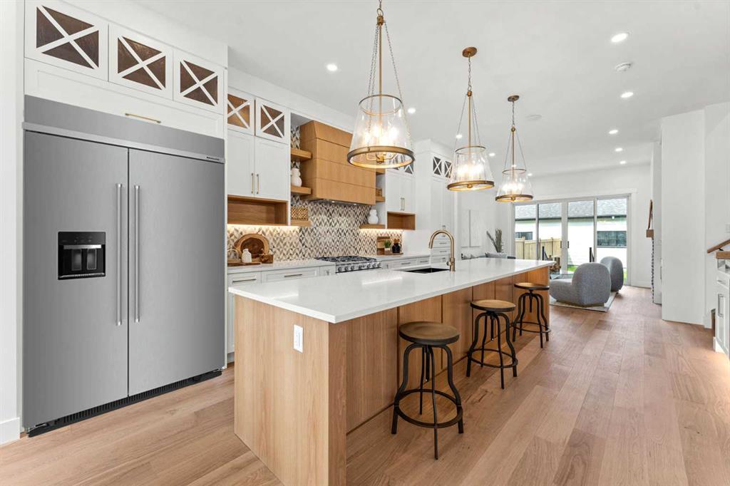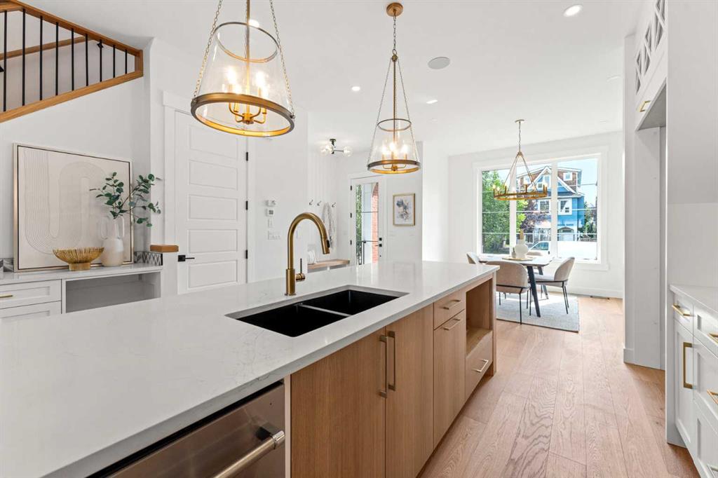 *1 SIDE AVAIABLE: 1826* You’ll absolutely love your new MOVE-IN READY DETACHED INFILL in a prime location in CAPITOL HILL! The highly desirable location is only improved upon by this home’s fantastic layout, upscale finishings, and the modern 2-BED LEGAL BASEMENT SUITE! Teachers & students have been calling Capitol Hill home for a long time, as SAIT is only a 15-min walk away, and the University of Calgary is a breezy 10-min commute. Professionals have also called the neighbourhood home with the 12-min commute to the Core! Sticking close to home for outdoor activities is also easy, with Confederation Park & Riley Park a short bike ride away. Enjoy Calgary favourites close by like Peter’s Drive-In, Boogies Burgers, Loco Lou’s, and Jimmy’s for the city’s best shawarma! And don’t worry about amenities and shopping – North Hill Centre & Kensington are down the road. Your home’s curb appeal, highlighted by the quaint and welcoming front porch, welcomes you into an open foyer with a built-in bench and closet, with direct access to the front dining room w/ an eye-catching feature wall and designer chandelier. 10-ft ceilings and wide plank-engineered hardwood flooring span the entire level into the spacious kitchen, featuring undercabinet LED lighting, designer pendant lights, ceiling-height custom cabinetry, a designer tile backsplash, an oversized central island with an endless quartz countertop, a dual basin undermount sink, tons of lower drawers, and lovely wood-accents throughout! An additional coffee bar or entertaining station sits across the kitchen with room for a wine fridge with more cabinetry and a quartz counter. The family room enjoys an inset gas fireplace with brick surround and an upper mantel with a wood slat wall, built-in millwork with open display shelving and cabinetry for storage, and direct access to the back deck through large sliding glass doors. A rear mudroom with a built-in closet and bench also takes you outside to the double detached garage, while an elegant powder room finishes off the main floor. Upstairs, you’ll find two secondary bedrooms, each with a walk-in closet, a main 4-pc bath with modern tiling, and a nice laundry room with upper cabinets, quartz counter, and laundry sink. The upscale primary suite features a vaulted ceiling with feature wall, a massive walk-in closet w/ built-in shelving, and an incredible 5-pc ensuite w/ a freestanding soaker tub, fully tiled stand-up shower with a bench, dual vanity w/ quartz counter and LED lighting, and heated tile floors. With a private entrance, separate laundry, built-in media centre in the living room, modern 4-pc bath, and two bedrooms, the legal basement suite only adds to this incredible home’s appeal! This space is also beautifully finished, w/ a modern kitchen that enjoys upper and lower cabinetry, a full-height tile backsplash, a quartz counter, and matte black finishings. This home and location are truly ideal for any family looking to settle into the ultimate inner-city lifestyle!