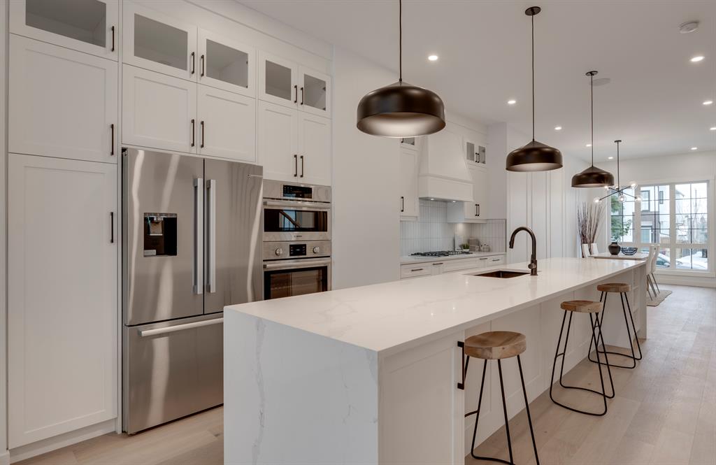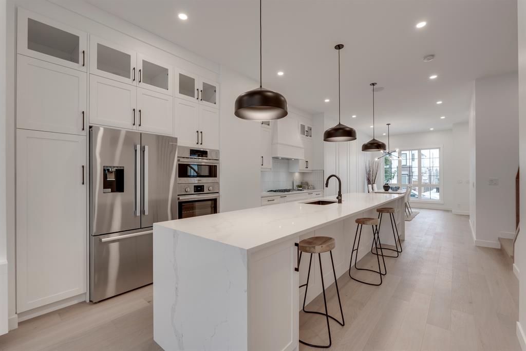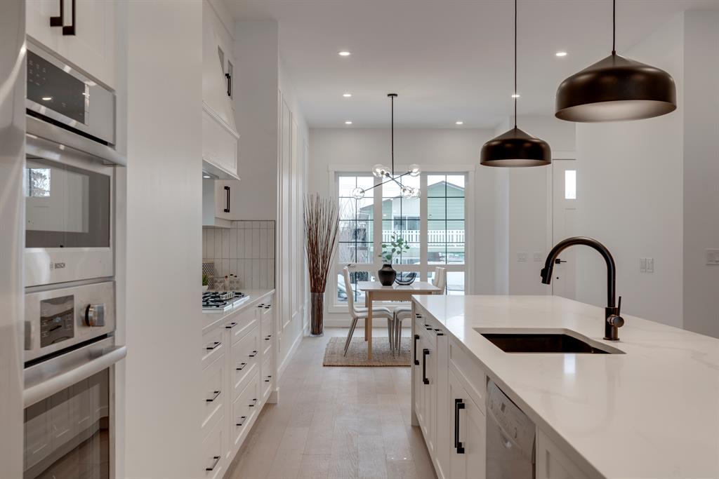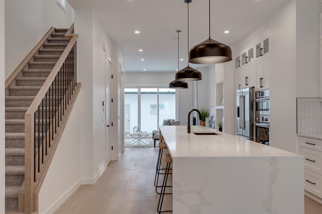OPEN HOUSE SUN JAN 15th 2:30-4:30 PM | MOVE IN TODAY! | BEST-PRICED DETACHED NEW BUILD IN CAPITOL HILL! | A true reflection of what a modern farmhouse should be! This MOVE-IN READY 2-storey DETACHED infill in CAPITOL HILL is awaiting your family to call it home today. This stunning home provides over 2,655 sq ft of total finished living space, 3 bedrooms above grade, a fully developed basement and features luxury upgrades and finishes throughout. The open-concept main floor features 10-ft ceilings, large exterior windows, and wide-plank engineered hardwood flooring. The kitchen sits at the center of the bright main level, drawing in the eye with quartz countertops, stunning custom cabinetry with soft-close hardware, and a full-height tile backsplash. The oversized central island gives you lots of extra space for day-to-day prep, ample bar seating, and a dual basin under-mounted sink. And to top it all off, this upscale kitchen comes with a premium stainless steel appliance package – a gas cooktop, built-in hood fan, refrigerator, built-in wall oven and microwave, and dishwasher. The living room creates a cozy yet spacious atmosphere and features a gas fireplace and a built-in TV counter. Easily step out to the rear deck and backyard through dual glass sliding doors, nicely combining your indoor/outdoor living spaces. Rounding off the main floor is a simple but elegant 2-piece powder room and side mudroom with a built-in bench and hooks as well as a SEPARATE SIDE ENTRANCE which gives separate access to the basement & is great for extended family or if you don’t need the space you can use it as an AIRBNB!! Upstairs, you’ll find 2 good-sized bedrooms with custom closets, a full bathroom, and a large laundry room with a laundry sink. The primary retreat features soaring vaulted ceilings, South-facing windows, and a walk-in closet with custom millwork. The spa-inspired ensuite is elegantly finished with heated tile floors, dual vanities, a stand-alone soaker tub, a large shower with a built-in bench, and rough-ins for steam. Downstairs, the lower level is fully developed with a large rec room and full wet bar featuring quartz counters, custom cabinetry, and a bar sink. The 4pc bathroom has quartz counters and a tub/shower combo easily accessible from the guest bedroom. This home also comes with additional rough-ins for a security system, air conditioning, and in-floor heat in the basement. Located in Capitol Hill, this friendly neighbourhood is a short distance away from 16 Avenue, SAIT, North Hill Centre, Kensington, Downtown, and more! You’re going to love it here! *VISIT MULTIMEDIA LINK FOR A VIDEO WALKTHROUGH!*
