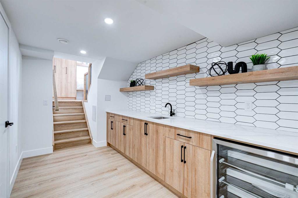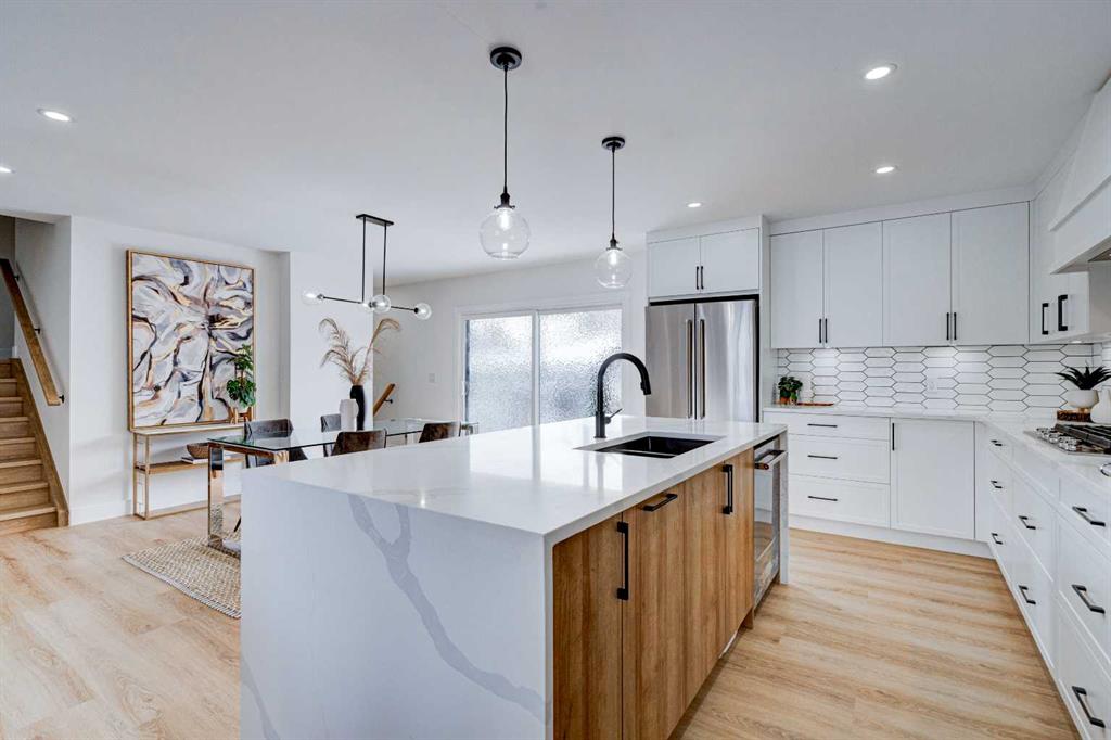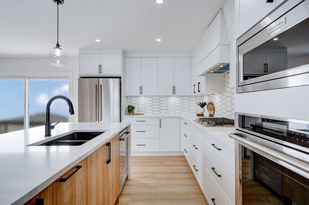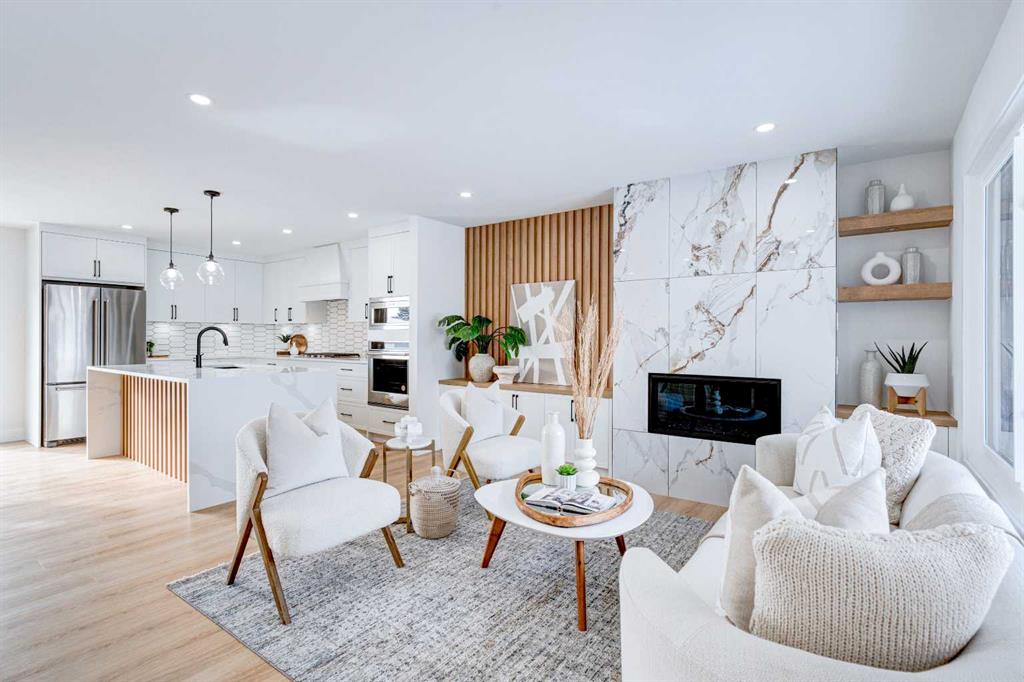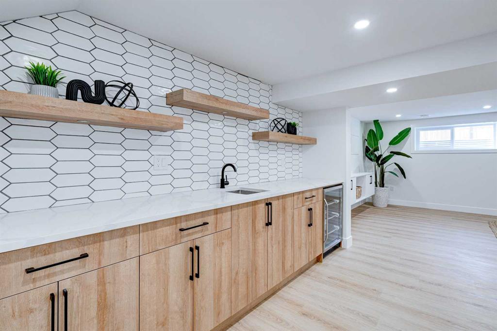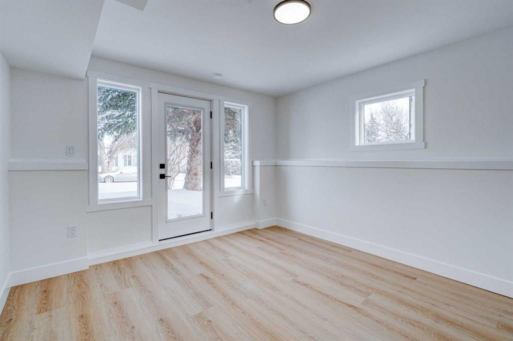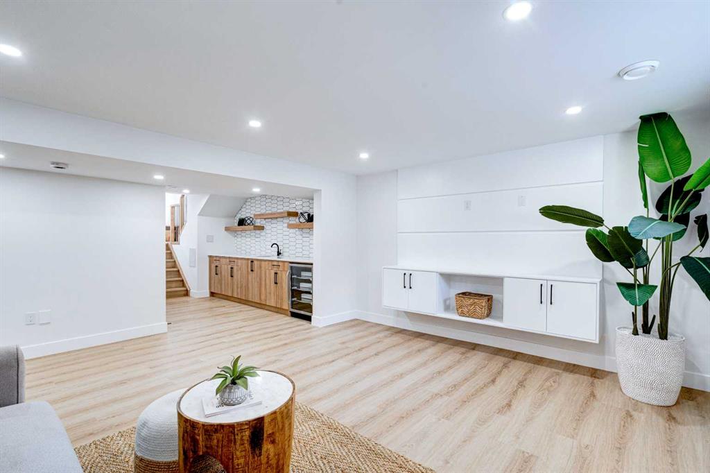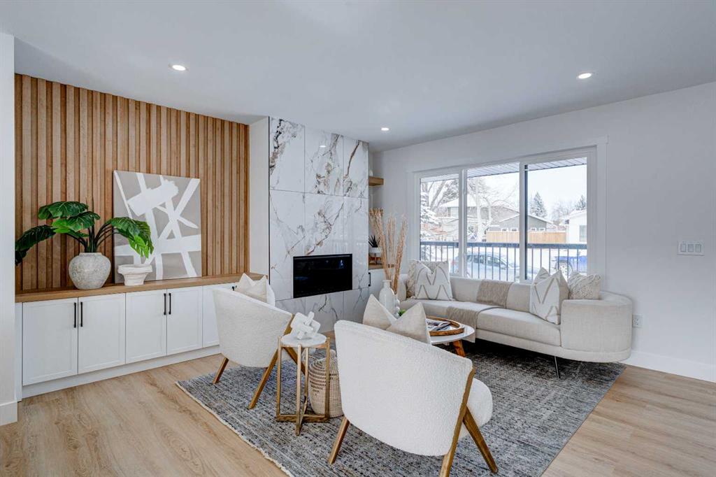 This fully REDESIGNED and RENOVATED FOUR-LEVEL SPLIT is a rare find, combining high-end finishes, modern functionality, and a fantastic location! Nestled on a spacious CORNER LOT in the heart of WESTGATE, this home is an ideal choice for families, professionals, or anyone looking for a move-in-ready home w/ style and substance! From the moment you step inside, the warmth and character of this home shine through. The main level is bright and welcoming, w/ an open-concept living area and large windows for lots of natural light, w/ a stunning floor-to-ceiling tiled fireplace as the focal point, w/ built-in shelving and a beautiful wood slat feature wall. The kitchen features stunning, designer touches, including high-end appliances that sit alongside a sleek waterfall island w/ wood slat accents, and custom cabinetry make it a dream for both everyday cooking and hosting. The dining area seamlessly connects to the outdoors w/ double doors leading to a brand-new deck—perfect for summer BBQs or enjoying a quiet morning coffee. A good-size den/home office and a 4-pc bathroom round out the main level, before heading upstairs to the dedicated primary retreat. The primary suite offers a peaceful haven w/ its stylish feature wall, spacious walk-in closet w/ built-in organizers, and oversized windows. The clean, modern ensuite features a luxurious soaker tub, a double vanity w/ premium fixtures, and a walk-in shower w/ body jets, creating a space where you can truly unwind. On the WALKOUT level, a functional and stylish mudroom w/ custom cabinetry provides ample storage, keeping everything organized. This level also features a versatile space perfect for a home office/business (separate front entrance)gym, or bedroom, plus a convenient laundry room w/ cabinetry & a sink. The basement extends the living space even further, offering two generously sized bedrooms, a spacious rec room w/ built-in media centre, a wet bar w/ full-height tile backsplash and beverage fridge, and another full bathroom. Beyond its impressive interior, this home has been extensively updated w/ quality materials built to last. The exterior features durable Hardie board siding, brand-new windows, and a recently replaced roof. A massive detached double garage w/ its own sub-panel provides plenty of parking and storage, while the large driveway and ample street parking ensure convenience for guests. Living in Westgate means enjoying a quiet, well-established neighbourhood w/ incredible amenities. Just two blocks from Edworthy Park, outdoor recreation is right at your doorstep. Top-rated schools—including Westgate School, Vincent Massey, and Ernest Manning—are within minutes, making this an ideal location for families. Westbrook Mall, the Westbrook LRT station, and various shopping and dining options are just down the road, offering the perfect balance of suburban tranquility and urban convenience.