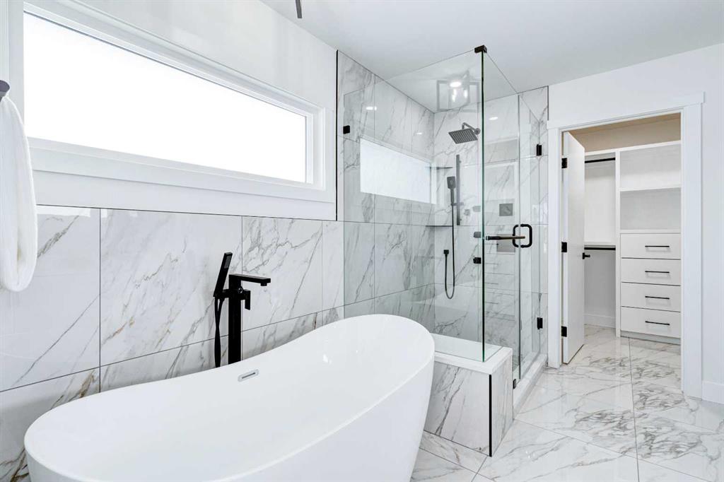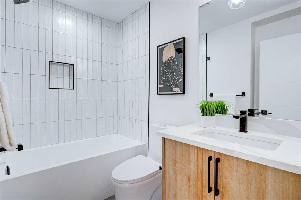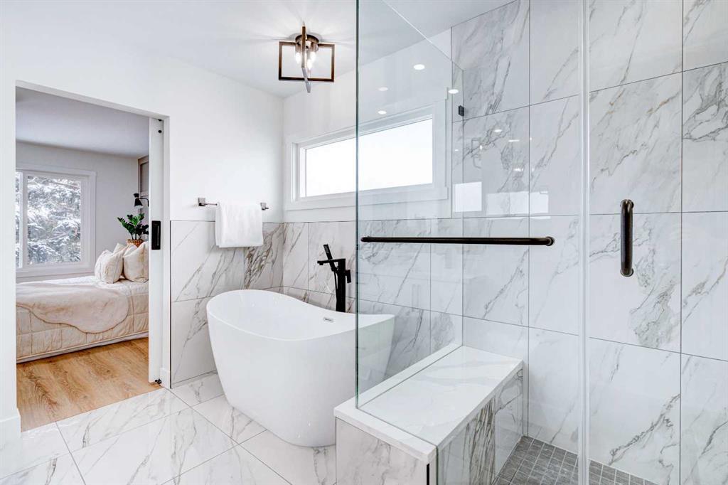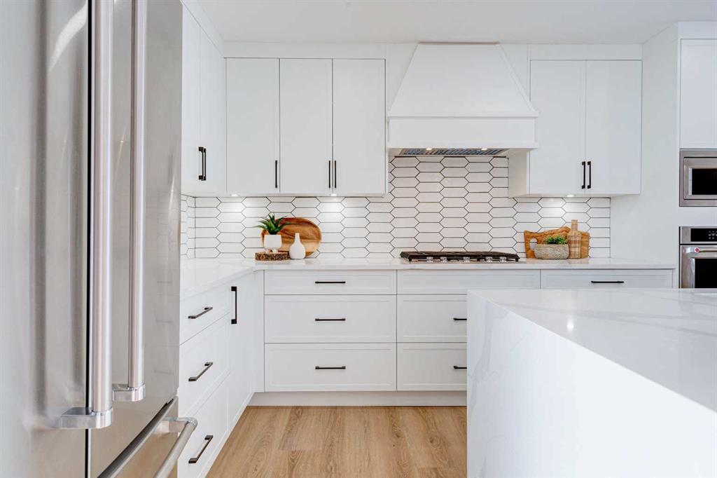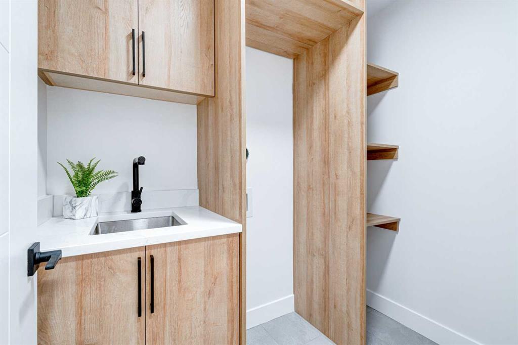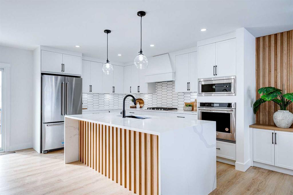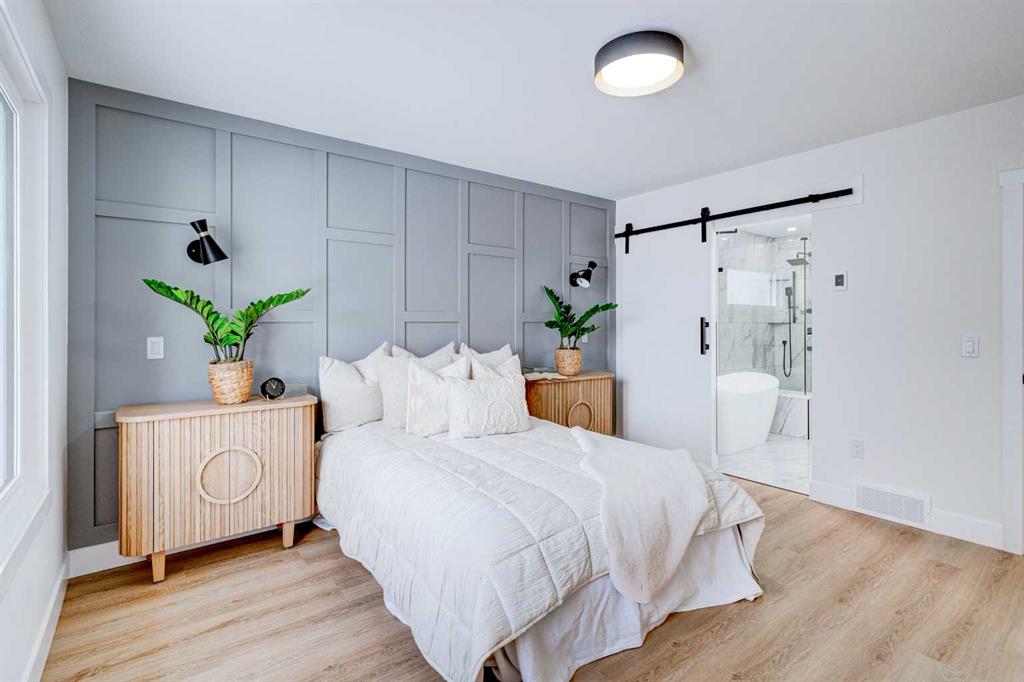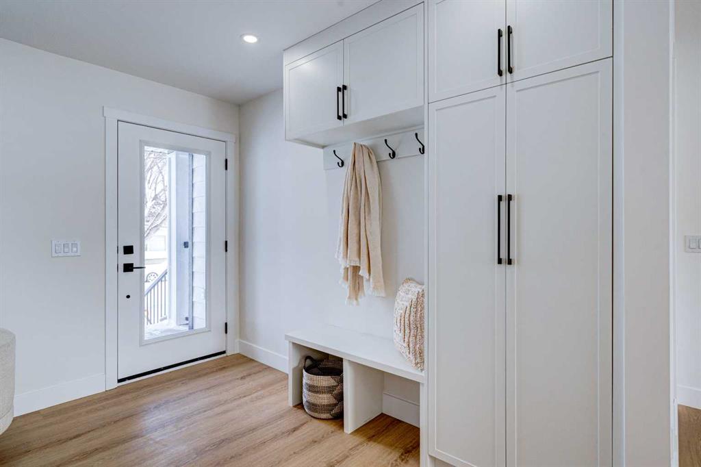 This fully REDESIGNED and RENOVATED FOUR-LEVEL SPLIT is a rare find, combining high-end finishes, modern functionality, and a fantastic location! Nestled on a spacious CORNER LOT in the heart of WESTGATE, this home is an ideal choice for families, professionals, or anyone looking for a move-in-ready home w/ style and substance! From the moment you step inside, the warmth and character of this home shine through. The main level is bright and welcoming, w/ an open-concept living area and large windows for lots of natural light, w/ a stunning floor-to-ceiling tiled fireplace as the focal point, w/ built-in shelving and a beautiful wood slat feature wall. The kitchen features stunning, designer touches, including high-end appliances that sit alongside a sleek waterfall island w/ wood slat accents, and custom cabinetry make it a dream for both everyday cooking and hosting. The dining area seamlessly connects to the outdoors w/ double doors leading to a brand-new deck—perfect for summer BBQs or enjoying a quiet morning coffee. A good-size den/home office and a 4-pc bathroom round out the main level, before heading upstairs to the dedicated primary retreat. The primary suite offers a peaceful haven w/ its stylish feature wall, spacious walk-in closet w/ built-in organizers, and oversized windows. The clean, modern ensuite features a luxurious soaker tub, a double vanity w/ premium fixtures, and a walk-in shower w/ body jets, creating a space where you can truly unwind. On the WALKOUT level, a functional and stylish mudroom w/ custom cabinetry provides ample storage, keeping everything organized. This level also features a versatile space perfect for a home office/business (separate front entrance)gym, or bedroom, plus a convenient laundry room w/ cabinetry & a sink. The basement extends the living space even further, offering two generously sized bedrooms, a spacious rec room w/ built-in media centre, a wet bar w/ full-height tile backsplash and beverage fridge, and another full bathroom. Beyond its impressive interior, this home has been extensively updated w/ quality materials built to last. The exterior features durable Hardie board siding, brand-new windows, and a recently replaced roof. A massive detached double garage w/ its own sub-panel provides plenty of parking and storage, while the large driveway and ample street parking ensure convenience for guests. Living in Westgate means enjoying a quiet, well-established neighbourhood w/ incredible amenities. Just two blocks from Edworthy Park, outdoor recreation is right at your doorstep. Top-rated schools—including Westgate School, Vincent Massey, and Ernest Manning—are within minutes, making this an ideal location for families. Westbrook Mall, the Westbrook LRT station, and various shopping and dining options are just down the road, offering the perfect balance of suburban tranquility and urban convenience.