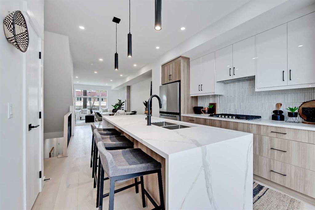SHOW SUITE OPEN THURS + FRI 3-8PM & SAT + SUN 5-8PM! The perfect balance of inner-city, luxury living to match your on-the-go, outdoor lifestyle! These upgraded, spacious, and modern SPRUCE CLIFF MEWS TOWNHOMES are the perfect option for your family, with prices starting at $699,900! Located on the corner of Spruce Drive SW, two blocks up from Bow Trail and across from Shaganappi Point Golf Course, it couldn’t be better suited to an active, metropolitan lifestyle. Enjoy golf course and DOWNTOWN VIEWS, but the open space doesn’t end there! Your neighbour to the north is the Spruce Cliff Community Association! There’s a playground, arts centre, basketball courts, lawn bowling, and open field. Just past the assoc. is a local shopping centre with everyone’s favourite Pie Junkie, a barber shop, a bakery, a pub, and more! Head south, and all the amenities, shopping, and restaurants you could need are within walking distance, including the Westbrook Mall, Westbrook C-Train Station and Library, local dining options along 17th Ave SW, and more as you travel along 17th Ave or 37th Street! Commute downtown in just 10 minutes, or hop on the train for stress-free morning travel. Spend lots of time outdoors all year round, with walking access to the Douglas Fir Trail, Edworthy Park, and the entire Bow River Pathway system! There are many playgrounds for little ones and easy access out of town following Bow Trail to Sarcee. Back home in your new townhome, you have THREE FLOORPLANS in varying price ranges! Each floorplan is loaded with the modern luxuries you want and expect from a new build, with quality finishes and craftsmanship alongside luxury upgrades. All floorplans feature an incredible ROOFTOP PATIO with East and West exposure and built-in planter boxes, a mix of luxury vinyl plank flooring and luxury carpet, 2 upper bedrooms with a third on the main floor that can also be used as a home office or flex space, and a secure, attached oversized single car garage. The gourmet kitchens are finished with upgraded custom cabinetry with under cabinet lighting and soft-close hardware, quartz countertops, central islands with waterfall edges, and a Whirlpool stainless steel appliance package complete with a French door refrigerator, gas cooktop, wall oven and microwave, and dishwasher. Each home also features a kitchen balcony, complete with a gas line for a BBQ! Enjoy family meals and entertaining in the full-size dining room, and lounge comfortably in the spacious living room with a contemporary electric fireplace with tile surround! Two bedrooms, including the primary with a private 4-pc ensuite, are found on the third floor with a laundry closet and modern bathroom finishes. Don’t miss your opportunity for the ultimate live, work, and play lifestyle in these upcoming luxury townhomes! Be sure to view the floorplans, specs, and brochure for an immersive look into your family’s new home today! *Renderings are for inspiration purposes only; actual finishes and selections may vary.