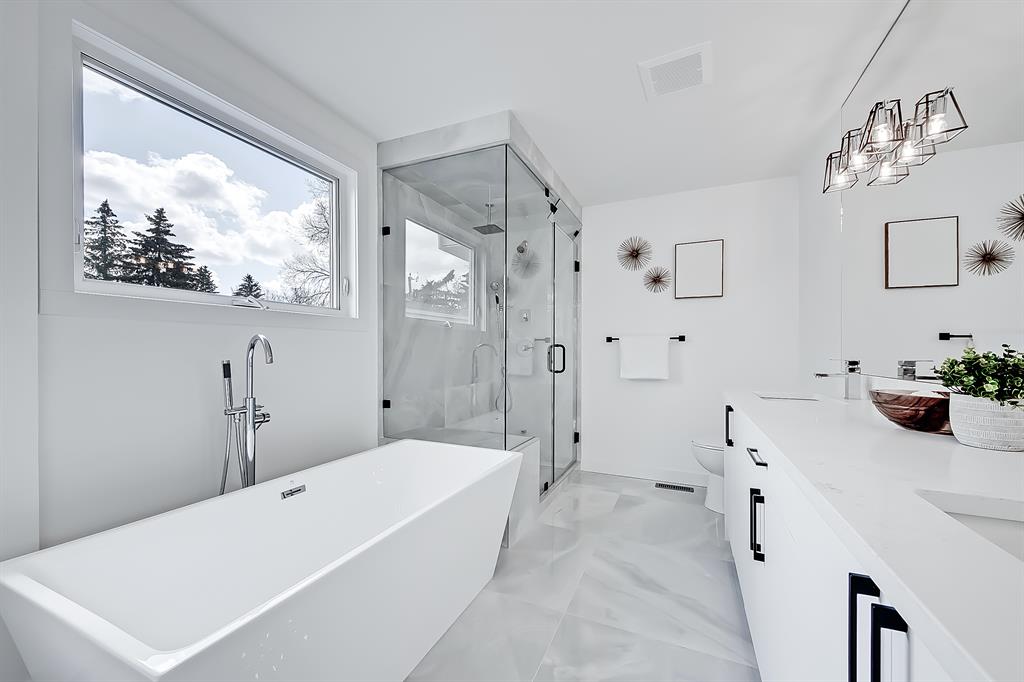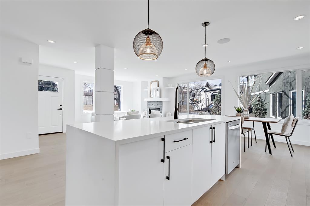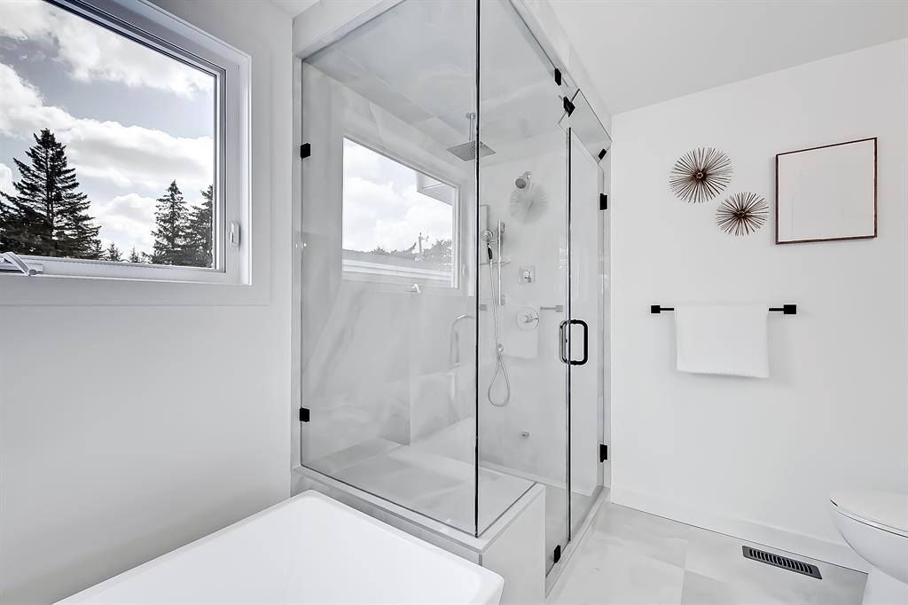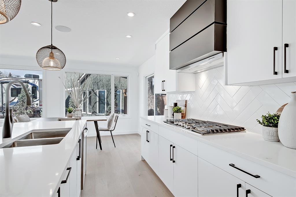 NEWLY BUILT 5-BED BUNGALOW in the established community of WESTGATE! You’d think this was a brand new build w/ all the MODERN NEW touches – including SMART home capabilities, SURVEILLANCE ROUGH IN, CENTRAL VAC ROUGH IN, & COMPLETE ALARM PANEL w/ GLASS BREAK & BUILT IN WIRED SENSORS, plus IN-CEILING SPEAKERS. Newly inspected & completed building permit for 2023 includes newly roughed-in to final completion of plumbing, electrical, & HVAC. Brand new appliances, newly VAULTED primary suite w/ designer chandelier-style light & oversized walk-in closet, newly built kitchen/dining/living room, & an entirely new foundation extending both the basement & upper primary suite level for an additional 400+ sqft of living space! The modern elegance begins as you step into the spacious & bright foyer overlooking the main floor & its naturally sunny & bright atmosphere w/ plenty of windows for all daylight. The contemporary living room features a stunning stone-wrapped gas fireplace w/ a mantle & open display shelves. Oversized newly installed windows follow you into the dining room & attached chef-inspired kitchen, where you’ll find flat panel cabinetry, a classic white herringbone backsplash, a large central island w/ waterfall quartz countertop, & brand-new stainless steel appliances (including French door fridge, wall oven & microwave, gas cooktop, & custom-built hood fan). 3 bedrooms on the main floor include the primary suite w/ a deluxe ensuite w/ a freestanding soaker tub, stand-up shower w/ full height tile & a built-in bench, roughed-in relax-a-mist steamer, body massage jets, waterfall rain shower, & a handheld. Downstairs, 1,211 sq ft of brand-new developed space gives your family lots of room to spread out. A large rec room enjoys its own built-in media centre & a full wet bar complete w/ a sink, lower cabinetry, beverage fridge, & open wine display. There are also TWO large bedrooms w/ walk-in closets & easy access to the 4-pc bath. The real highlight of this space, though, is the fully equipped THEATRE ROOM – complete w/ a projector & screen, built-in media cabinet, & built-in 5.1 sound system & in-ceiling speakers for true surround sound, & a wall-mount electric fireplace. Out back, newly poured concrete walkways & steps lead to the large green space in the backyard & pressure-treated deck for your warm summer gatherings. A newly built 23-foot deep garage w/ an 8-foot garage door is complete w/ insulation & poly vapour barrier w/ newly poured concrete PAD & apron welcoming the largest of vehicles & ample storage space. Westgate offers a quiet, friendly neighbourhood to relax & unwind in. Edworthy Park is only 2 blks away, making outdoor time a seamless part of your days. Westgate School, Vincent Massey, Ernest Manning, & Calgary Christian Secondary School are w/in a 10-min drive, Westbrook Mall, Westbrook LRT, & the surrounding amenities & shopping are just down the road. It’s truly a fantastic location & to settle down in!