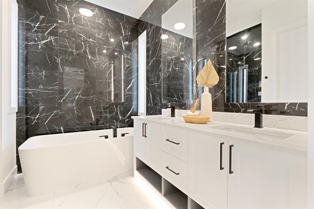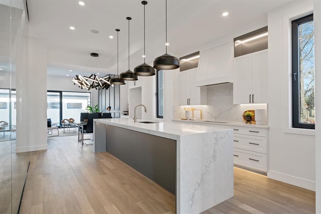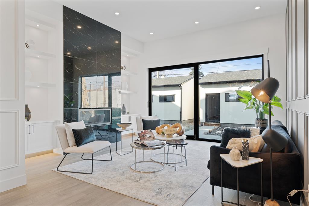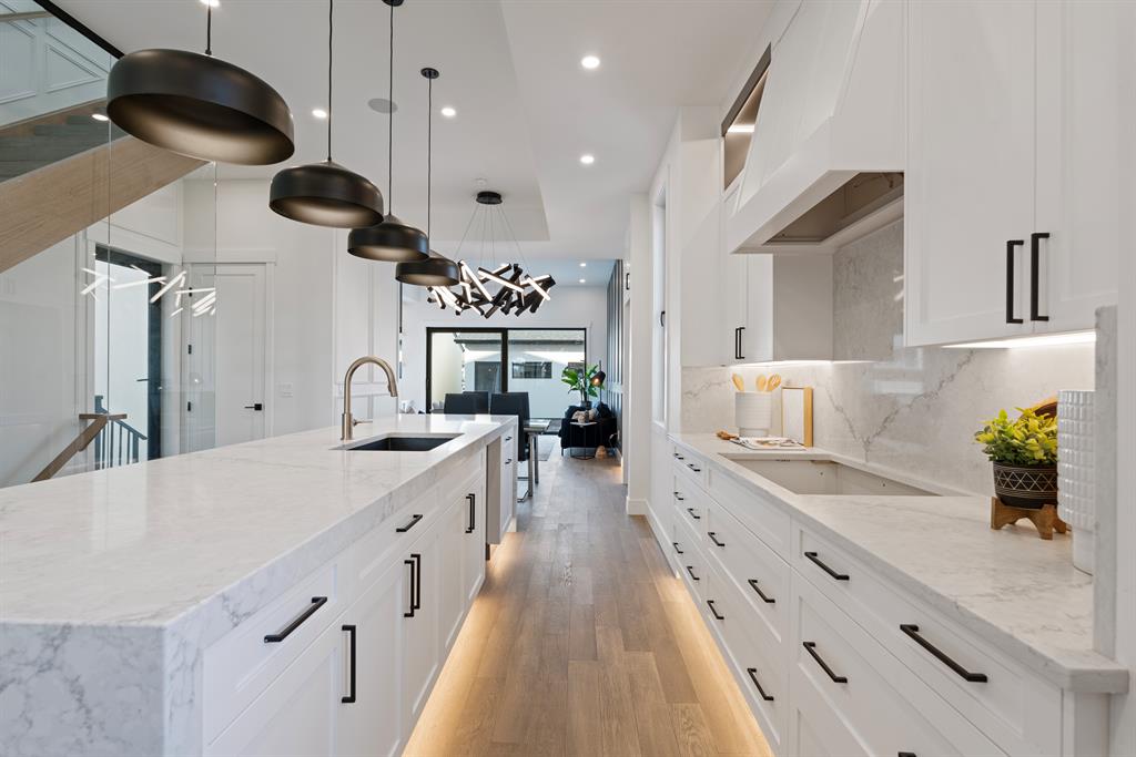 The timeless NEW YORK-INSPIRED BRICK HOME you’ve been waiting for! This brand-new detached 4-BED, 4.5 Bath infill offers over 2900+SQ FT of total living space. Built by Moon Homes, this home has no detail overlooked. Highlights include motion-activated LED lighting in all bathrooms, tilt & turn German-made oversized windows throughout, panel moulding across all floors, & smart home mobile app-controlled lights & heating system! Each inch of the home is uniquely designed to utilize the space expertly while adding the modern, upscale touches you expect from a new infill. The main floor has engineered oak hardwood floors and 11-FT CEILINGS, a spacious, bright foyer w/ a built-in bench w/ shiplap wall & closet and views into the bright & welcoming front office through an 8-ft glass feature wall. The show-stopping chef-inspired kitchen is welcoming and spacious, w/ a complete JENN-AIR stainless steel appliance package, ceiling-height shaker-style cabinetry with open decorative niches w/ built-in LED lighting, and an oversized island w/ room for 6 stools! The formal dining room is bright and welcoming, w/ additional built-in storage inset into the wall. Complementing the modern, upscale feel is the large living room w decorative feature wall and gas fireplace showcasing ceiling-height tile and built-in millwork. Step outside to the oversized concrete patio through a 10-ft TILT & SLIDE glass patio door for the ultimate entertainment experience. The contemporary powder room is nicely tucked next to the office, perfect for guests or clients, and features a soaring ceiling, full-height mirror, & motion-activated LED lighting. Custom designer touches continue upstairs with a floor-to-ceiling glass stairwell wall leading you to the gorgeous primary suite. The suite features three oversized windows with river views, dual pendant lights w/ individual controls, and a spa-like 5-pc ensuite w/ custom steam shower w/ built-in bench, soaker tub, and double vanity w/ open storage. The two secondary bedrooms are both JUNIOR SUITES, each with a private 3-pc ENSUITE w/ stand-up shower w/ full-height tile surround & custom closets. The upper floor also has a convenient laundry room w/ a sink, herringbone tile backsplash, large linen closet, and folding counter. The living space continues into the FULLY DEVELOPED BASEMENT w/ rec room, dedicated flex space w/ 8-ft glass wall, a fully equipped WINE ROOM w/ decorative lighting, and a full wet bar. There’s also a fourth bedroom w/ a 4-pc bath – perfect for guests or older kids. An infill this incredible needs a community to match! This home is just off the Bow River for easy access to the pathway system & other outdoor adventures. It is just up from 9th Ave, giving you access to Good News Coffee, the Inglewood Community Association, and more. The rest of Inglewood and all the contemporary and trendy shops are down the road – Bite Grocer, Cold Garden-plus a short daily commute downtown! *BUILDER BONUS – FREE A/C or Equivalent Upgrade!*