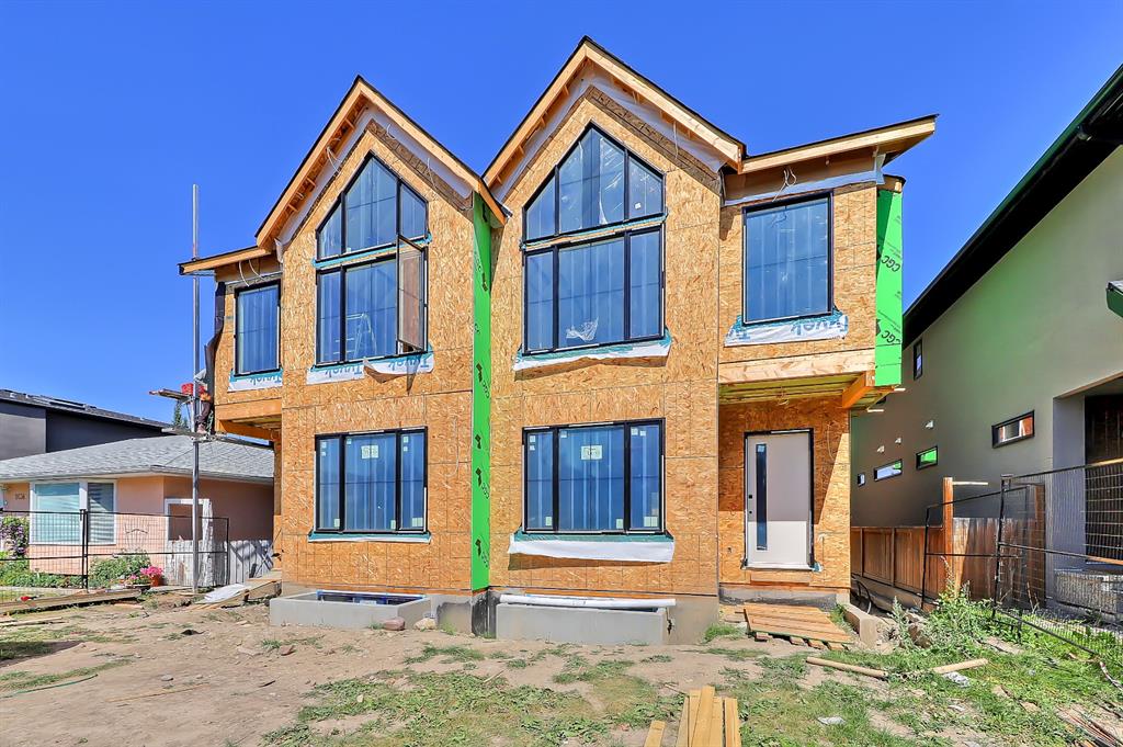 HIGHLY UPGRADED, 4-bed, 1,956+ sq ft SEMI-DETACHED infill coming THIS SEPTEMBER to ALTADORE! Situated on a picturesque street w/ other newly developed homes and neighbours who’ll become friends! The home not only has amazing curb appeal, but it features a fantastic OPEN LAYOUT w/ a private South-facing MAIN FLOOR HOME OFFICE and a WALK-UP BASEMENT w/ LOWER MUDROOM. This is a highly sought-after location and homes in this area don’t stay on the market long. You’re only a couple of blocks away from Flander’s Park, My Favourite Ice Cream Shoppe, and Dr. Oakley Playground, plus you’re within easy walking distance to the entire Marda Loop shopping district, River Park and Sandy Beach, and the Glenmore Athletic Fields and Aquatic Centre! The central kitchen can easily host extended family dinners or your kids and their friends w/ an oversized 10’ island with quartz countertops and a dedicated dining room. Storage isn’t a problem either, with plenty of cabinets and a built-in pantry w/ soft-close hardware. A bright, airy living room gives you access to the back deck through 8’ sliding glass doors and features a gas fireplace w/ full height tile detailing, custom millwork, and built-in shelving on either side. A private office with barn door access overlooks the South-facing front yard through oversized windows for a bright, quiet workspace. The main floor mudroom and powder room are found off the main living area for added privacy. A skylight on the upper level keeps the home feeling large and bright, while the primary suite is true luxury. The space features vaulted ceilings, large South-facing windows, a massive walk-in closet, and a luxurious ensuite. A laundry room w/ tile flooring and cabinetry, two secondary bedrooms, and a 4-pc main bath w/ a large vanity & shower/tub combo finish off this level. Downstairs, the large rec room enjoys WALKOUT ACCESS TO THE BACK PATIO through a sliding glass door and features a full wet bar, a built-in media wall, and a LOWER MUDROOM w/ built-in bench & cubbies. Altadore is the ideal location for young families looking to be close to parks, schools, and amenities. The neighbourhood is only 5 km from the downtown core, easily accessible along 14 Street SW or Crowchild Trail, and the community has both public and separate schools, junior high and high schools nearby, and Mount Royal University to the south. This highly sought after neighbourhood and exceptional home are the perfect place for you and your family to call home!