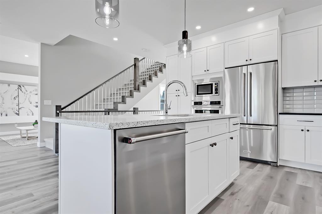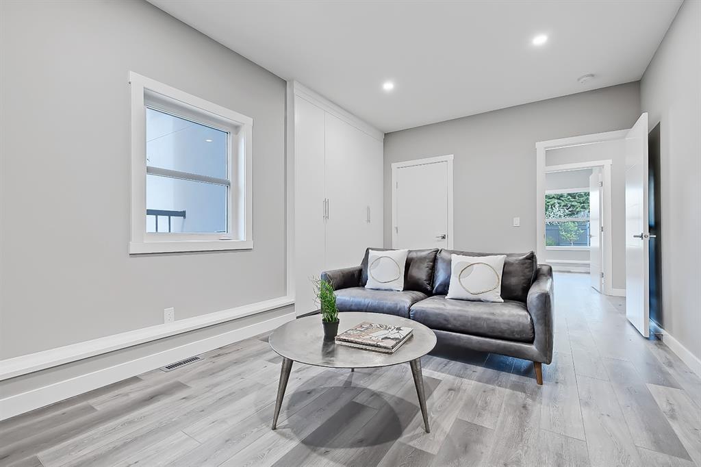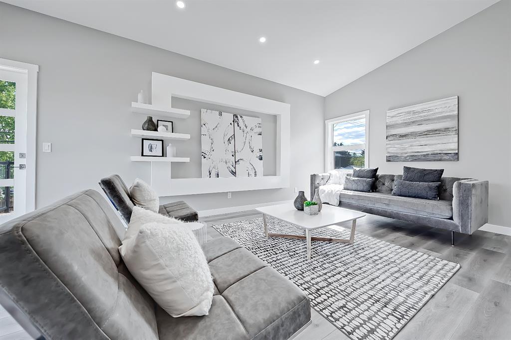 *Visit Multimedia Link for 360º VT & Floorplans!* You have to see it to believe it! This 3-storey semi-detached infill with a developed basement is MOVE-IN READY in the beautiful community of SPRUCE CLIFF! Functional and elegant, this innovative home offers over 3,000 square feet of total living space across all levels with 4 beds & 4.5 baths and is set apart with a DOUBLE ATTACHED GARAGE, 2 oversized balconies, and 4 levels in total. Close to amenities, schools, & LRT! The ground floor welcomes you in and offers a family room with a built-in custom media center, a good-sized bedroom with a custom closet, a 4-piece bathroom, and access to both the spacious front and back yards. The main floor showcases a designer kitchen complete with quartz countertops, soft close cabinets, a white subway tile backsplash, and a large island with breakfast bar seating. Quality stainless-steel appliances include a gas countertop range and hood fan, a built-in wall oven and microwave, a French door fridge/freezer, and a built-in dishwasher. A large dining room with oversized windows overlooks the East-facing balcony & offers an inviting space for family meals. Off the kitchen is a large main floor living room with access to two balconies with plenty of room for outdoor furniture making this a great place to gather with family and friends. Nicely finishing off this level is the large laundry room with quartz countertops, custom cabinetry, a built-in sink, and plenty of shelving. Upstairs you will find the master suite with vaulted ceilings, ravine views, and a walk-in closet with custom built-in shelves, drawers, and hanging bars. The 5-piece ensuite is finished with marbled tile, custom cabinets, dual vanity with undermount sinks, a soaker tub, full-height tile glass walk-in shower with rain & hand-held showerheads, and a private water closet. The Jr. Master includes a large walk-in closet with custom built-in shelves, drawers, and hanging bars and a 4-piece ensuite w/ marbled tile, quartz countertops, an undermount sink, and a tub/shower combo. The finished basement continues to impress with a large family room, a full wet bar with quartz countertops, an undermount sink, custom cabinets, and a built-in wine rack. The good-sized bedroom & full bathroom is perfect for hosting overnight guests. This home offers plenty of outdoor space, including a large front yard and landscaped backyard. With direct access to Spruce Drive and a short walk to the Bow River, multiple river pathways & trails, this home is a great find! Move-in ready, don’t miss this unique opportunity to live in this desired & family-oriented community of Spruce Cliff!