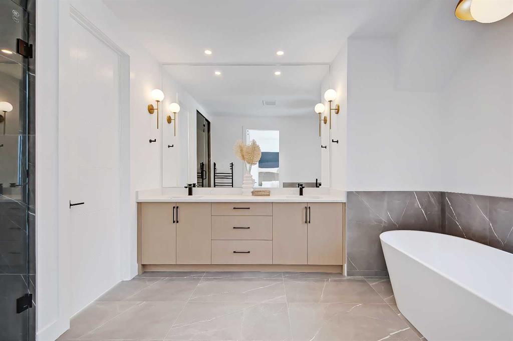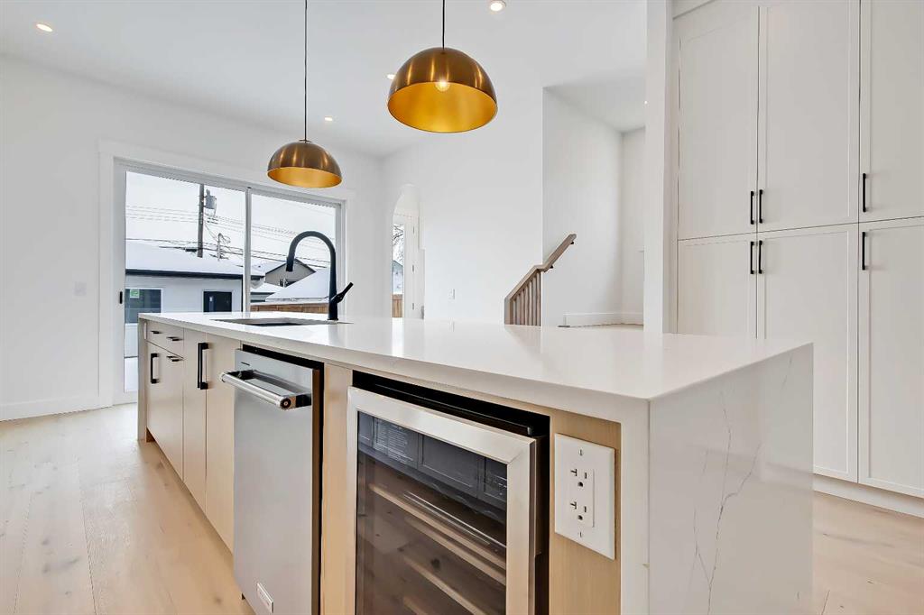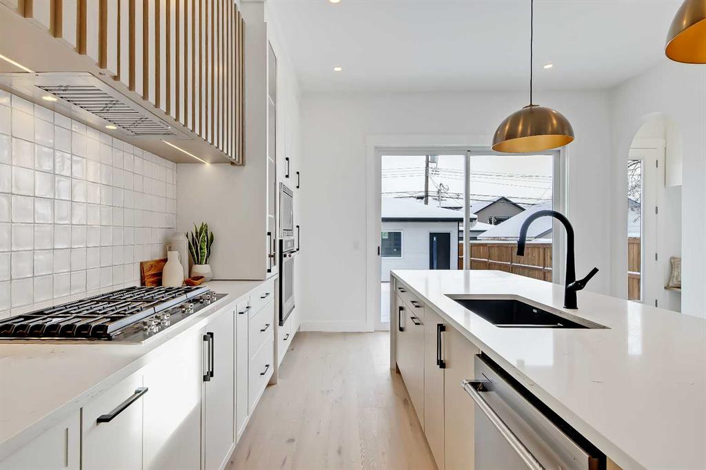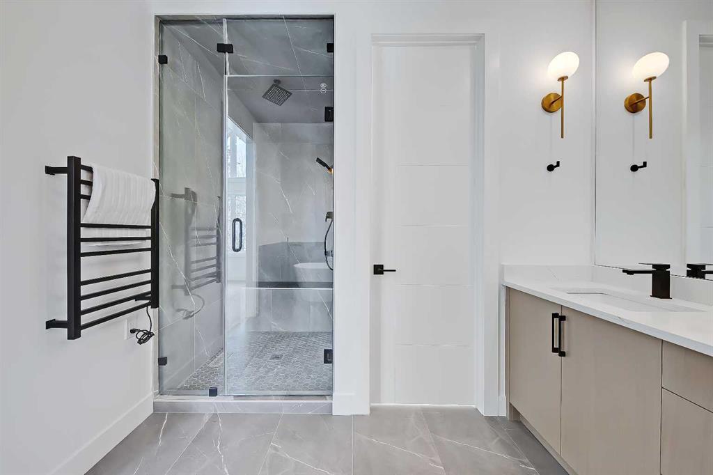 Look at this curb appeal! And that’s only the beginning of this immaculate, highly upgraded designer SEMI-DETACHED infill in Tuxedo Park! Over 2500 sq ft of living space across 5-BEDS, including a fully developed LEGAL 2-BED BASEMENT SUITE w/ it’s own private entrance & separate laundry! This sought after location offers an ideal location for families, w/ parks, schools, shopping, & amenities all around. The inside of this incredible home showcases engineered hardwood flooring, beginning in a lovely open, spacious front living room w/ an inset gas fireplace w/ tile surround, & large windows overlooking the front yard. A dedicated HOME OFFICE shares an open floorplan w/ the dining room and large, central kitchen, which features extensively upgraded custom cabinetry, an upgraded stainless steel appliance package, an oversized island w/ lots of bar seating, & an oversized built-in pantry! The kitchen is also flooded w/ natural light from the large sliding patio door for quick & seamless access to the SOUTH back deck w/ a gas line for a BBQ. There’s also a mudroom w/ tile flooring, a custom built-in bench w/ hooks, & a walk-in closet that offers an easy transition outdoors & an elegant 2-pc powder room w/ a stylish vanity & undermount sink. Upstairs, the expansive primary suite features a sky-high vaulted ceiling welcoming you into this well-designed retreat, complete w/ PRIVATE BALCONY, a walk-in closet, & an outstanding 5-pc ensuite w/ barn door entrance, modern vanity w/ dual sinks, a free-standing soaker tub, a fully tiled walk-in rain shower w/ bench, & heated tile floors. Two secondary bedrooms have walk-in closets & share access to the main 4-pc modern bath. A large, tiled laundry room features a quartz folding counter, & a linen closet in the hallway adds additional storage. With its own private, secure side entrance, the legal basement suite is an excellent mortgage helper or mother-in-law suite w/ contemporary touches found in the rest of this upscale home. Luxury vinyl plank flooring runs throughout the suite across the spacious open-concept space. The modern kitchen features custom cabinetry, quartz countertops, an elegant backsplash, & a good-sized central island for even more counter space & storage. There’s also a separate laundry, a sizeable 4-pc bathroom, & two bedrooms w/ built-in closets. Dual furnaces allow for a comfortable atmosphere for whoever enjoys this modern space. Don’t miss this fantastic opportunity! *Photos from similar project by the same builder, some finishes may vary*