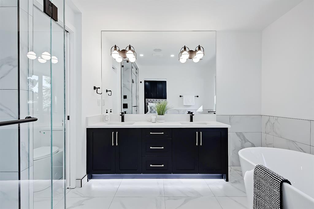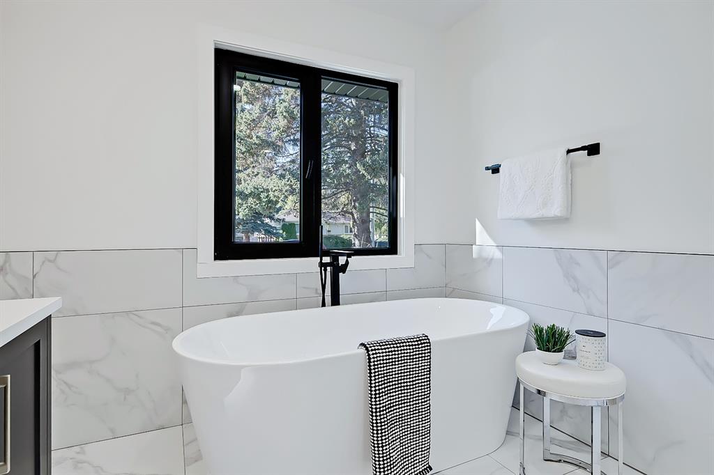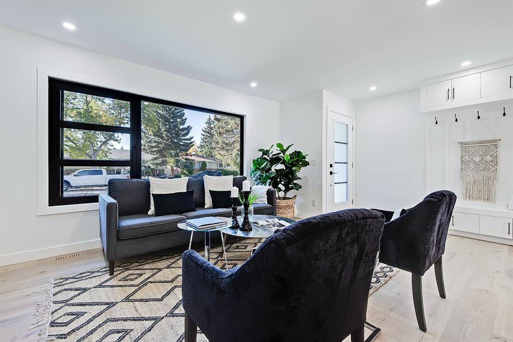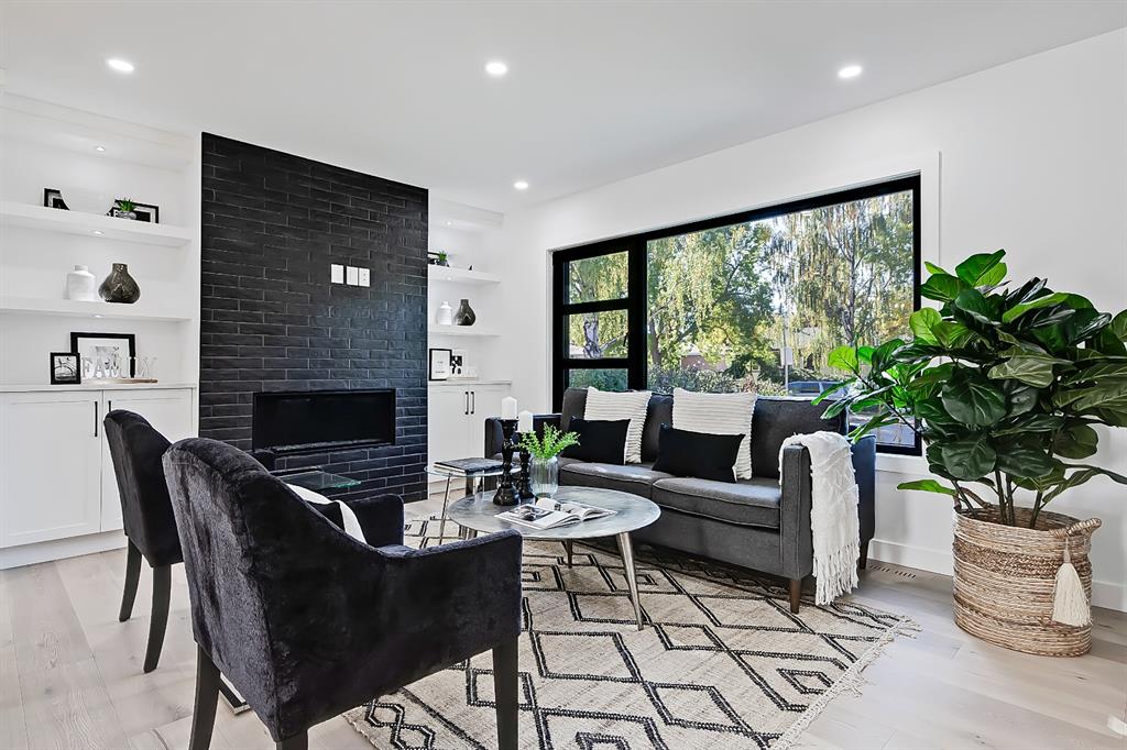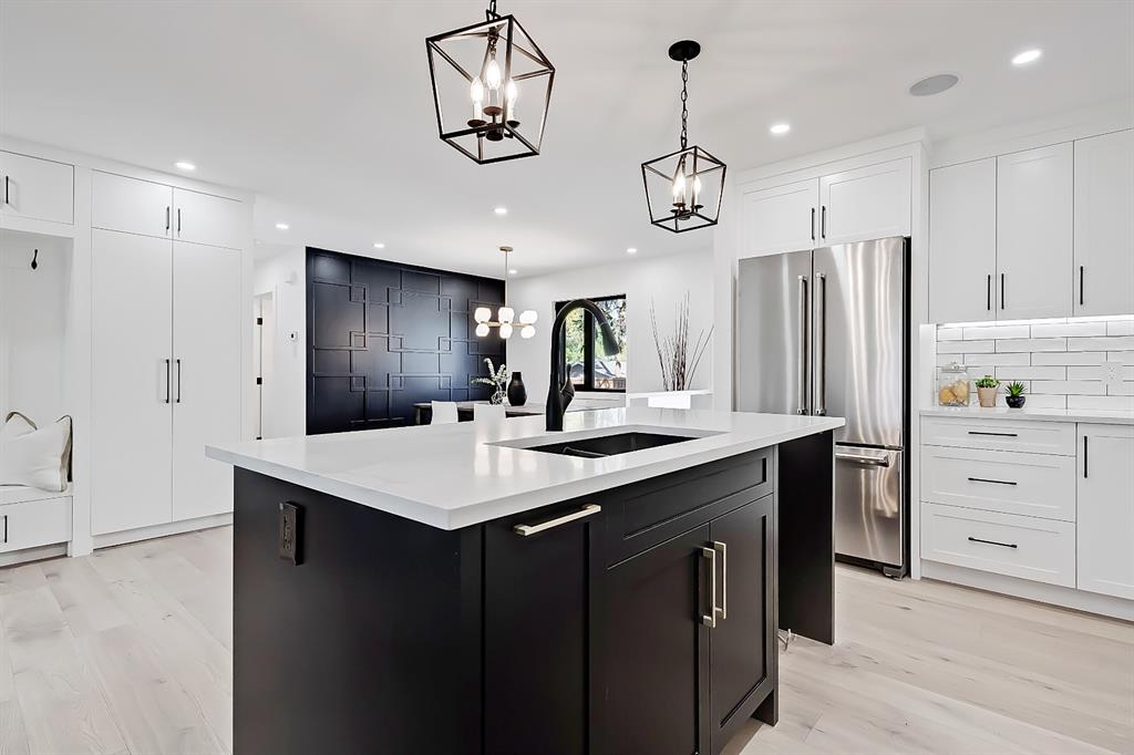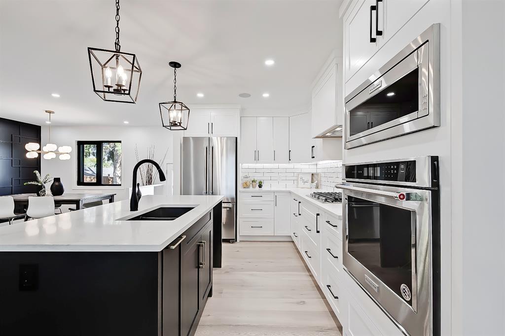 **OPEN HOUSE SATURDAY NOV 5 2:00-4:00PM **| NOT YOUR AVERAGE RENOVATION. FULLY RENOVATED with over 1975 sq ft of living space this bungalow in Haysboro looks and feels like a new home! This thoughtfully designed family home has everything you’d expect from a fully renovated property – including 4 bedrooms, a fully developed basement, and added upgrades. The main floor features a stunning open concept and lots of windows to make the space spacious and bright. The modern, renovated kitchen includes a stylish subway tile backsplash and a stainless-steel appliance package complete w/ a French door refrigerator, gas cooktop, hood fan, built-in wall oven and microwave, plus a dishwasher. A large central island is an ideal final addition to this space, adding breakfast bar seating, quartz countertops, and an under-mounted sink. The formal living room is centred on an inset GAS fireplace with a striking dark subway tile surround w/ built-in cabinetry and shelving on either side. A lovely dining room is nestled along a modern feature wall and a large window. The massive master suite will be the next stop you make when giving guests the tour! There’s an amazing charcoal feature wall with built in wall sconce lighting next to large-paned windows, and an attractive barn door gives you access to the private 5-piece ensuite. The ensuite is just as stunning as the rest of the house, w/ a modern vanity with dual under-mounted sinks, a freestanding soaker tub, and a glass wall shower with a full-height tile surround. A secondary bedroom on the main floor includes a built-in closet and pleasant views of the quiet backyard. A main 4-piece bathroom close by includes matching quartz countertops, an under-mounted sink, and full height tile. The basement opens up into a bright and large rec room, with a built-in media wall and a large wet bar with custom-built cabinetry, space for a beverage fridge, and decorative shelving. Two additional bedrooms can be found on this level, each with large windows for basement rooms, built-in closets, and access to a 4-piece bathroom with a fully tiled tub/shower combo. The large backyard is fully landscaped and offers a massive brand NEW CONCRETE PATIO & SIDEWALKS with lots of room for outdoor furniture, a bbq and a fire pit, and the yard definitely passes the trampoline test! A brand NEW 24×24 GARAGE with oversized garage door,11FT Ceilings, and rough in for an EV CHARGING STATION finishes off this amazing home. Haysboro is a family-friendly community only a few minutes to Macleod Trail, close to Chinook Mall, shopping centers, Glenmore Reservoir, and all levels of schools. This is the perfect house and community to call home!