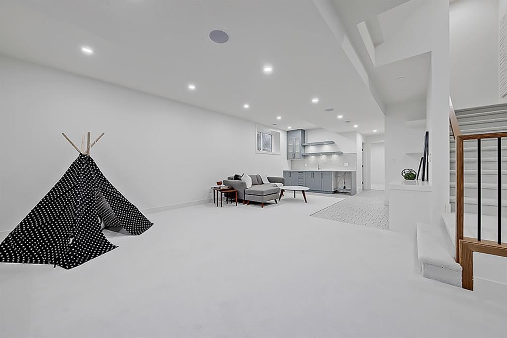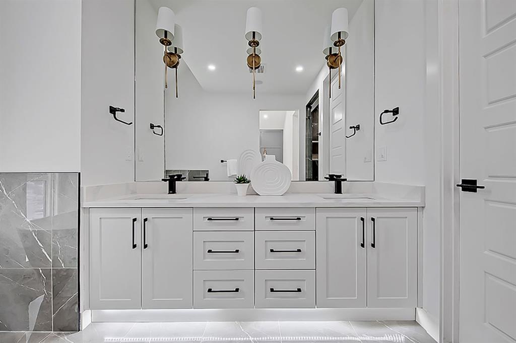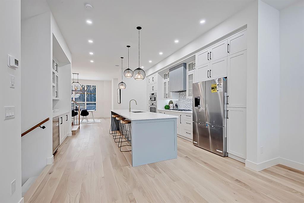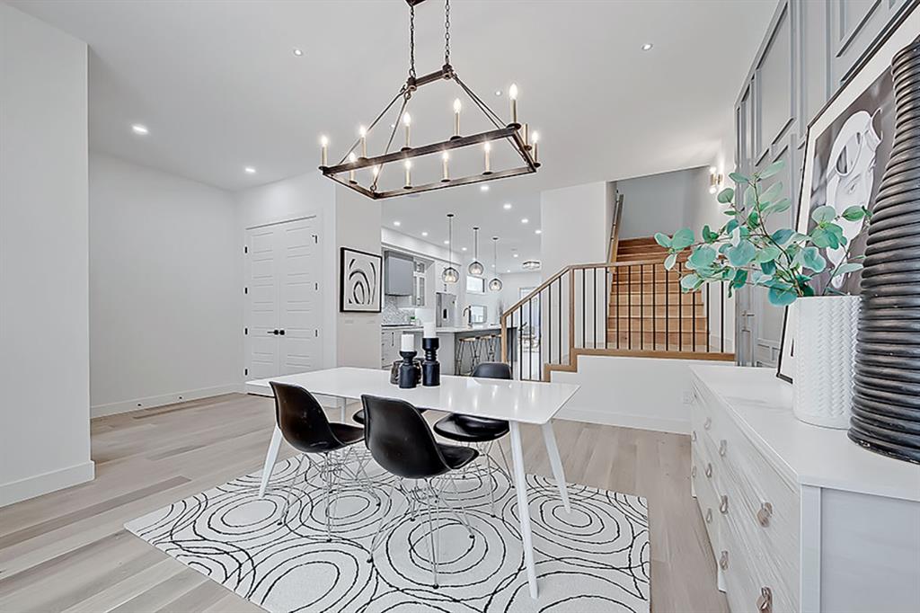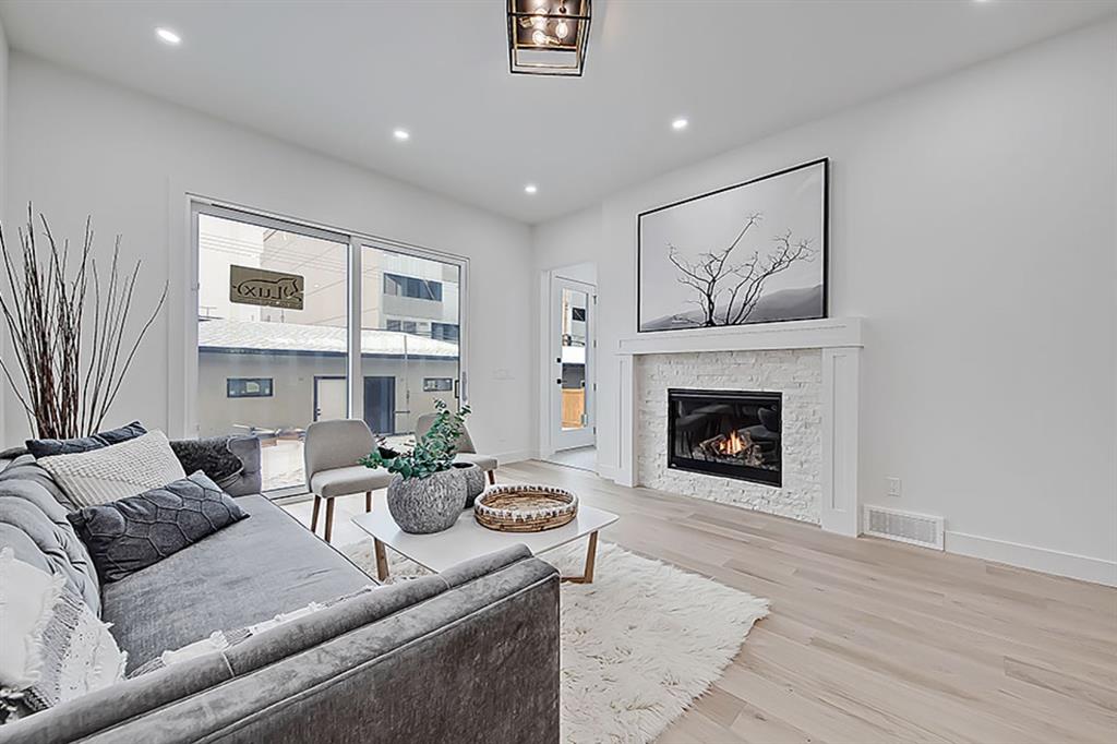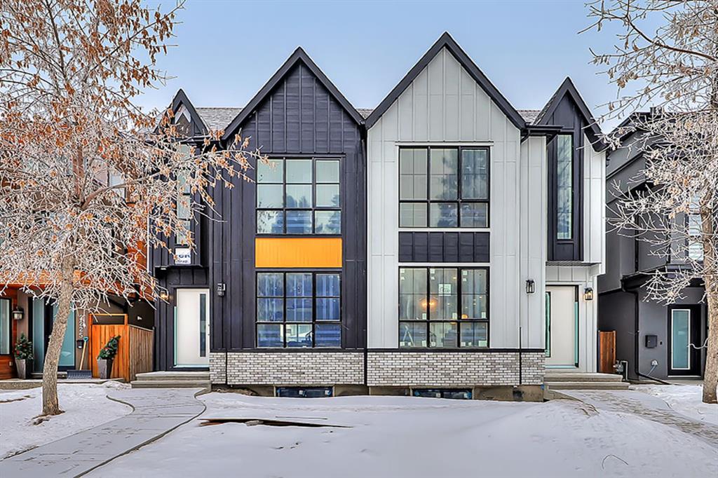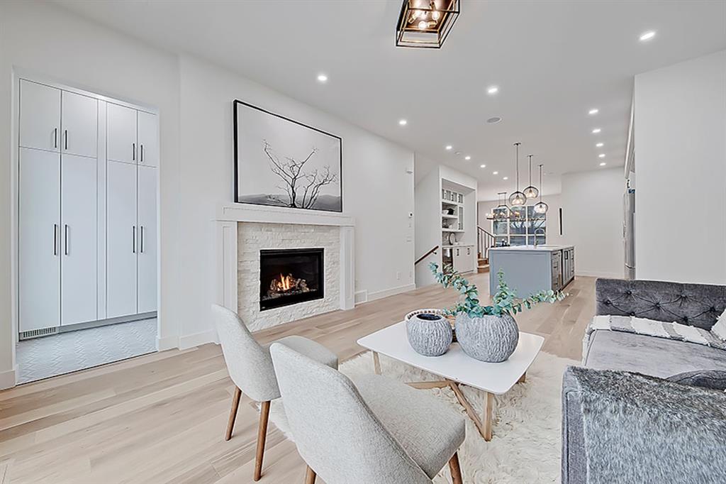 With a contemporary colour palette, luxury finishes, and upgraded details throughout, this MOVE-IN READY SEMI-DETACHED home in RICHMOND is the definition of modern luxury in the heart of the inner-city! Features 4-beds, 3,000+ sq ft of developed living space, fantastic curb appeal, a double detached garage, high ceilings, designer mudroom, multiple feature walls, vaulted ceilings, and skylights. The main floor is host to an ample, modern central kitchen w/ oversized island w/ bar seating, quartz countertops, a stunning multi-tone herringbone tile backsplash, plenty of white shaker-style cabinetry w/ soft-close hardware, a beautiful wood-panel hood fan above a gas range, stainless steel appliances, and an additional built-in coffee bar/extra storage w/ beverage fridge for convenience and practicality. A bright, airy living room gives you access to the back deck and features a remote-controlled gas fireplace w/ a stone surround and custom millwork. The spacious mudroom is discreetly placed behind the fireplace and has built-in closets, cabinets, a bench, and hooks. The powder room is found off the mudroom, which is excellent for some added privacy, away from the main living space. Two skylights and wide plank oak hardwood flooring on the upper level keep the home feeling large and bright. The primary suite is ultra-luxurious with vaulted ceilings, grey feature wall, large windows, dual walk-in closets w/ built-in custom shelving, a built-in makeup desk w/ a full-height mirror, and a deluxe ensuite w/ barn door entrance, freestanding soaker tub w/ full-wall clamshell tile backsplash, and roughed-in steam shower w/ full-height tile and bench. The main bathroom, shared by the secondary bedrooms, offers a dual vanity and private shower/tub – perfect for siblings. Downstairs, the entertainment room is spacious and welcoming, featuring a full wet bar w/ sink, beverage fridge, tile backsplash, open display shelves, and TWO built-in media/display walls w/ closed storage and display shelving. The fourth bedroom is perfect for teens or a guest bedroom, and the 4-pc bath continues the home’s upscale feel w/ designer tile flooring and a full-height tile surround on the tub/shower combo. Richmond is the ideal location for young families looking to be close to parks, schools, and the amenities of Marda Loop. Walk to Village Ice Cream, WOW Bakery, Blush Lane Organic Market, and more! The neighbourhood is a short drive to the downtown core, easily accessible along Crowchild Trail or 14 Street SW and a quick trip to Marda Loop Community Tennis Courts, South Calgary Outdoor Pool, and the Giuffre Family Library.