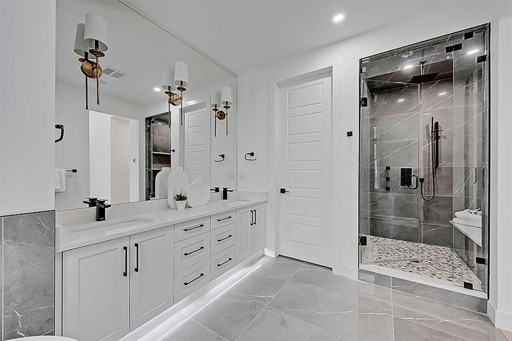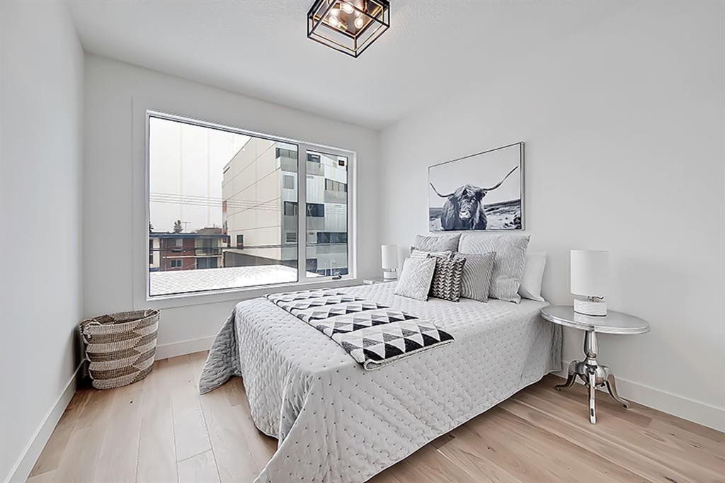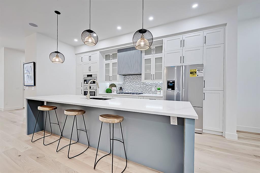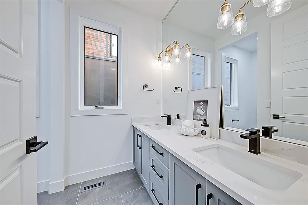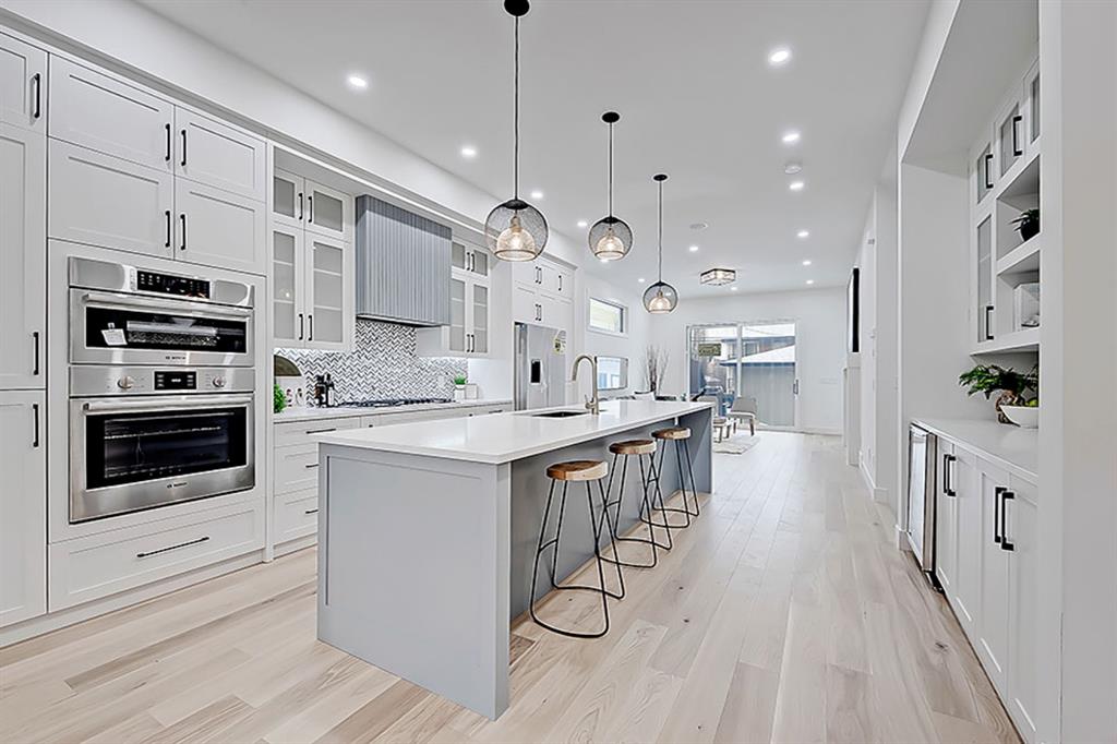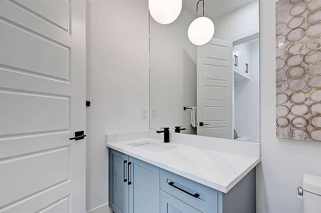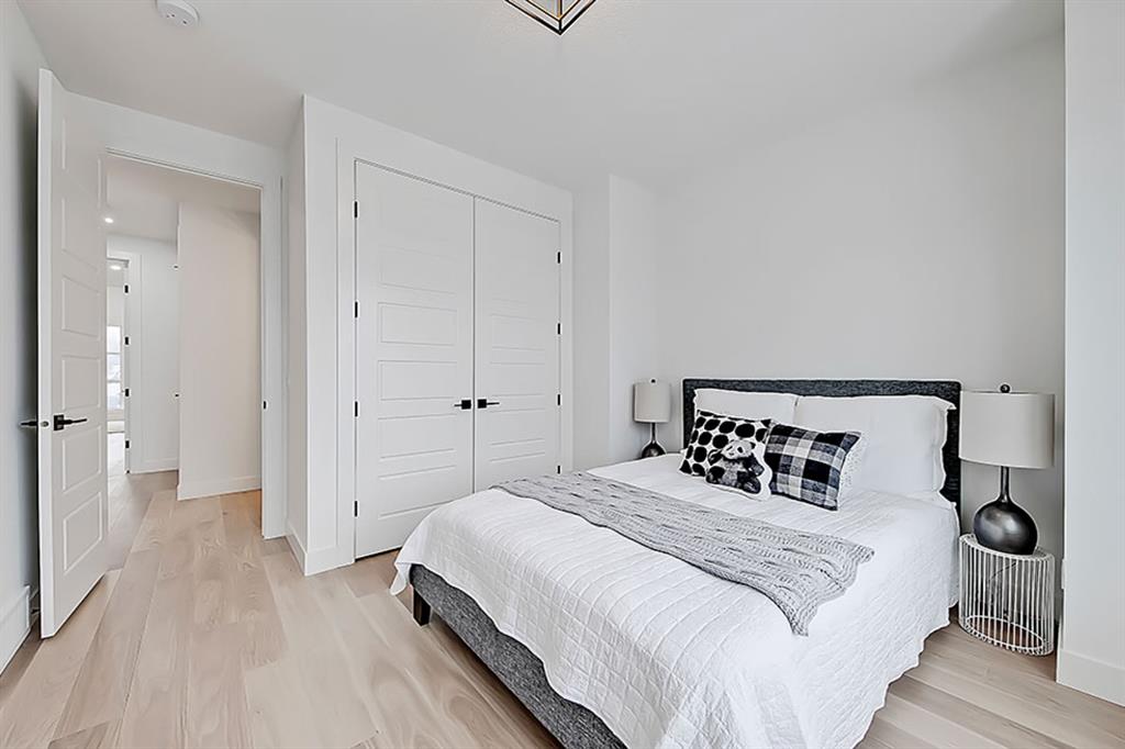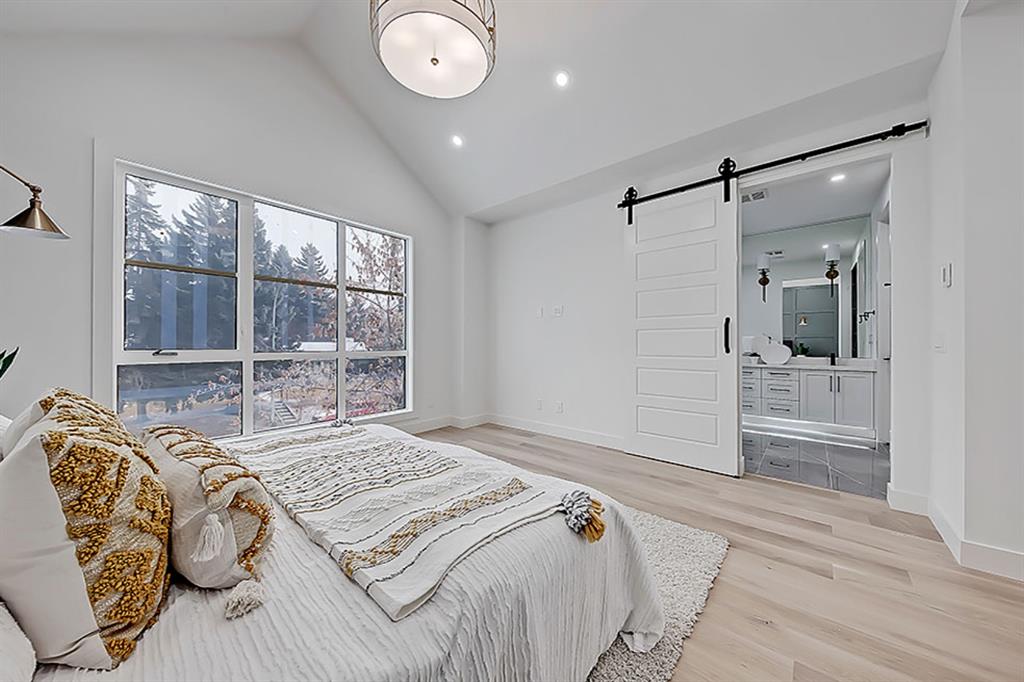 With a contemporary colour palette, luxury finishes, and upgraded details throughout, this MOVE-IN READY SEMI-DETACHED home in RICHMOND is the definition of modern luxury in the heart of the inner-city! Features 4-beds, 3,000+ sq ft of developed living space, fantastic curb appeal, a double detached garage, high ceilings, designer mudroom, multiple feature walls, vaulted ceilings, and skylights. The main floor is host to an ample, modern central kitchen w/ oversized island w/ bar seating, quartz countertops, a stunning multi-tone herringbone tile backsplash, plenty of white shaker-style cabinetry w/ soft-close hardware, a beautiful wood-panel hood fan above a gas range, stainless steel appliances, and an additional built-in coffee bar/extra storage w/ beverage fridge for convenience and practicality. A bright, airy living room gives you access to the back deck and features a remote-controlled gas fireplace w/ a stone surround and custom millwork. The spacious mudroom is discreetly placed behind the fireplace and has built-in closets, cabinets, a bench, and hooks. The powder room is found off the mudroom, which is excellent for some added privacy, away from the main living space. Two skylights and wide plank oak hardwood flooring on the upper level keep the home feeling large and bright. The primary suite is ultra-luxurious with vaulted ceilings, grey feature wall, large windows, dual walk-in closets w/ built-in custom shelving, a built-in makeup desk w/ a full-height mirror, and a deluxe ensuite w/ barn door entrance, freestanding soaker tub w/ full-wall clamshell tile backsplash, and roughed-in steam shower w/ full-height tile and bench. The main bathroom, shared by the secondary bedrooms, offers a dual vanity and private shower/tub – perfect for siblings. Downstairs, the entertainment room is spacious and welcoming, featuring a full wet bar w/ sink, beverage fridge, tile backsplash, open display shelves, and TWO built-in media/display walls w/ closed storage and display shelving. The fourth bedroom is perfect for teens or a guest bedroom, and the 4-pc bath continues the home’s upscale feel w/ designer tile flooring and a full-height tile surround on the tub/shower combo. Richmond is the ideal location for young families looking to be close to parks, schools, and the amenities of Marda Loop. Walk to Village Ice Cream, WOW Bakery, Blush Lane Organic Market, and more! The neighbourhood is a short drive to the downtown core, easily accessible along Crowchild Trail or 14 Street SW and a quick trip to Marda Loop Community Tennis Courts, South Calgary Outdoor Pool, and the Giuffre Family Library.