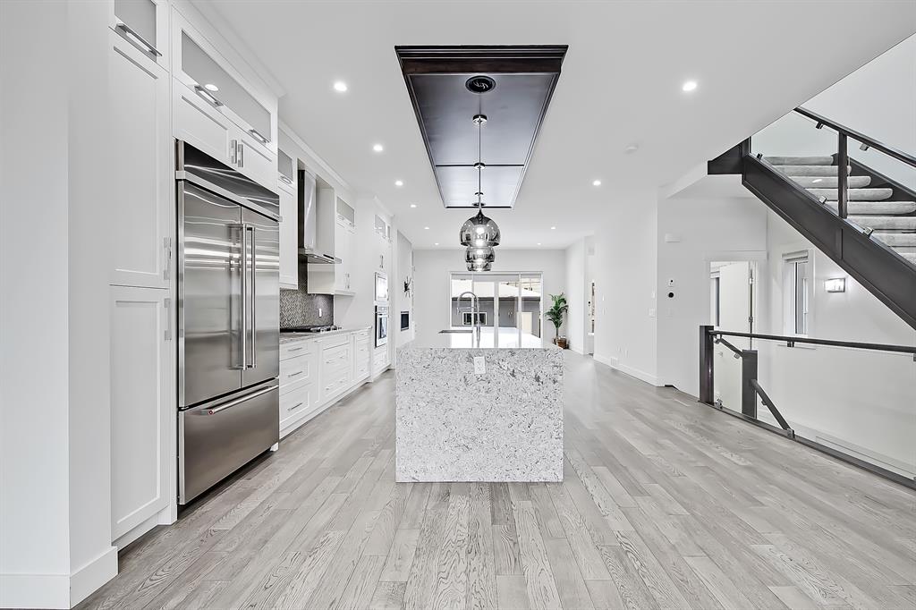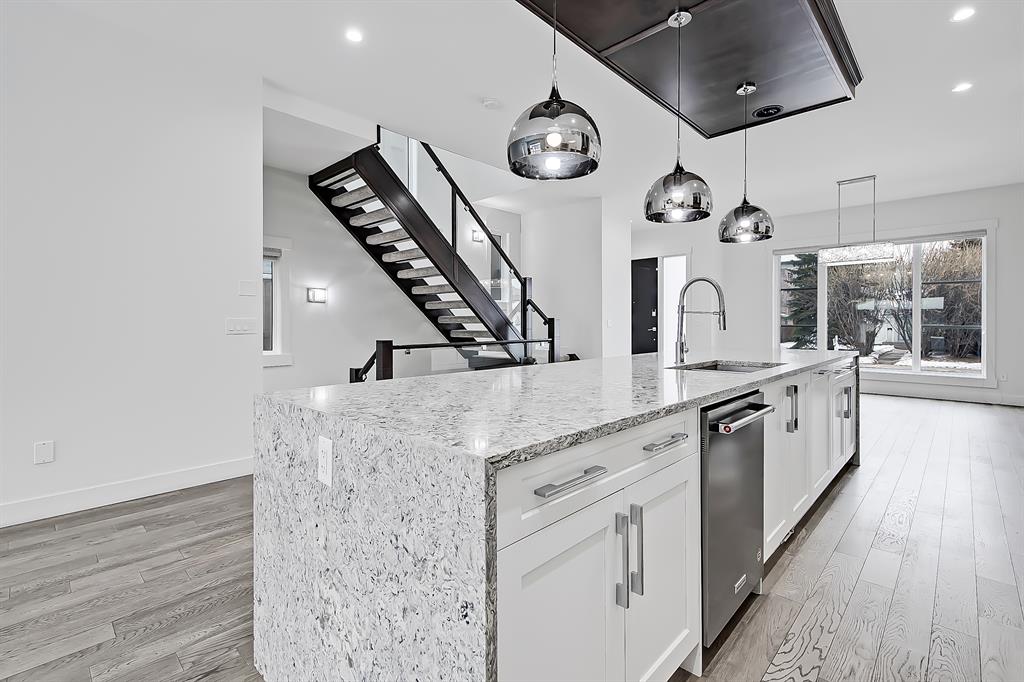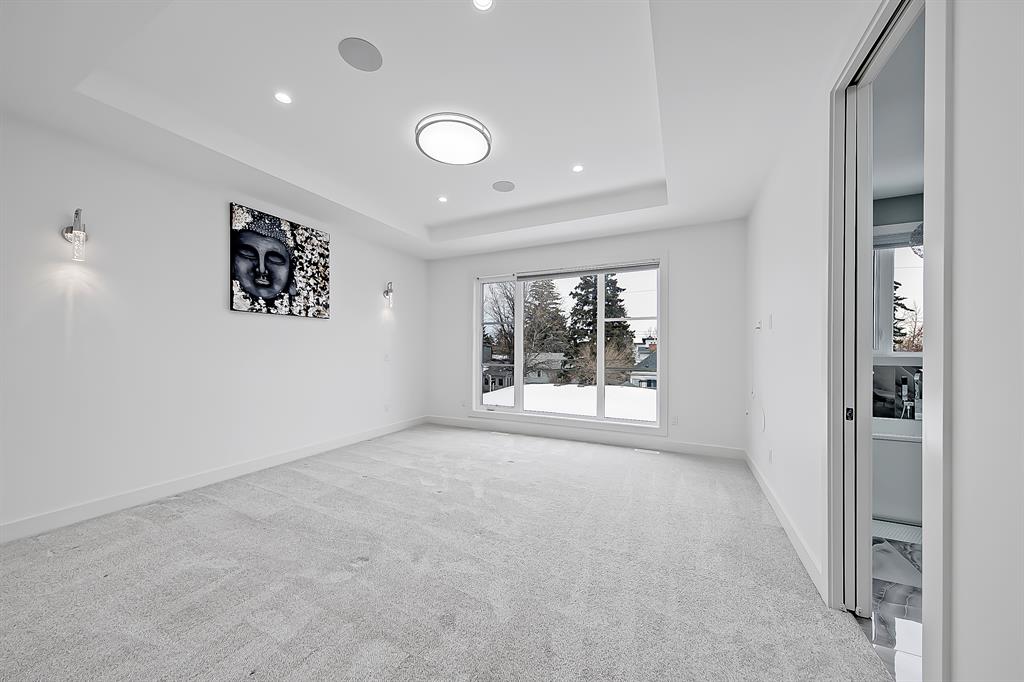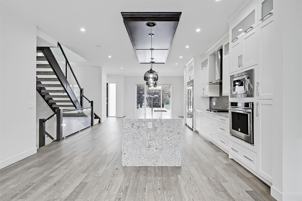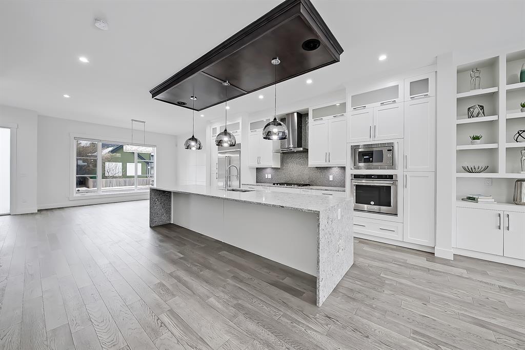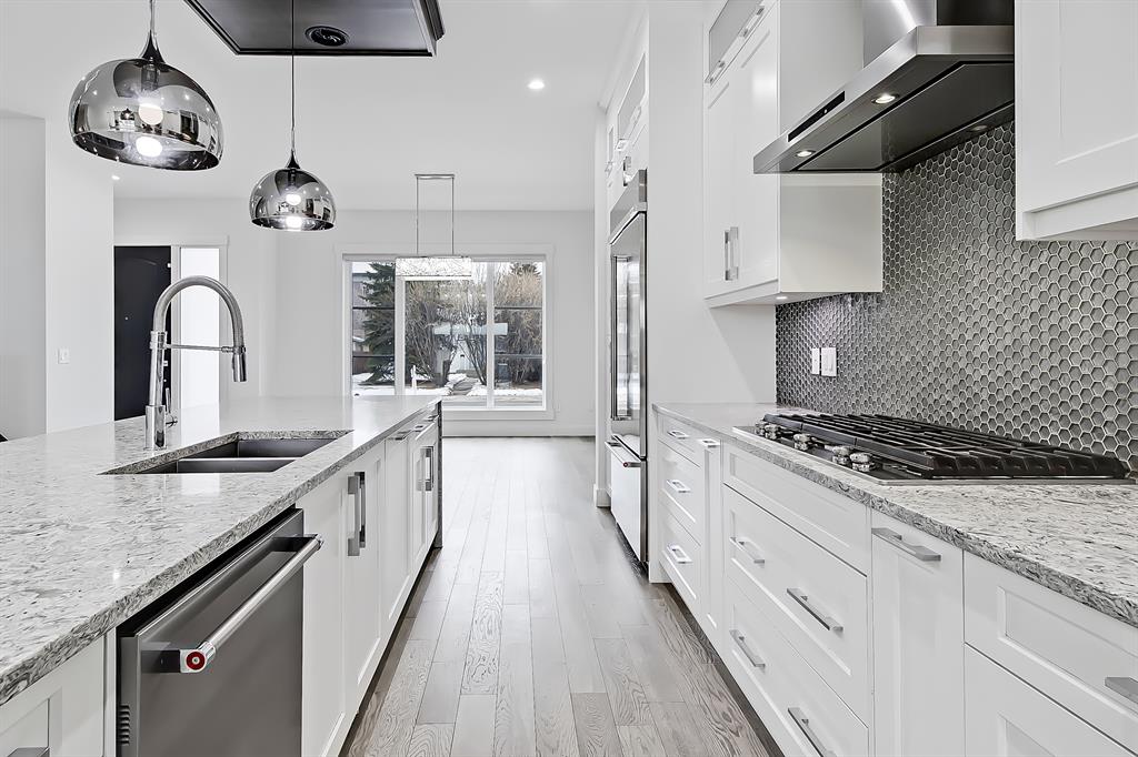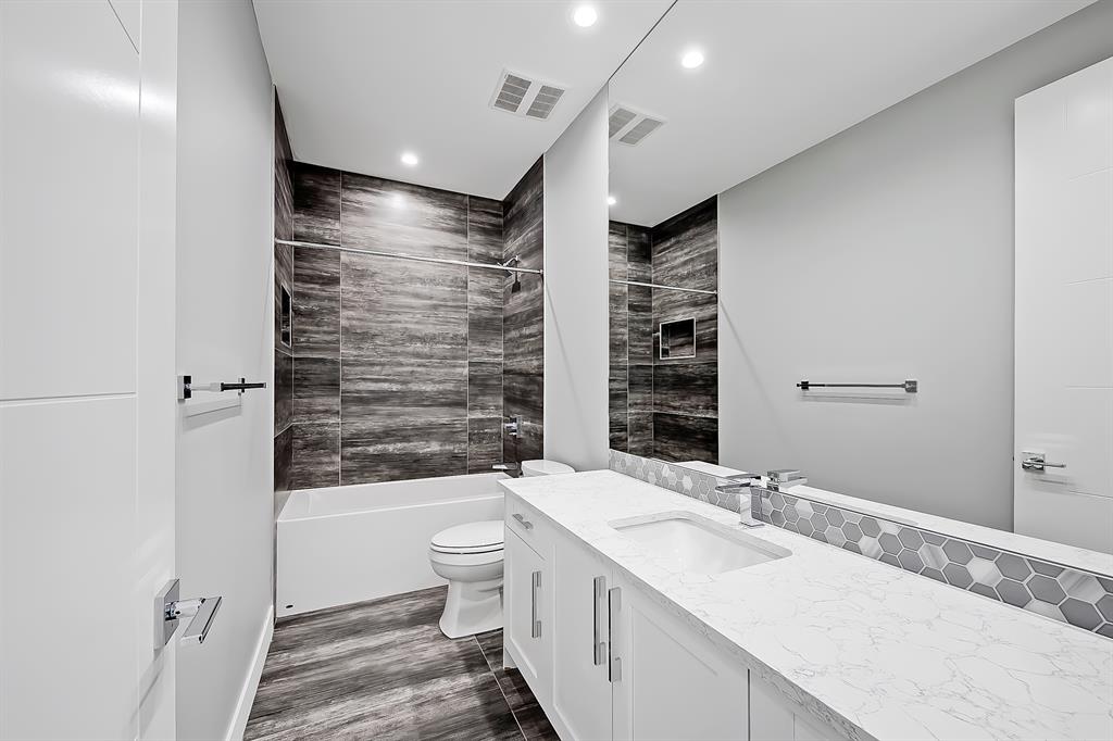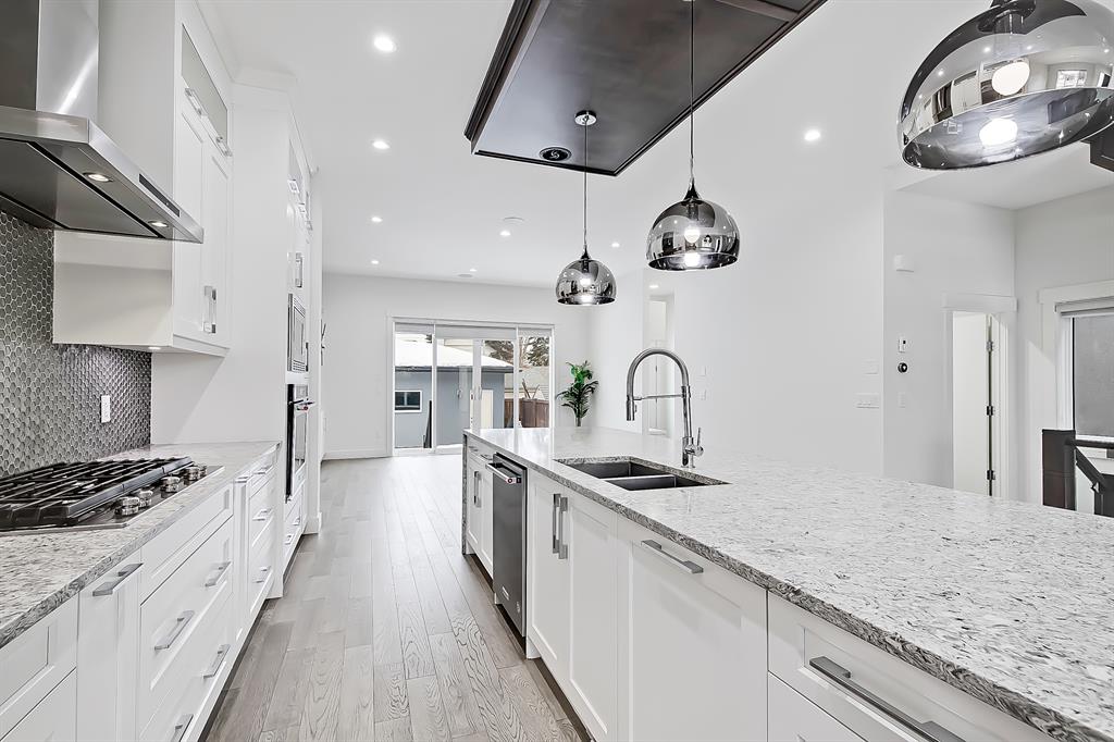 MOVE IN TODAY! This modern infill sits on a large 28×125 deep lot in TUXEDO PARK and has no detail overlooked! With over 3116 SQFT of developed space your family will fall in love w/ the floorplan and features throughout! The design and layout are what you expect from a new infill, w/ added touches that make this home feel even more spacious. The main floor has beautiful oak hardwood floors that span the entire level, 10FT CEILINGS , a bright foyer w/ a built-in closet, and an elegant dining room with a stunning feature wall. The showstopper is the chef-inspired kitchen, w/ high end stainless steel appliance package, ceiling height shaker cabinetry, dual pull out spice racks, dual pantries, a modern hexagon tile backsplash, and an extra-wide island w/ a waterfall countertop and bar seating for 6! Complementing the modern, upscale feel is the large living room w/ a gas fireplace w/ full-height tile surround, built-in millwork, and 8’ dual sliding glass doors into the backyard. The rear mudroom has a bench with hooks and lower cubbies for storage, and the chic powder room is nicely tucked away and features a full-height mirror and large vanity. Custom designer touches continue as you head up the open riser stairs w/ a glass railing & 3 large windows. The elegant primary suite features a tray ceiling, large window, a massive walk-in closet w/ built-in drawers and shelving, and a spa-like 5-pc ensuite w/ custom shower w/ built-in bench & steamer, soaker tub, double vanity, and heated tile floors. Two secondary bedrooms feature large windows, custom closets, and share use of the 4-pc bathroom. The upper floor also has a convenient laundry room w/ a sink, upper cabinets, a folding counter and large linen closet. The living space continues into the 957 sq ft FULLY DEVELOPED BASEMENT w/ enormous rec room featuring a wet bar w/ open wine storage, lots of cabinetry, designer backsplash, and beverage /wine fridge. A fourth bedroom w/ large walk-in closet, and 4-pc bath make the space ideal for guests or an older teen, and there is even enough room for a small workstation in the hallway. Tuxedo Park is a lovely family community w/ lots of new developments, making the area an excellent choice for young families or professionals looking for a convenient location to fit into their lifestyle. Local amenities include Lina’s Italian Market & Café, Rosso Coffee Roasters, and Unimarket. There are many other options a short walk, bike, or drive along 16th Ave or down Edmonton Trail, which will also take you over to Deerfoot, Crowchild, or downtown for a quick commute. This home and neighbourhood is the perfect place to call home!