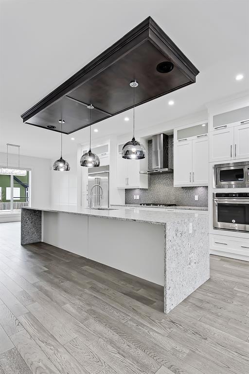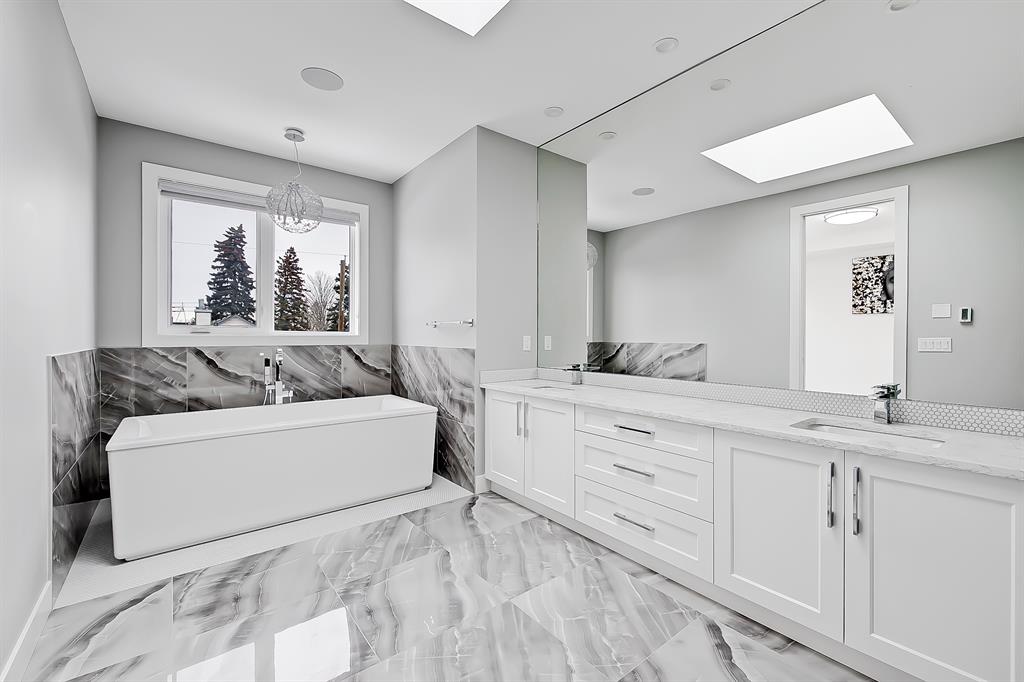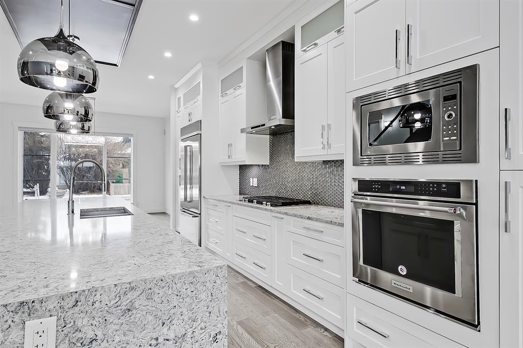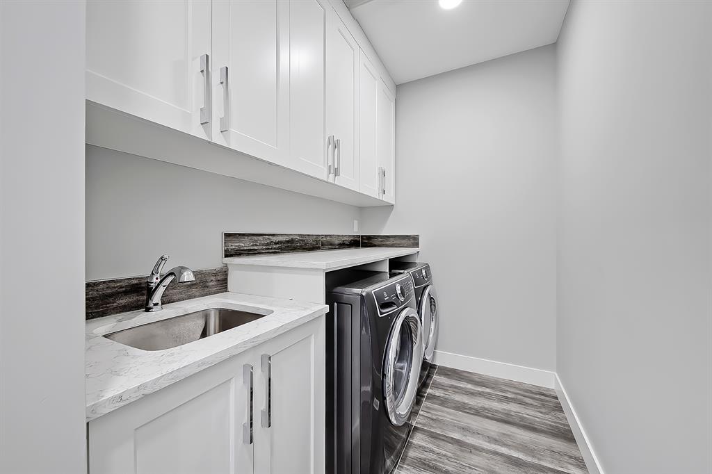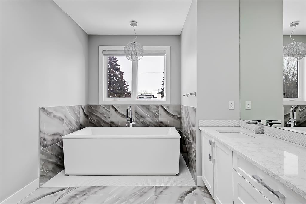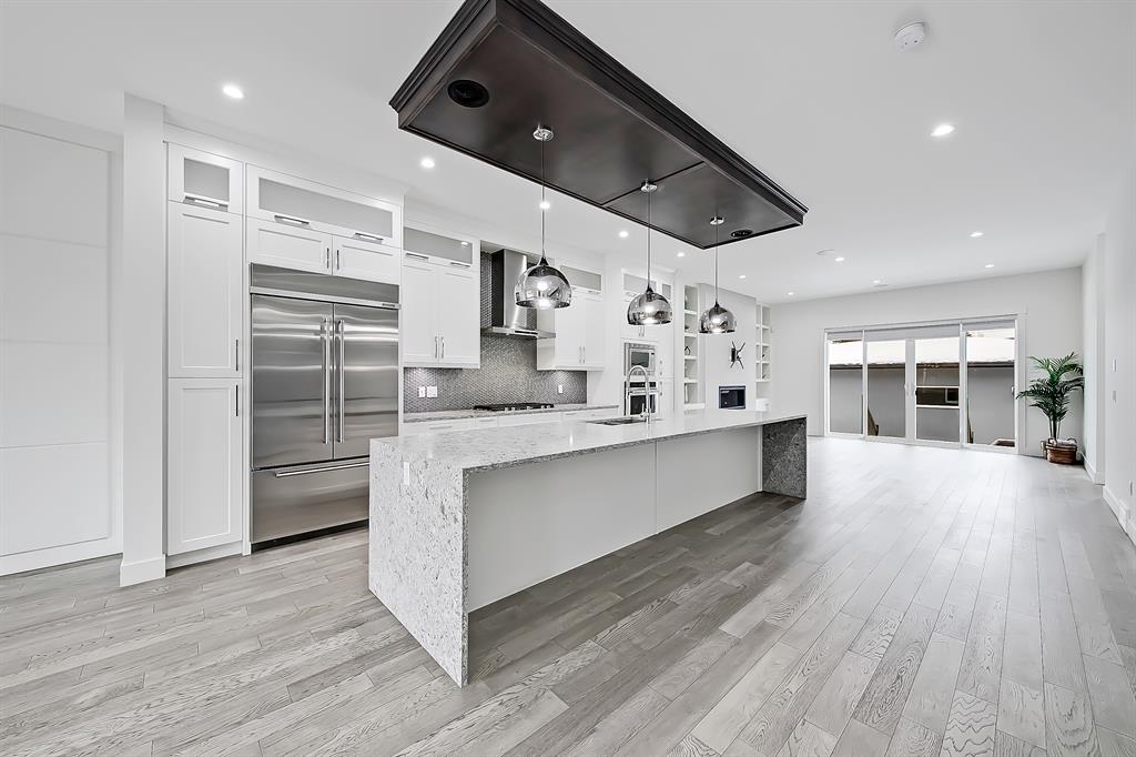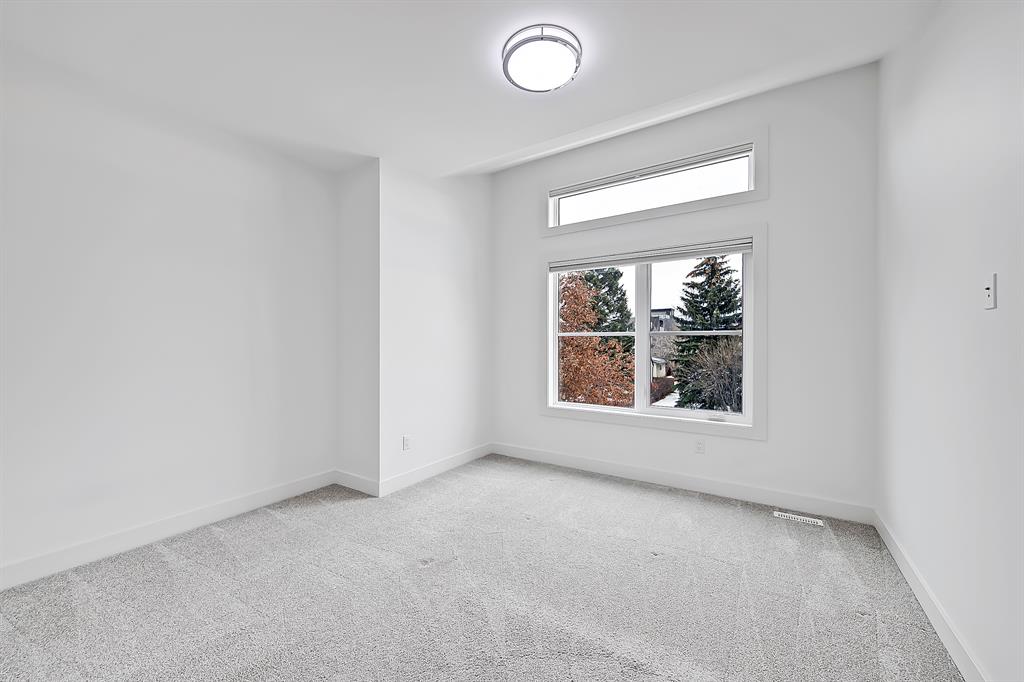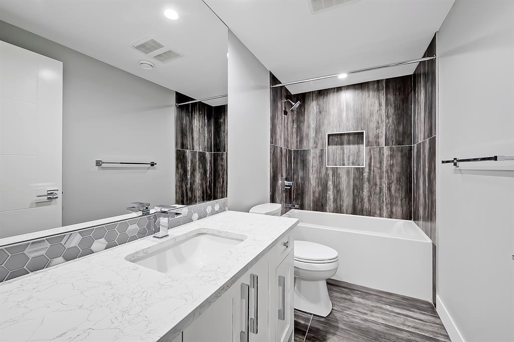 MOVE IN TODAY! This modern infill sits on a large 28×125 deep lot in TUXEDO PARK and has no detail overlooked! With over 3116 SQFT of developed space your family will fall in love w/ the floorplan and features throughout! The design and layout are what you expect from a new infill, w/ added touches that make this home feel even more spacious. The main floor has beautiful oak hardwood floors that span the entire level, 10FT CEILINGS , a bright foyer w/ a built-in closet, and an elegant dining room with a stunning feature wall. The showstopper is the chef-inspired kitchen, w/ high end stainless steel appliance package, ceiling height shaker cabinetry, dual pull out spice racks, dual pantries, a modern hexagon tile backsplash, and an extra-wide island w/ a waterfall countertop and bar seating for 6! Complementing the modern, upscale feel is the large living room w/ a gas fireplace w/ full-height tile surround, built-in millwork, and 8’ dual sliding glass doors into the backyard. The rear mudroom has a bench with hooks and lower cubbies for storage, and the chic powder room is nicely tucked away and features a full-height mirror and large vanity. Custom designer touches continue as you head up the open riser stairs w/ a glass railing & 3 large windows. The elegant primary suite features a tray ceiling, large window, a massive walk-in closet w/ built-in drawers and shelving, and a spa-like 5-pc ensuite w/ custom shower w/ built-in bench & steamer, soaker tub, double vanity, and heated tile floors. Two secondary bedrooms feature large windows, custom closets, and share use of the 4-pc bathroom. The upper floor also has a convenient laundry room w/ a sink, upper cabinets, a folding counter and large linen closet. The living space continues into the 957 sq ft FULLY DEVELOPED BASEMENT w/ enormous rec room featuring a wet bar w/ open wine storage, lots of cabinetry, designer backsplash, and beverage /wine fridge. A fourth bedroom w/ large walk-in closet, and 4-pc bath make the space ideal for guests or an older teen, and there is even enough room for a small workstation in the hallway. Tuxedo Park is a lovely family community w/ lots of new developments, making the area an excellent choice for young families or professionals looking for a convenient location to fit into their lifestyle. Local amenities include Lina’s Italian Market & Café, Rosso Coffee Roasters, and Unimarket. There are many other options a short walk, bike, or drive along 16th Ave or down Edmonton Trail, which will also take you over to Deerfoot, Crowchild, or downtown for a quick commute. This home and neighbourhood is the perfect place to call home!