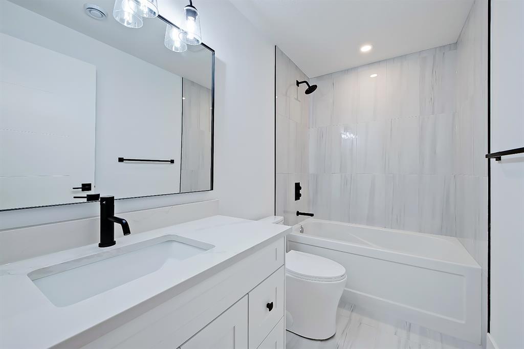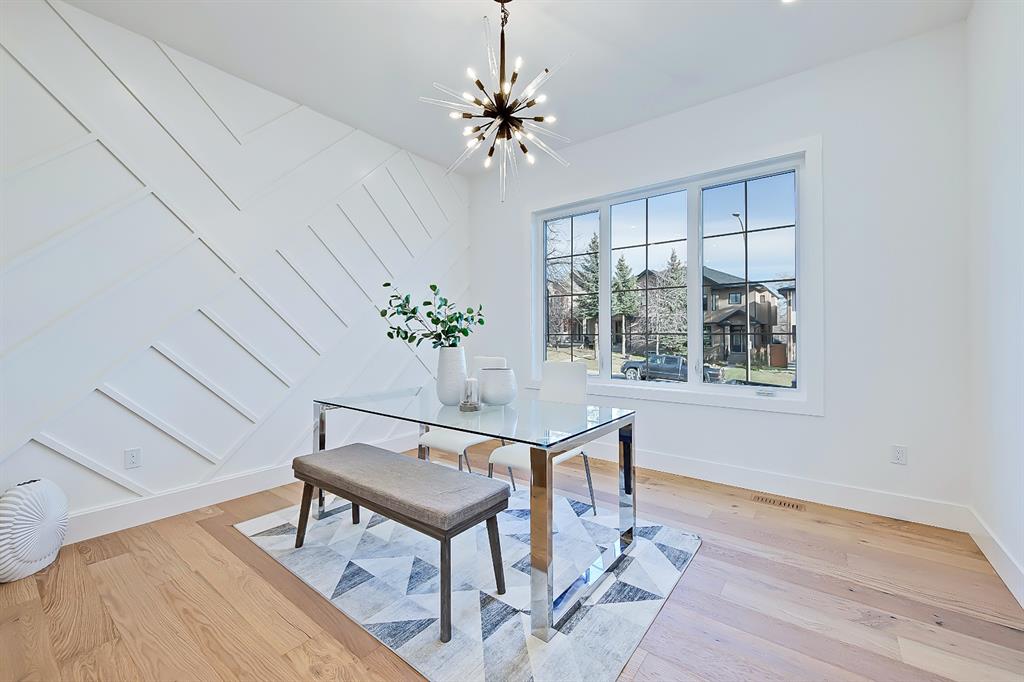 MOVE IN BY FEBRUARY 2023 | 2,900+ SQ FT LIVING SPACE | 10-FT CEILINGS ON MAIN FLOOR | VAULTED MASTER W/ COFFEE BAR | DEVELOPED BASEMENT W/ HOME GYM + WET BAR | DECORATIVE FEATURE WALLS THROUGHOUT | Bright, spacious, and modern – the perfect words to describe your new 2-storey semi-detached infill in BANFF TRAIL! Banff Trail is an up-and-coming infill community with a good mix of nature and culture. With various amenities nearby and proximity to downtown, Banff Trail LRT Station, and Crowchild Trail, everyday shopping and trips to the store are convenient and easy. Your home is also within walking distance to William Aberhart High School, Banff Trail School, West Confederation Park, the University of Calgary, McMahon Stadium, and more – ideal for your active, social family. Your first step into the house greets you with a spacious foyer with a decorative feature wall and views into the open concept main floor with 10-ft ceilings. Glass railings along the stairwell allow the South-facing dining room windows to fill the entire home with sunlight. The central kitchen is just as stunning: quartz countertops, ceiling-height cabinetry with under cabinet lighting, and an oversized 13-ft island. The high-end appliance package also doesn’t disappoint with premium stainless steel appliances. Stepping into the rear living room, an inset gas fireplace with custom tile surround and built-in millwork draws your eye. 8-ft glass sliding doors take you out to the back deck for BBQ season and summer parties, while the tiled mudroom keeps your family organized in the built-in closet with custom millwork, bench, hooks, and custom shoe display. A beautiful skylight greets you on the upper level before heading into the luxurious primary suite. Enjoy vaulted ceilings, wall sconce lighting, dual walk-in closets, built-in ceiling speakers, and a CUSTOM COFFEE BAR complete w/ quartz counter, upper and lower cabinetry, sink, and space for a beverage fridge. The spa-like ensuite is just as luxurious, with heated tile floors, dual under-mount sinks, quartz counters, a free-standing soaker tub, oversized shower w/ glass door, full-height tile detailing, handheld shower heads, and rain shower head! The two secondary bedrooms each have built-in closets w/ custom millwork and share the main 5-pc Jack and Jill style bathroom w/ dual sinks and a private tub/shower with tile surround. The laundry room features a sink, tile floors, quartz counter, upper and lower cabinetry, and hanging rod. Downstairs, the large rec room has a separate game area space and enjoys spindle railings for an open and airy atmosphere. A full wet bar sits adjacent to the dedicated home gym or office space perfect for intense workouts or productive days. A fourth bedroom with a walk-in closet and a 4-pc bath round off this space. THE FEATURES IN THIS HOME ARE ENDLESS; CHECK OUT THE FULL SPECIFICATIONS AND FLOOR PLANS FOR AN IN-DEPTH LOOK! **Photos are from a similar project, finishes may vary.**