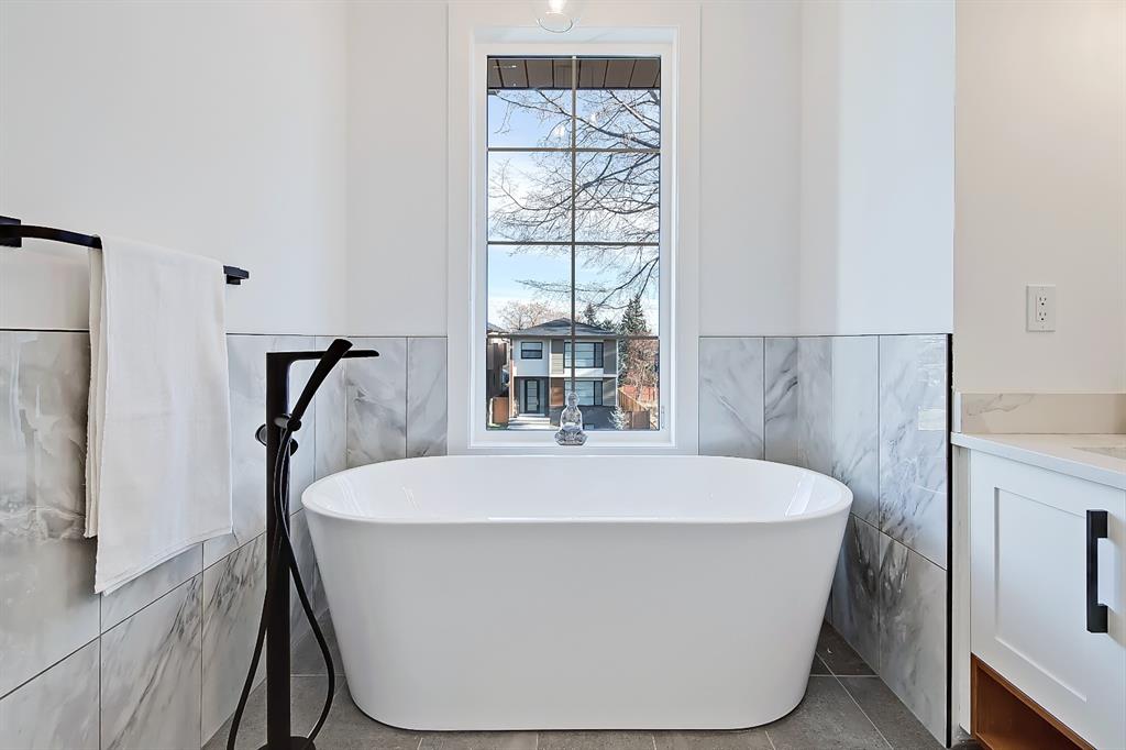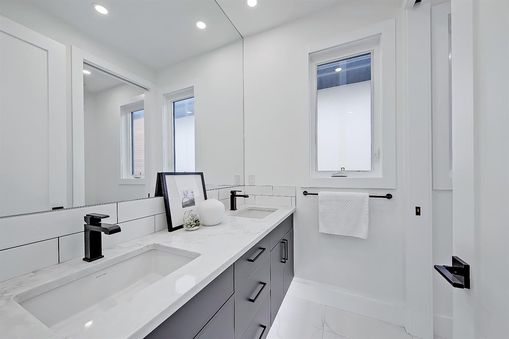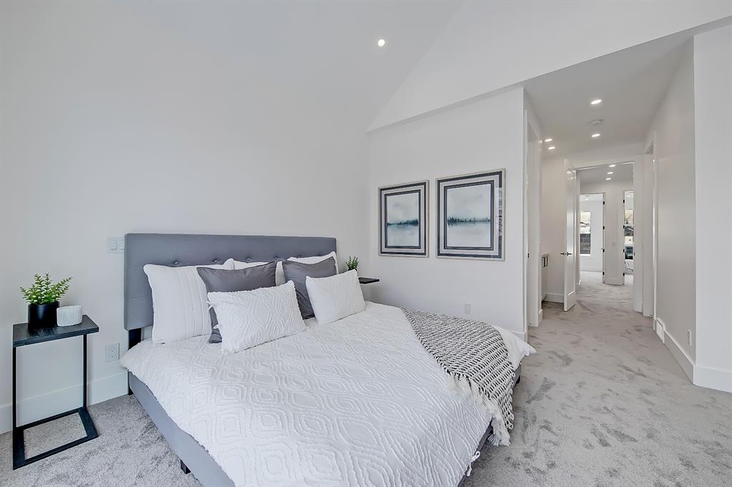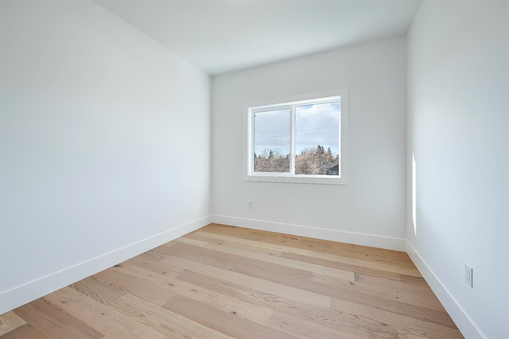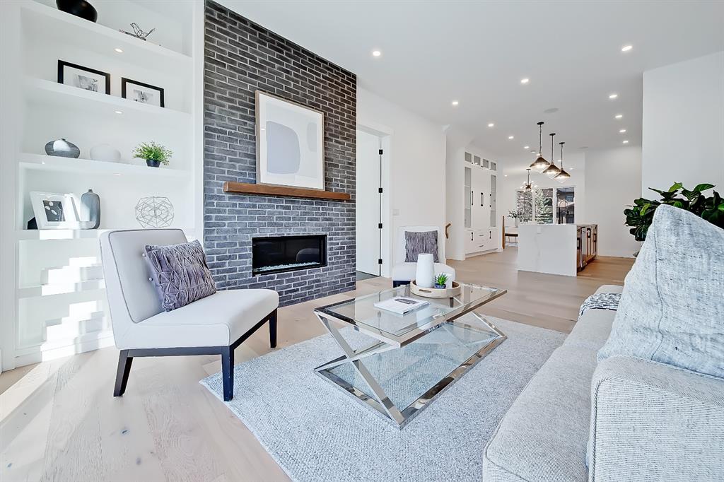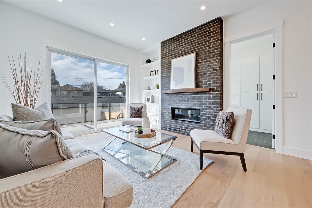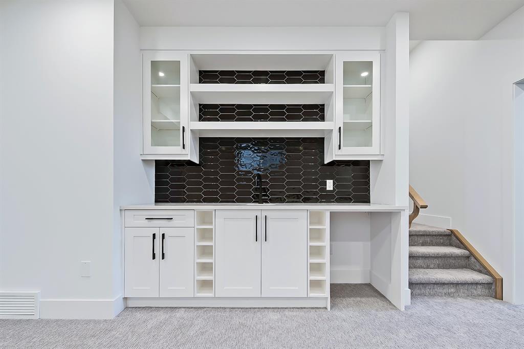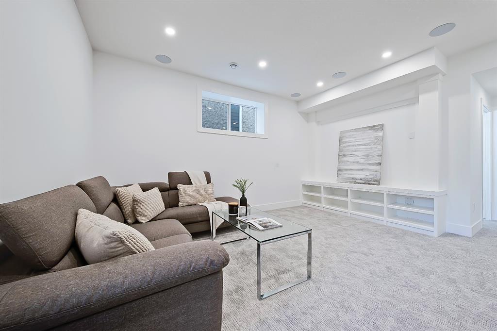 2,900+ SQ FT LIVING SPACE | 10-FT CEILINGS ON MAIN FLOOR | VAULTED MASTER W/ COFFEE BAR | DEVELOPED BASEMENT W/ HOME GYM + WET BAR | DECORATIVE FEATURE WALLS THROUGHOUT | Bright, spacious, and modern – the perfect words to describe your new 2-storey semi-detached infill in BANFF TRAIL! Banff Trail is an up-and-coming infill community with a good mix of nature and culture. With various amenities nearby and proximity to downtown, Banff Trail LRT Station, and Crowchild Trail, everyday shopping and trips to the store are convenient and easy. Your home is also within walking distance to William Aberhart High School, Banff Trail School, West Confederation Park, the University of Calgary, McMahon Stadium, and more – ideal for your active, social family. Your first step into the house greets you with a spacious foyer with a decorative feature wall and views into the open concept main floor with 10-ft ceilings. Glass railings along the stairwell allow the South-facing dining room windows to fill the entire home with sunlight. The central kitchen is just as stunning: quartz countertops, ceiling-height cabinetry with under cabinet lighting, and an oversized 13-ft island. The high-end appliance package also doesn’t disappoint with premium stainless steel appliances. Stepping into the rear living room, an inset gas fireplace with custom tile surround and built-in millwork draws your eye. 8-ft glass sliding doors take you out to the back deck for BBQ season and summer parties, while the tiled mudroom keeps your family organized in the built-in closet with custom millwork, bench, hooks, and custom shoe display. A beautiful skylight greets you on the upper level before heading into the luxurious primary suite. Enjoy vaulted ceilings, wall sconce lighting, dual walk-in closets, built-in ceiling speakers, and a CUSTOM COFFEE BAR complete w/ quartz counter, upper and lower cabinetry, sink, and space for a beverage fridge. The spa-like ensuite is just as luxurious, with heated tile floors, dual under-mount sinks, quartz counters, a free-standing soaker tub, oversized shower w/ glass door, full-height tile detailing, handheld shower heads, and rain shower head! The two secondary bedrooms each have built-in closets w/ custom millwork and share the main 5-pc Jack and Jill style bathroom w/ dual sinks and a private tub/shower with tile surround. The laundry room features a sink, tile floors, quartz counter, upper and lower cabinetry, and hanging rod. Downstairs, the large rec room has a separate game area space and enjoys spindle railings for an open and airy atmosphere. A full wet bar sits adjacent to the dedicated home gym or office space perfect for intense workouts or productive days. A fourth bedroom with a walk-in closet and a 4-pc bath round off this space. THE FEATURES IN THIS HOME ARE ENDLESS; CHECK OUT THE FULL SPECIFICATIONS AND FLOOR PLANS FOR AN IN-DEPTH LOOK! **Photos are from a similar project, finishes may vary.**