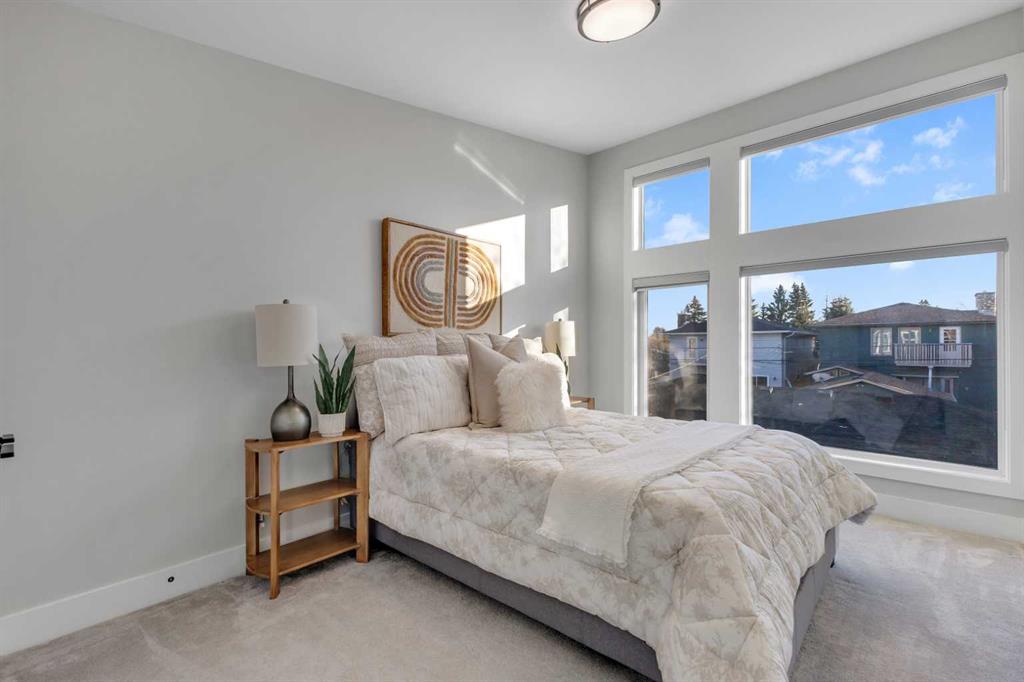Sophisticated and thoughtful, this modern infill in BANFF TRAIL faces a GREEN SPACE and delivers everyday function wrapped in elevated style. With over 2,700 sq. ft. of living space, four bedrooms, a fully finished basement, and a double garage, it’s a home that balances upscale design with everyday practicality – ideal for busy professionals and growing families alike. Step inside and you’ll feel an immediate sense of light and space. The open main floor was made for both living and entertaining, blending clean lines with warm finishes that make the home feel grounded and welcoming. The front foyer opens into a bright front dining area that sits perfectly under a designer light fixture with wide windows that fill the room with sunlight. At the center, the kitchen takes the spotlight with its oversized island, full-height cabinetry, quartz countertops, and gas range. Every detail feels intentional – from the sleek subway backsplash to the deep drawers for storage. It’s a kitchen that works as hard as it looks good. Beyond the island, the living area brings everyone together with a feature fireplace framed by built-in shelving and oversized windows overlooking the backyard, with a high tray ceiling with built-in LED lighting for added ambience. The atmosphere is equal parts polished and comfortable, creating the kind of space where kids can play while the adults unwind. The rear mudroom adds real-life practicality with custom built-ins, hooks, and exterior access to the backyard and garage – keeping everything organized and out of sight. A discreet powder room sits off the hallway, rounding out the main floor. Upstairs, the layout keeps family life in mind. The primary suite spans the front of the home, creating a private retreat with soft light, a walk-in closet, and a spa-like ensuite featuring a freestanding soaker tub, dual vanities, and a glass-enclosed shower. Two additional bedrooms are bright and generous in size, each with good closet space. The upstairs laundry room makes day-to-day living simple, with lots of storage options and laundry sink. Downstairs extends the home’s versatility even further. A large rec room with built-in media centre and full wet bar offers the perfect setup for movie nights, weekend entertaining, or a play space that can evolve as kids grow. There’s also a fourth bedroom and full bathroom, ideal for guests, teenagers, or a quiet home office. Set in the heart of Banff Trail, this home sits in one of Calgary’s most connected inner-city communities. Families love the quick walk to schools, green spaces, and community parks, while professionals appreciate the easy access to the UofC, McMahon Stadium, Foothills Medical Centre, and SAIT. The Banff Trail LRT station is just minutes away, offering a quick train ride to downtown or the university. The neighbourhood’s quiet, tree-lined streets and established charm create a sense of calm right in the city, perfect for those who want space for family life without giving up convenience.