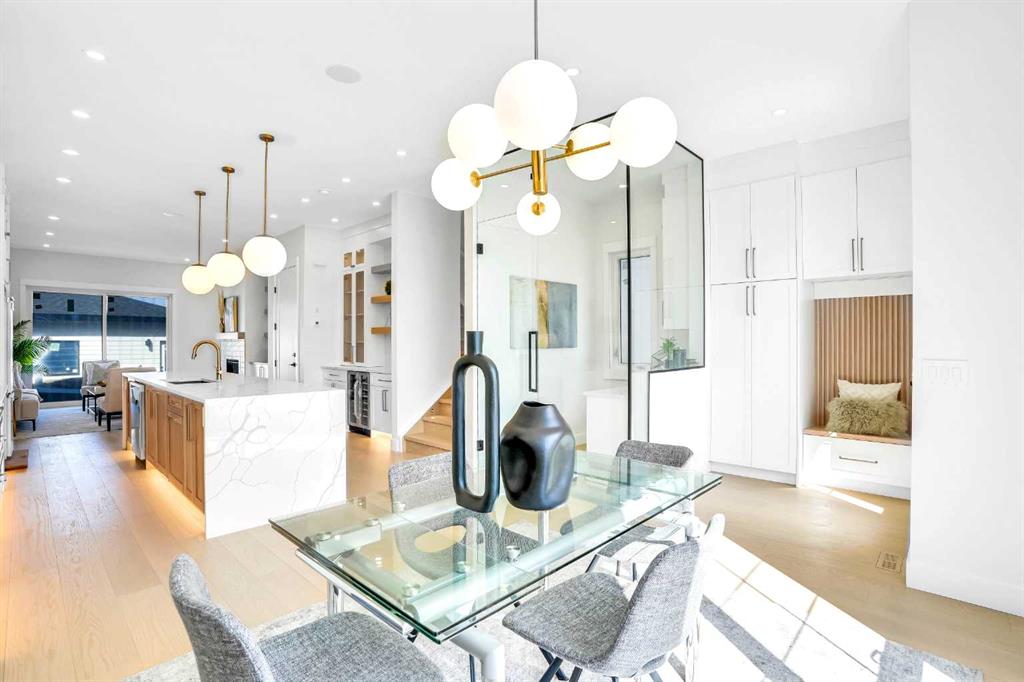Nestled in the vibrant inner-city community of TUXEDO PARK, this stunning SEMI-DETACHED INFILL offers an exceptional blend of modern luxury, smart design, and everyday functionality. With spacious living areas above grade plus a fully finished LEGAL 2-BED BASEMENT SUITE (subject to permits & approvals by the city), this home is perfect for families, professionals, or savvy investors looking for rental income potential! Thoughtfully designed with high-end finishes, open-concept living, and incredible convenience, this home is just minutes from Calgary’s downtown core, schools, shopping, and green spaces! From the moment you step inside, you’re welcomed by a BRIGHT AND AIRY FOYER with soaring ceilings and sleek finishes. A MAIN FLOOR OFFICE with built-in desk provides a dedicated workspace, while the heart of the home—the open-concept kitchen, dining, and living area—boasts 10-FOOT CEILINGS and oversized windows that flood the space with natural light. The chef’s kitchen is an entertainer’s dream, featuring a LARGE KITCHEN ISLAND with doubled sided waterfall quartz countertops, a BUILT-IN PANTRY, and high-end appliances. A stylish gas fireplace with custom built-ins anchors the living room, and sliding doors lead to the private backyard, perfect for summer BBQs or quiet evenings outdoors. A rear mudroom gives your family lots of storage options with a bench with hooks and built-in coat closet, and a designer powder room is tucked away for convenience. Upstairs, the primary retreat is a luxurious sanctuary with vaulted ceiling, a SPA-INSPIRED ENSUITE featuring a freestanding soaker tub, an oversized glass-enclosed shower, dual vanities, and a spacious WALK-IN CLOSET. Two additional bedrooms offer plenty of space for family or guests, while a full bath and a convenient laundry room add to the home’s practicality. A BONUS ROOM at the top of the stairs provides additional flexible space – ideal for a playroom, reading area, or home workspace, especially with the addition of a second desk built into the space! The fully developed legal 2-bed lower suite (subject to permits & approvals by the city) is a game-changer. Designed for maximum comfort and style, it features its own private entrance, an OPEN-CONCEPT LIVING AREA, a sleek modern kitchen with a FULL-SIZED ISLAND, two well-sized bedrooms, and a full bath. Whether used as a mortgage helper, rental property, or in-law suite, this space is a huge asset! Located in one of Calgary’s most sought-after communities, TUXEDO PARK is known for its tree-lined streets, charming character, and easy access to major routes like Centre St, Edmonton Trail, and 16th Ave. Enjoy a short commute downtown, or take advantage of the many local amenities, including CONFEDERATION PARK, which offers walking trails, picnic areas, and a golf course. Top-rated schools, trendy cafes, restaurants, and shopping are all within minutes, making this an ideal location for those who love inner-city living with a family-friendly feel.