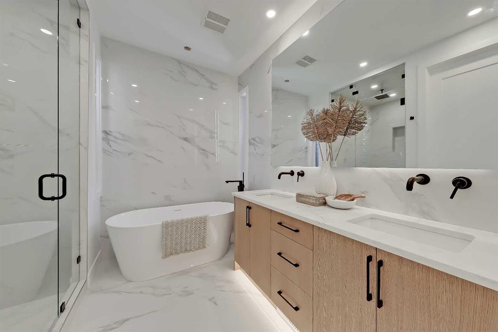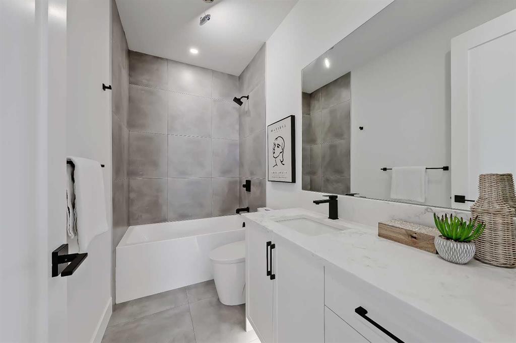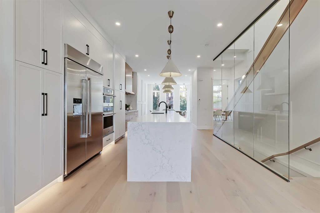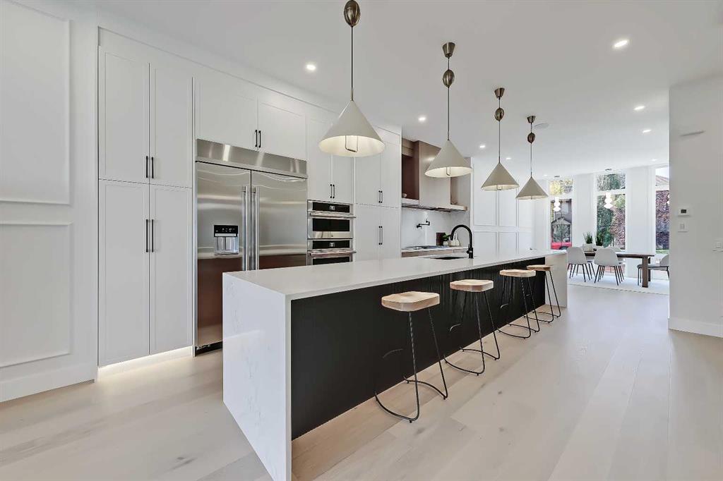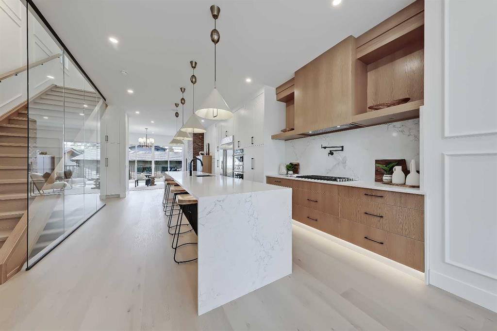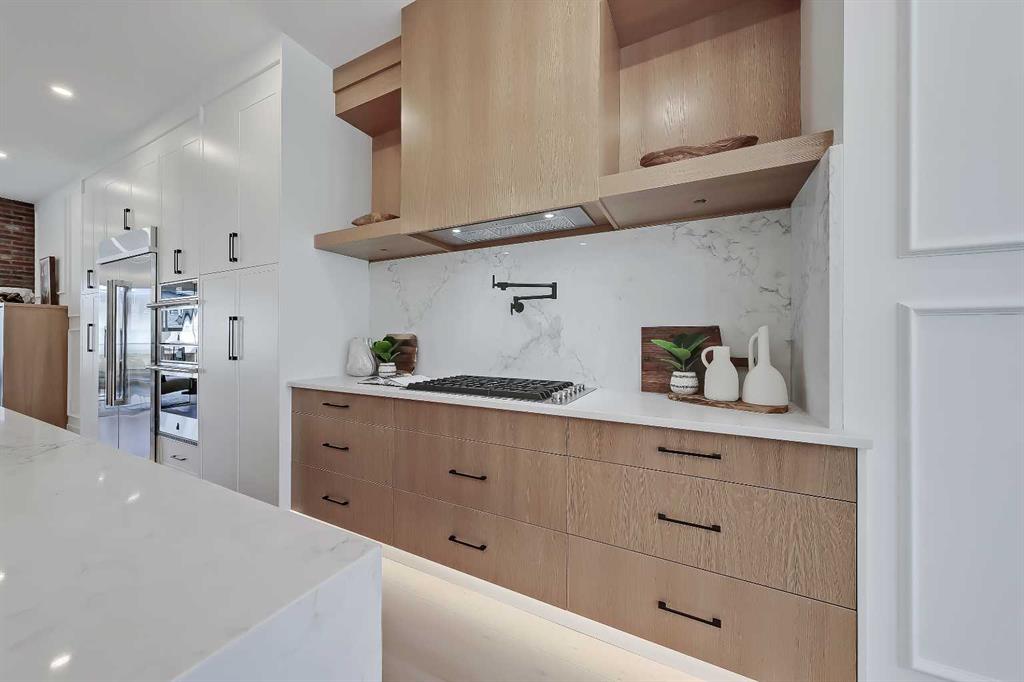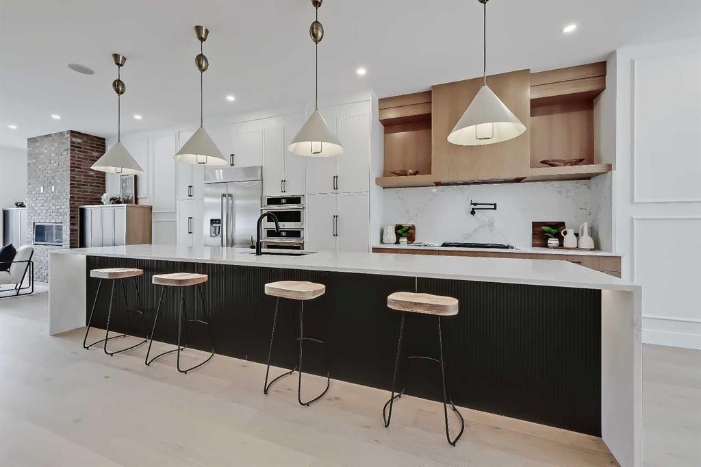 The timeless NEW YORK-INSPIRED BRICK HOME you’ve been waiting for! This brand-new DETACHED INFILL from Moon Homes has no detail overlooked across 2,690 sq ft of developed living space. Highlights include motion-activated LED lighting, bright oversized windows, panel moulding across all floors, and a smart home mobile app-controlled lights and heating system! Killarney is the ideal location for young families who want to be close to parks, schools, & local amenities, including Inglewood Pizza, Luke’s Drug Mart, & Franco’s Café, plus within walking distance to the LRT. The neighbourhood is a short drive to the downtown core, easily accessible along Bow Trail or 17 Ave, & a quick walk to the Killarney Aquatic Centre & community garden. Each inch of the home is uniquely designed to utilize the space expertly while adding the modern, upscale touches you expect. The main floor has engineered oak hardwood floors and 10-ft ceilings, a spacious foyer, and an upscale dedicated dining space w/ ceiling-height panelled windows. The show-stopping chef-inspired kitchen is welcoming and spacious, w/ a complete JENN-AIR appliance package, a pot filler, ceiling-height shaker-style cabinetry w/ recessed decorative oak niches w/ built-in LED lighting, and an oversized island w/ dual waterfall edges! Complementing the home’s timeless feel is the large living room w/ gas fireplace showcasing a ceiling-height brick surround w/ black built-in cabinetry on either side. Step outside to the back deck through a dual sliding glass patio door for the ultimate entertainment experience. The contemporary powder room is nicely tucked away off the kitchen and features a soaring ceiling, motion-activated LED lighting, designer pendant light, vessel sink, and floating quartz countertop! Custom designer touches continue up the staircase w/ glass wall and panel moulding and into the gorgeous primary suite. The suite features oversized ceiling-height panelled windows, pendant lights, a seating area, a massive walk-in closet w/ extensive built-in millwork and LED lighting, and a spa-like 5-pc ensuite with built-in bench, soaker tub, and double vanity w/ oak cabinetry. The two secondary bedrooms feature large walk-in closets and share the main 4-pc bathroom w/ quartz vanity and tub/shower combo w/ full-height tile surround. The upper floor also has a convenient laundry room w/ a sink, tile backsplash, cabinetry, and folding counter. The living space continues into the basement w/ rec room w/ built-in media centre, full wet bar w/ beverage fridge, sink, full-height tile backsplash, and open display shelving, plus a dedicated gym space, a fourth bedroom, and a 4-pc bath – perfect for guests or older kids. Outside, enjoy warm summer days on the large front concrete patio, or entertain into the evenings out back on the deck w/ a gas line for a BBQ. However you decide to use the space, there’s one thing for sure – this New York-inspired brownstone will quickly be a house you’ll love to call home!