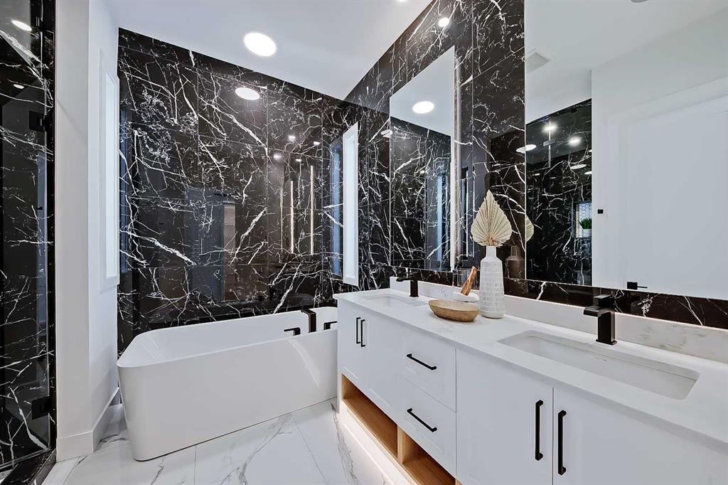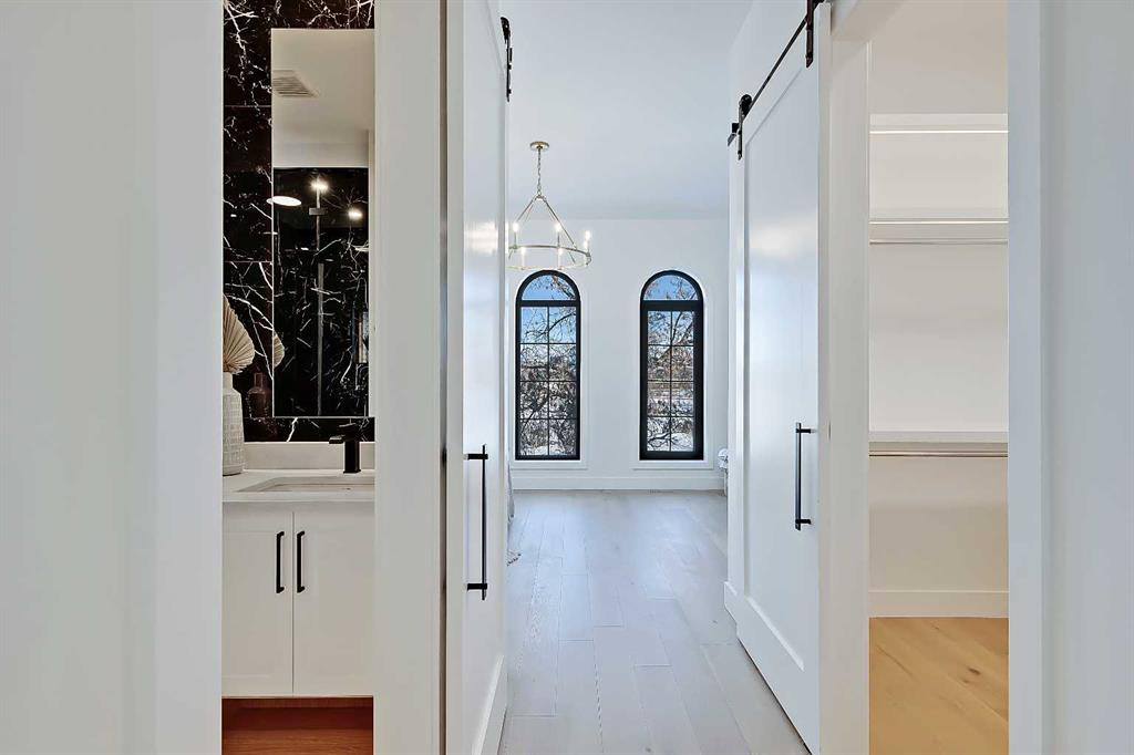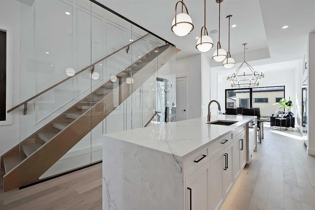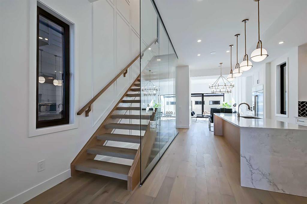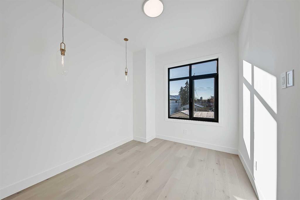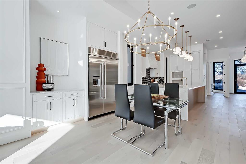 The timeless NEW YORK-INSPIRED BRICK HOME you’ve been waiting for…in KILLARNEY! This brand-new 4-BED DETACHED infill from Moon Homes has no detail overlooked. Highlights include motion-activated LED lighting in all bathrooms, oversized windows throughout, panel moulding across all floors, & smart home mobile app-controlled lights & heating system! Killarney is the ideal location for young families who want to be close to parks, schools, & local amenities, including Inglewood Pizza, Luke’s Drug Mart, & Franco’s Café, plus within walking distance to the LRT. The neighbourhood is a short drive to the downtown core, easily accessible along Bow Trail or 17 Ave, & a quick walk to the Killarney Aquatic Centre & community garden. Each inch of the home is uniquely designed to utilize the space expertly while adding the modern, upscale touches you expect from a new infill. The main floor has engineered oak hardwood floors and 10-ft ceilings, a spacious, bright foyer and views into the bright & upscale dedicated dining space w/ ceiling-height panelled windows. The show-stopping chef-inspired kitchen is welcoming and spacious, w/ a complete JENN-AIR stainless steel appliance package, ceiling-height shaker-style cabinetry with recessed decorative white oak niches w/ built-in LED lighting, and an oversized island w/ dual waterfall edges! Complementing the modern, upscale feel is the large living room w/ a gas fireplace showcasing a ceiling-height brick surround. Step outside to the oversized concrete patio through an extra-large glass patio door for the ultimate entertainment experience. The contemporary powder room is nicely tucked away off the kitchen, perfect for guests or clients, and features a soaring ceiling, full-height mirror, & motion-activated LED lighting. Custom designer touches continue upstairs and into the gorgeous primary suite. The suite features three oversized ceiling-height panelled windows, dual pendant lights w/ individual controls, a massive walk-in closet w/ extensive built-in millwork, and a spa-like 5-pc ensuite w/ custom steam shower w/ built-in bench, soaker tub, and double vanity w/ oak details. The two secondary bedrooms feature large walk-in closets and share the main 5-pc bathroom w/ dual sinks and tub/shower combo w/ full-height tile surround. The upper floor also has a convenient laundry room w/ a sink, subway tile backsplash, cabinetry, and folding counter. The living space continues into the FULLY DEVELOPED BASEMENT w/ rec room, dedicated gym space, a fourth bedroom, and a 4-pc bath – perfect for guests or older kids. Outside, the full brick exterior offers heightened curb appeal and a grand welcome for all your guests. Enjoy warm summer days on the large front concrete patio, or entertain into the evenings out back on the deck w/ a gas line for a BBQ. Don’t wait! Let’s get you choosing your finishes in your new home today!