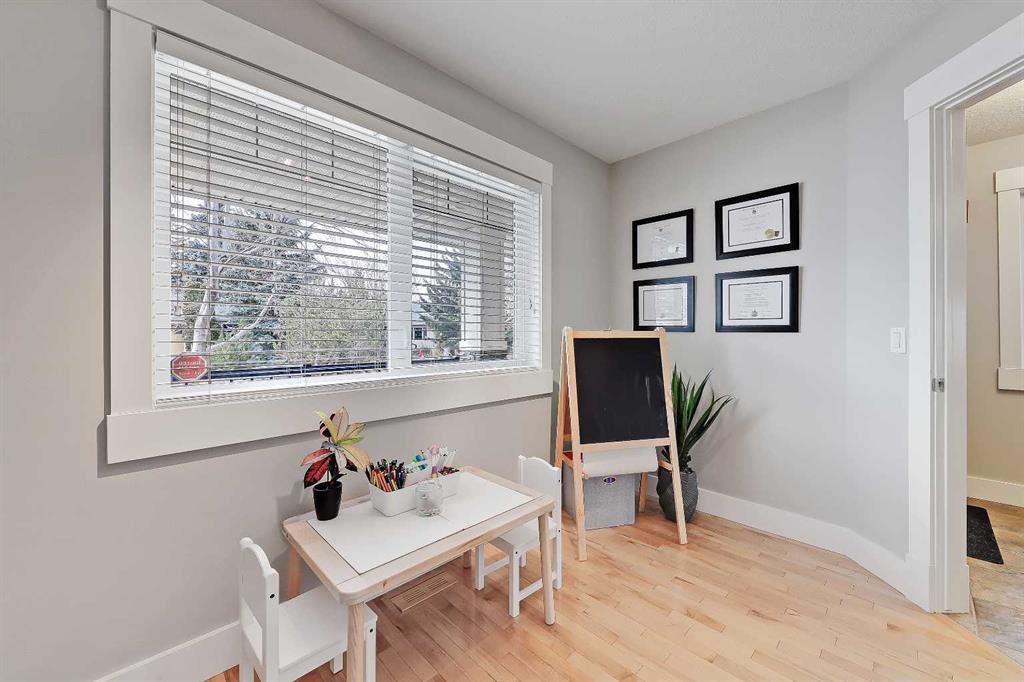 Tucked into a quiet street in CAPITOL HILL, this warm and welcoming TWO-STOREY, 4-BED home blends timeless design with modern comfort. From the charming front veranda to the sunny backyard, every inch of this home is inviting and functional. Step inside to a tiled foyer with great flow and sight lines through the main level. Just off the entry, there’s a bright FLEX ROOM that works beautifully as an office, playroom, or studio space. The hallway opens to a thoughtfully designed kitchen featuring GRANITE countertops, stainless steel appliances, loads of cabinet space, a corner pantry, and a large island with seating. Whether you’re meal-prepping or hosting friends, this is a space that just works. The dining area flows right into the cozy, sunken living room — a subtle change in elevation that creates a vibe all its own. It’s anchored by a GAS FIREPLACE with a custom wood mantel and tile surround, giving it just the right amount of warmth and character & the coffered ceiling adds further elegance to the space. Tucked around the corner on the main floor is a convenient LAUNDRY ROOM with upper cabinets, plus a 2-PIECE POWDER ROOM for guests — both practical features that make everyday life easier. Upstairs, you’ll find three generous bedrooms, including a spacious primary retreat with 2 WALK-IN CLOSETS and a private ensuite featuring a soaker tub, separate shower, and dual sinks. The two secondary bedrooms share a well-appointed 4-PIECE MAIN BATHROOM with a granite vanity and tub/shower combo — perfect for kids, guests, or roommates. There’s also a clever BUILT-IN DESK AREA on the upper landing — ideal for homework or work-from-home needs. The fully finished basement adds major bonus space with new carpet installed in 2022, a large family room, fourth bedroom, and a full 4-piece bath — think movie nights, sleepovers, or a private guest zone. Storage is tucked away smartly, and there’s no shortage of room to spread out. The east-facing backyard is fully fenced, landscaped & super private, complete with a patio for summer BBQs under the trees. There’s also a DOUBLE DETACHED FULLY FINISHED GARAGE with BUILT-IN STORAGE & a drainage system, accessed from the back lane. Location-wise, you’re in the heart of it all. You’re walking distance to Confederation Park, minutes from SAIT, U of C, and Foothills Hospital, and in the catchment for Capitol Hill School, St. Joseph Elementary/Junior High, and close to William Aberhart High School. Grab brunch at Edelweiss Village, coffee at Weeds Café, or hit The Dandelion or 4th Spot Kitchen for dinner. North Hill Centre and the LRT are right nearby, plus you’re only 10 minutes to downtown. Whether you’re commuting, biking the paths, or strolling to brunch — this is inner-city living with a true neighbourhood feel. This home has been well maintained with a newer furnace, hot water tank & AC. It is move in ready & delivers space, warmth, and everyday functionality in one of Calgary’s most walkable communities. You’re going to love it here!