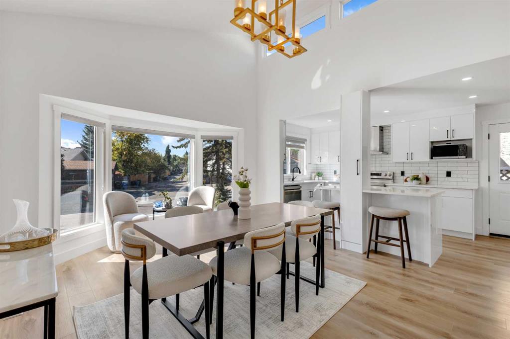 The main level is designed for today’s lifestyle, with a bright open dining space anchored by a bay window and a seamless flow into the kitchen. This kitchen is a true highlight, featuring sleek modern finishes, beautiful quartz countertops, an updated tile backsplash, a large sink set under a large window, and plenty of storage. The layout invites gatherings and makes entertaining or weeknight dinners feel effortless, with direct access to the backyard patio.