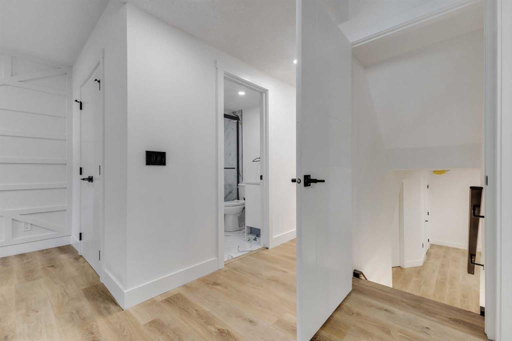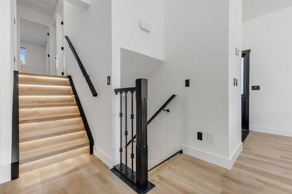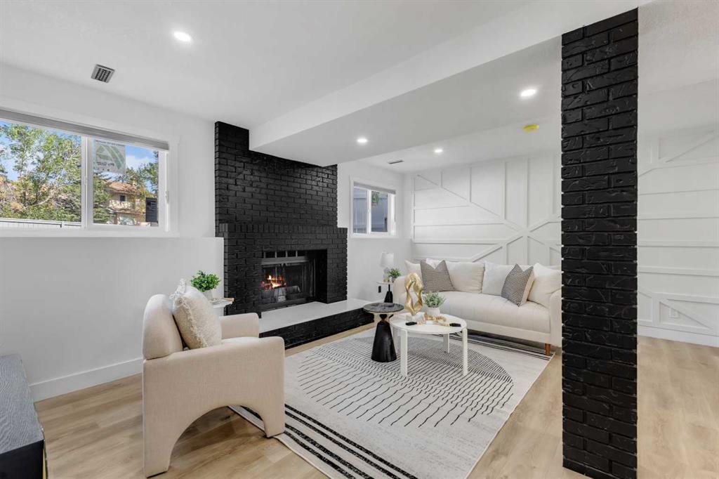 The third level is where this split design shines, offering a cozy family room centred around a stylish feature wall and brick-surround fireplace. Two additional full bathrooms are also located here, complete with designer tiled showers and LED blacklit mirrors! This thoughtful design provides flexibility for guests, teenagers, or a growing family.