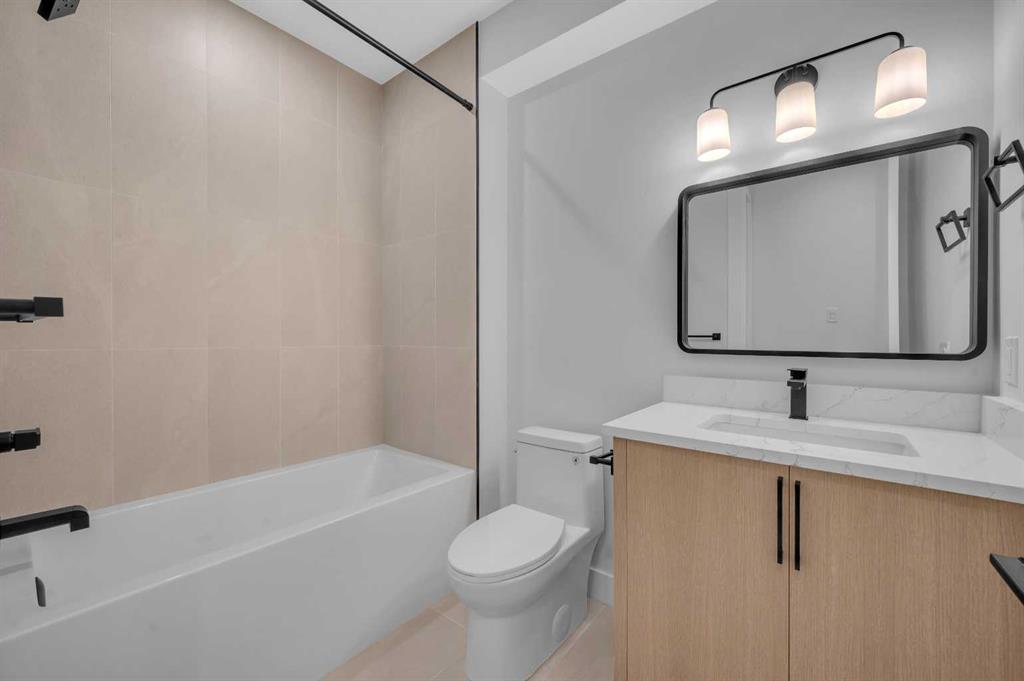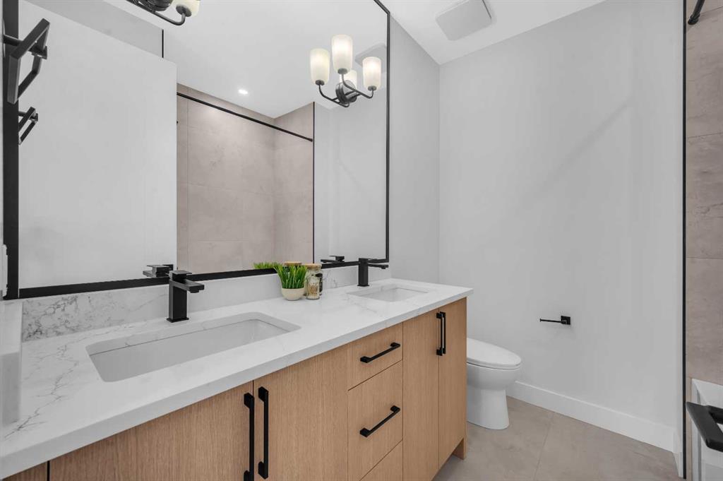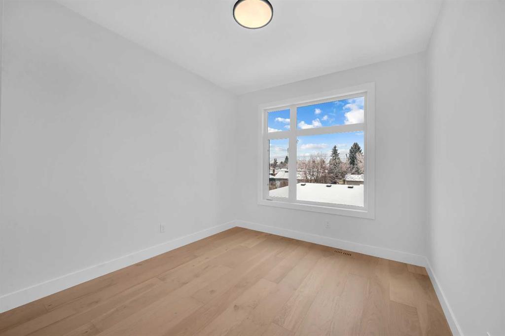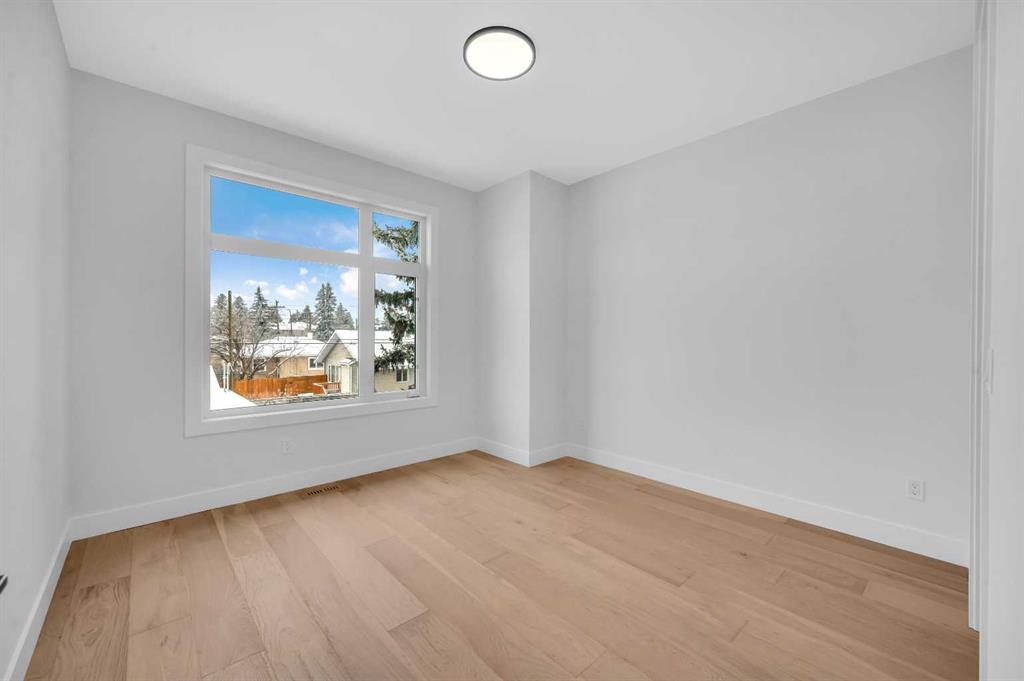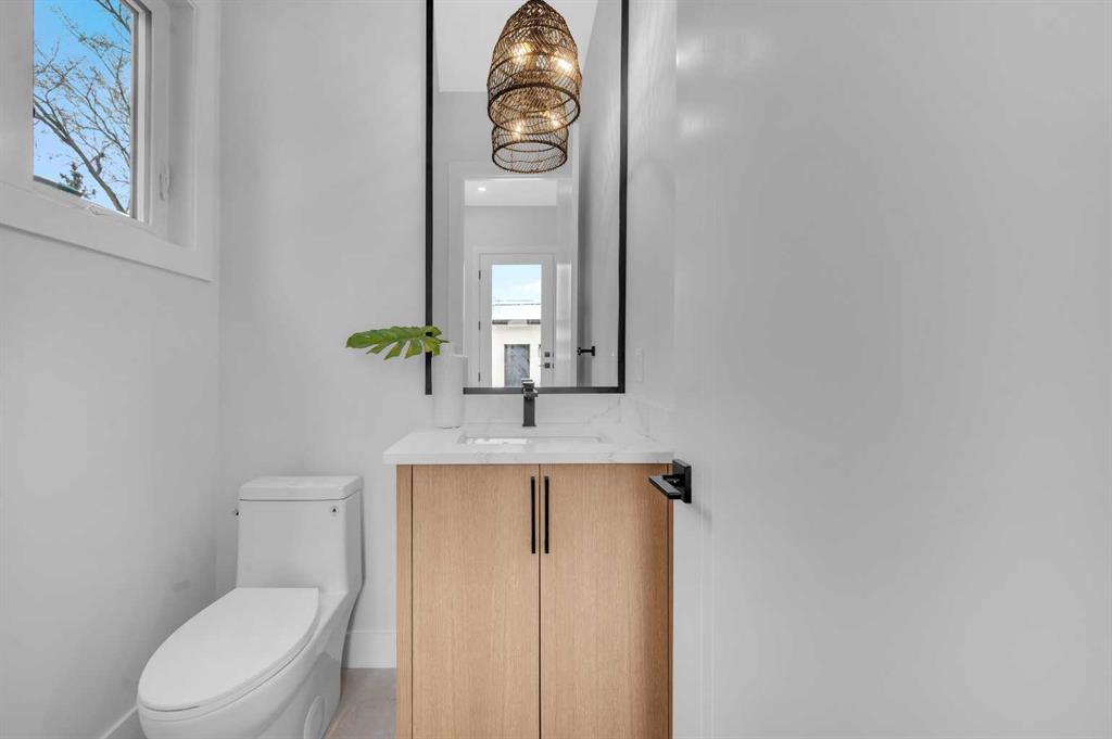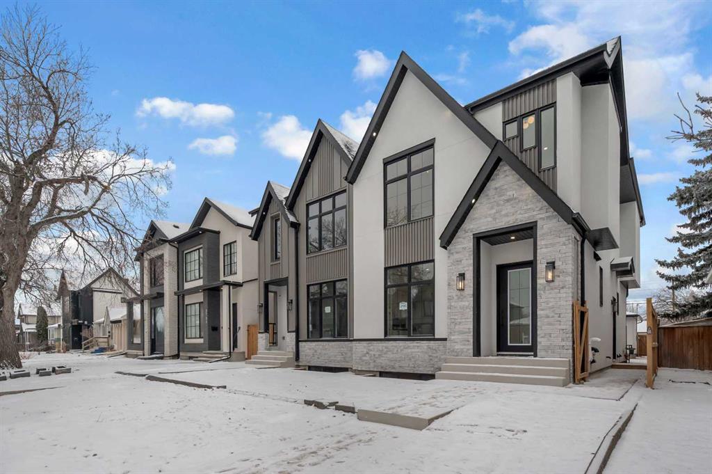 LOCATION LOCATION! Built on a quiet street only steps to Confederation Park, this BRAND-NEW semi-detached infill in CAPITOL HILL offers a superb floorplan with a LEGAL BASEMENT SUITE (subject to permits & approvals by the city). Capitol Hill is well-situated in inner-city NW, with lots of outdoor recreation, schools, & shopping nearby. Confederation Park & the lovely Pebble Playground are a quick walk down the street, the City of Calgary toboggan hill is only 6-mins away, and the Confederation Park Golf Course is only 10-min down the road; a quick 9 holes after dinner can be a weeknight reality! The Calgary Montessori School, Branton School, Rosemont School, and St Francis High School are all close by, with SAIT & UofC a short bike ride away. Dining options, shopping, amenities, and more are all at your fingertips, with Banff Trail, North Hill Centre, and all the businesses along Crowchild easily accessible from this inner-city location. With an amazing layout & premium finishes, you’ll discover a beautiful blend of both a stylish & functional lifestyle. This home features several upgrades, including 10-ft ceilings on the main level, engineered hardwood flooring on the upper levels, & a fully-developed basement w/ a LEGAL SUITE (subject to city approvals). The main floor boasts large primary living spaces, including a bright front dining/flex room, a large central kitchen with an oversized island w/ bar seating, ceiling-height custom cabinetry, and built-in pantry & coffee station. The large rear living room is finished w/ an inset gas fireplace w/ modern full-height surround, built-in millwork, and large windows overlooking the back patio – perfect for family gatherings! A rear mudroom hosts a bench with hooks, with direct access to the double detached garage out back and an elegant, private powder room. Upstairs, you’re greeted w/ hardwood floors, leading you into the two secondary bedrooms w/ built-in closets, a spacious laundry room and a main 4-pc bath w/ modern vanity and a tub/shower combo w/ full-height tile surround. The primary suite features a soaring vaulted ceiling, multiple tall East windows for tons of natural light, and a large walk-in closet w/ built-in storage. The 5-pc ensuite shows off with vaulted ceiling, heated tile floors, glass shower w/ full-height tile, a free-standing tub, a modern vanity, dual under-mount sinks, and a separate water closet. The fully-developed LEGAL BASEMENT SUITE (subject to approval by the city) enjoys private access through a secure side entrance, a generous-sized bedroom w/ built-in closet, a spacious and contemporary 4-pc bath w/ modern tile & vanity, large windows, space for a washer & dryer, plus a large living room area! The kitchen is thoughtfully arranged with quartz countertops, full-height cabinetry, and lower drawers. Take a drive by the house and see how this house will suit your family perfectly! *Photos from show suite next door.*