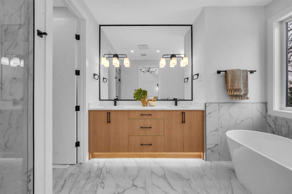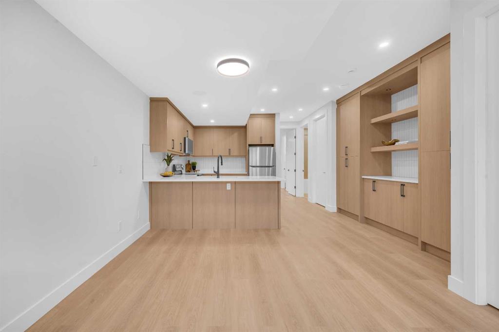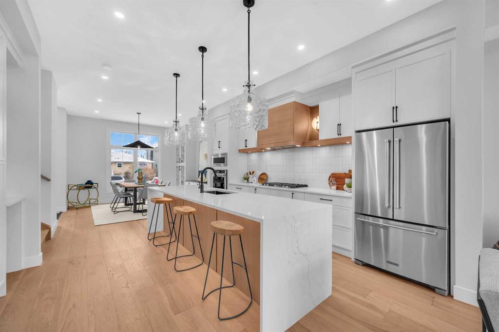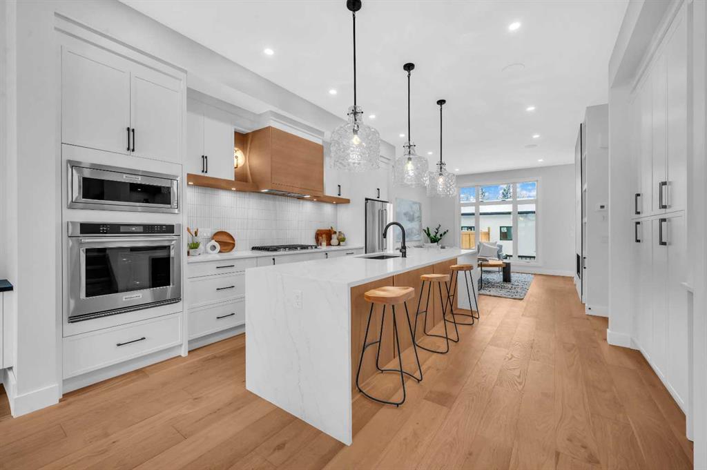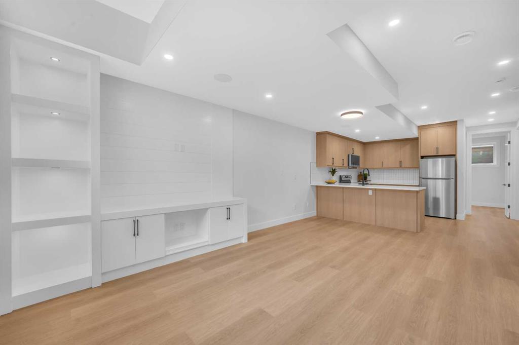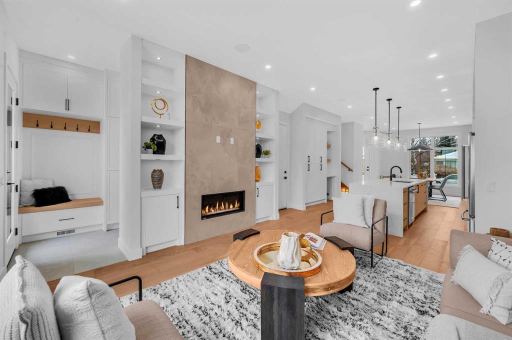 LOCATION LOCATION! Built on a quiet street only steps to Confederation Park, this BRAND-NEW semi-detached infill in CAPITOL HILL offers a superb floorplan with a LEGAL BASEMENT SUITE (subject to permits & approvals by the city). Capitol Hill is well-situated in inner-city NW, with lots of outdoor recreation, schools, & shopping nearby. Confederation Park & the lovely Pebble Playground are a quick walk down the street, the City of Calgary toboggan hill is only 6-mins away, and the Confederation Park Golf Course is only 10-min down the road; a quick 9 holes after dinner can be a weeknight reality! The Calgary Montessori School, Branton School, Rosemont School, and St Francis High School are all close by, with SAIT & UofC a short bike ride away. Dining options, shopping, amenities, and more are all at your fingertips, with Banff Trail, North Hill Centre, and all the businesses along Crowchild easily accessible from this inner-city location. With an amazing layout & premium finishes, you’ll discover a beautiful blend of both a stylish & functional lifestyle. This home features several upgrades, including 10-ft ceilings on the main level, engineered hardwood flooring on the upper levels, & a fully-developed basement w/ a LEGAL SUITE (subject to city approvals). The main floor boasts large primary living spaces, including a bright front dining/flex room, a large central kitchen with an oversized island w/ bar seating, ceiling-height custom cabinetry, and built-in pantry & coffee station. The large rear living room is finished w/ an inset gas fireplace w/ modern full-height surround, built-in millwork, and large windows overlooking the back patio – perfect for family gatherings! A rear mudroom hosts a bench with hooks, with direct access to the double detached garage out back and an elegant, private powder room. Upstairs, you’re greeted w/ hardwood floors, leading you into the two secondary bedrooms w/ built-in closets, a spacious laundry room and a main 4-pc bath w/ modern vanity and a tub/shower combo w/ full-height tile surround. The primary suite features a soaring vaulted ceiling, multiple tall East windows for tons of natural light, and a large walk-in closet w/ built-in storage. The 5-pc ensuite shows off with vaulted ceiling, heated tile floors, glass shower w/ full-height tile, a free-standing tub, a modern vanity, dual under-mount sinks, and a separate water closet. The fully-developed LEGAL BASEMENT SUITE (subject to approval by the city) enjoys private access through a secure side entrance, a generous-sized bedroom w/ built-in closet, a spacious and contemporary 4-pc bath w/ modern tile & vanity, large windows, space for a washer & dryer, plus a large living room area! The kitchen is thoughtfully arranged with quartz countertops, full-height cabinetry, and lower drawers. Take a drive by the house and see how this house will suit your family perfectly! *Photos from show suite next door.*
