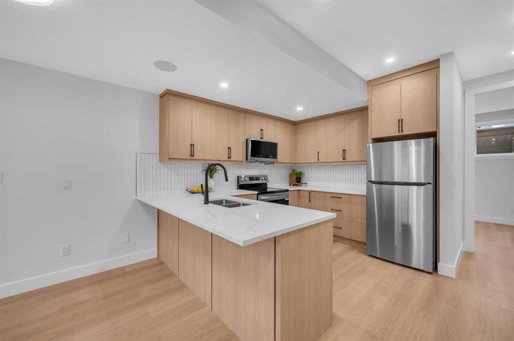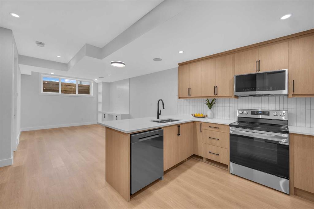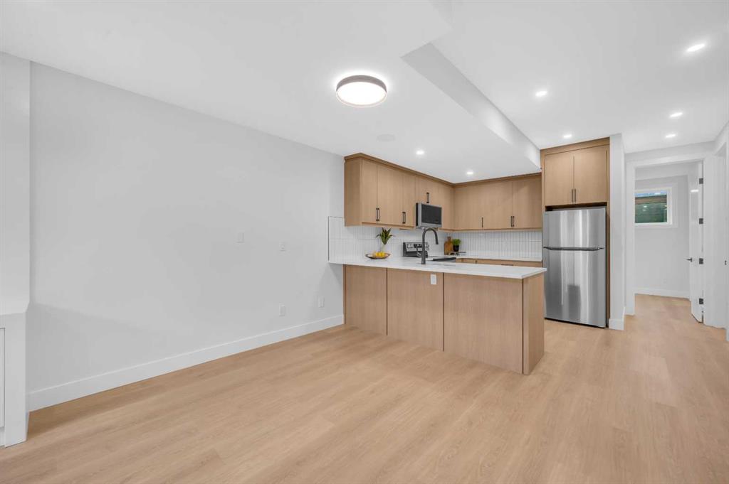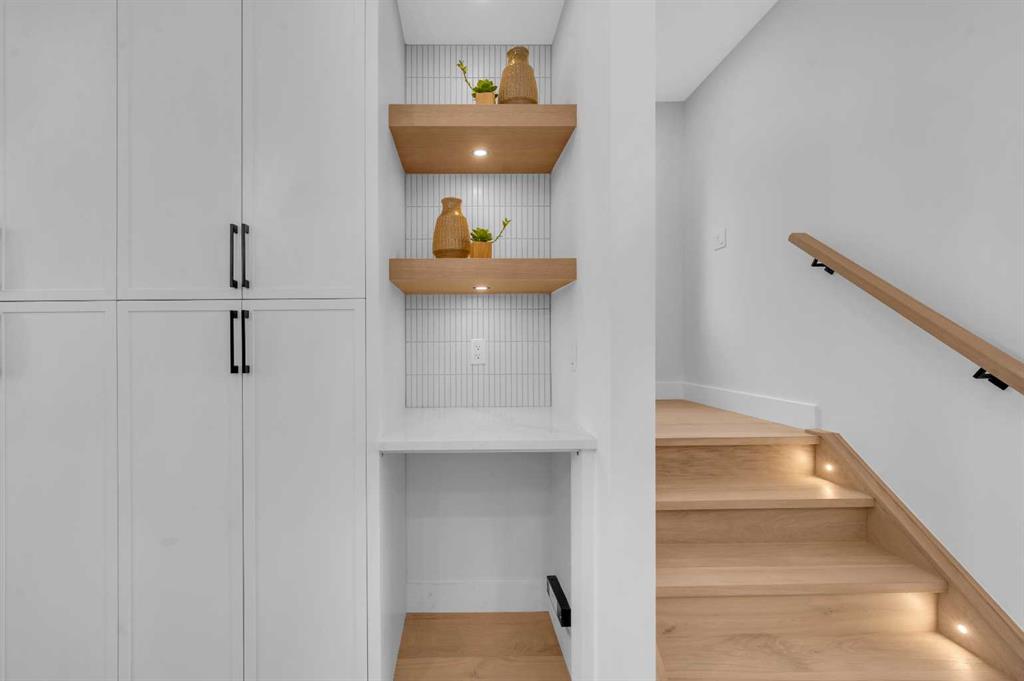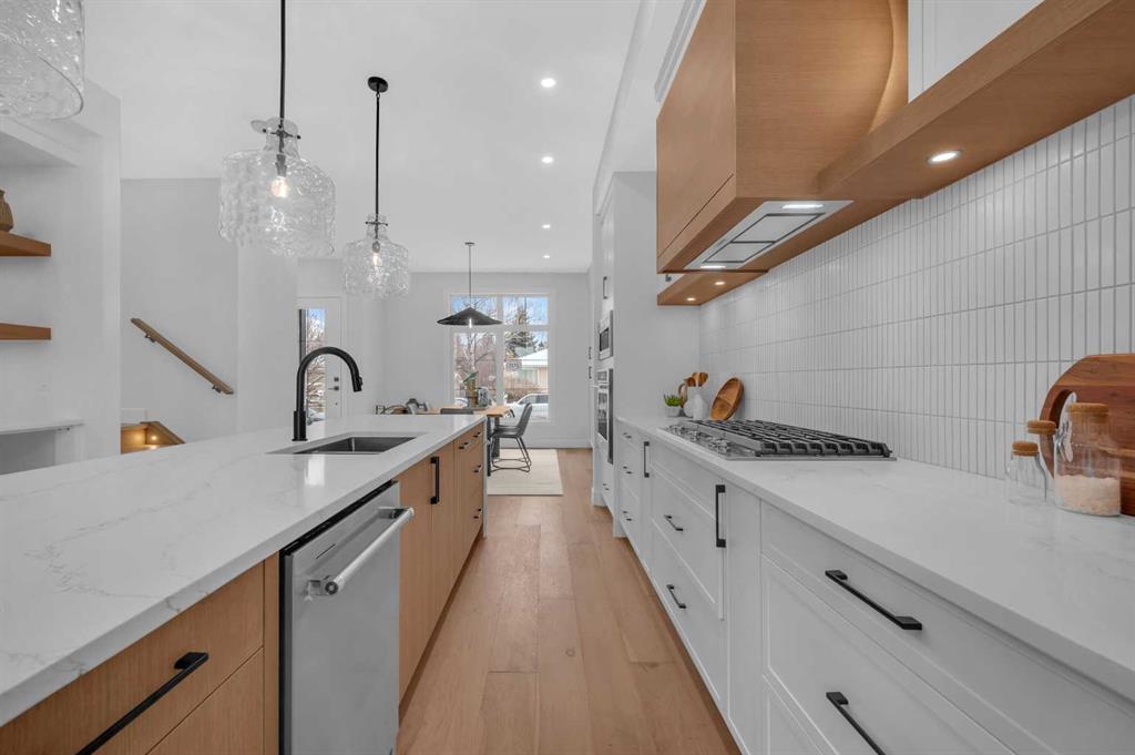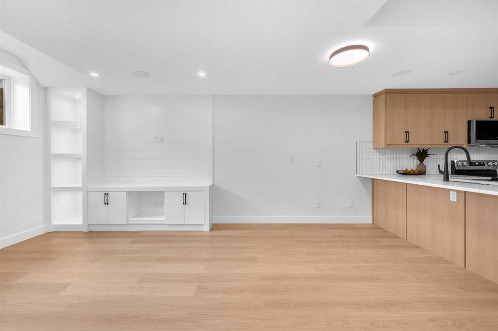 LOCATION LOCATION! Built on a quiet street only steps to Confederation Park, this BRAND-NEW semi-detached infill in CAPITOL HILL offers a superb floorplan with a LEGAL BASEMENT SUITE (subject to permits & approvals by the city). Capitol Hill is well-situated in inner-city NW, with lots of outdoor recreation, schools, & shopping nearby. Confederation Park & the lovely Pebble Playground are a quick walk down the street, the City of Calgary toboggan hill is only 6-mins away, and the Confederation Park Golf Course is only 10-min down the road; a quick 9 holes after dinner can be a weeknight reality! The Calgary Montessori School, Branton School, Rosemont School, and St Francis High School are all close by, with SAIT & UofC a short bike ride away. Dining options, shopping, amenities, and more are all at your fingertips, with Banff Trail, North Hill Centre, and all the businesses along Crowchild easily accessible from this inner-city location. With an amazing layout & premium finishes, you’ll discover a beautiful blend of both a stylish & functional lifestyle. This home features several upgrades, including 10-ft ceilings on the main level, engineered hardwood flooring on the upper levels, & a fully-developed basement w/ a LEGAL SUITE (subject to city approvals). The main floor boasts large primary living spaces, including a bright front dining/flex room, a large central kitchen with an oversized island w/ bar seating, ceiling-height custom cabinetry, and built-in pantry & coffee station. The large rear living room is finished w/ an inset gas fireplace w/ modern full-height surround, built-in millwork, and large windows overlooking the back patio – perfect for family gatherings! A rear mudroom hosts a bench with hooks, with direct access to the double detached garage out back and an elegant, private powder room. Upstairs, you’re greeted w/ hardwood floors, leading you into the two secondary bedrooms w/ built-in closets, a spacious laundry room and a main 4-pc bath w/ modern vanity and a tub/shower combo w/ full-height tile surround. The primary suite features a soaring vaulted ceiling, multiple tall East windows for tons of natural light, and a large walk-in closet w/ built-in storage. The 5-pc ensuite shows off with vaulted ceiling, heated tile floors, glass shower w/ full-height tile, a free-standing tub, a modern vanity, dual under-mount sinks, and a separate water closet. The fully-developed LEGAL BASEMENT SUITE (subject to approval by the city) enjoys private access through a secure side entrance, a generous-sized bedroom w/ built-in closet, a spacious and contemporary 4-pc bath w/ modern tile & vanity, large windows, space for a washer & dryer, plus a large living room area! The kitchen is thoughtfully arranged with quartz countertops, full-height cabinetry, and lower drawers. Take a drive by the house and see how this house will suit your family perfectly! *Photos from show suite next door.*