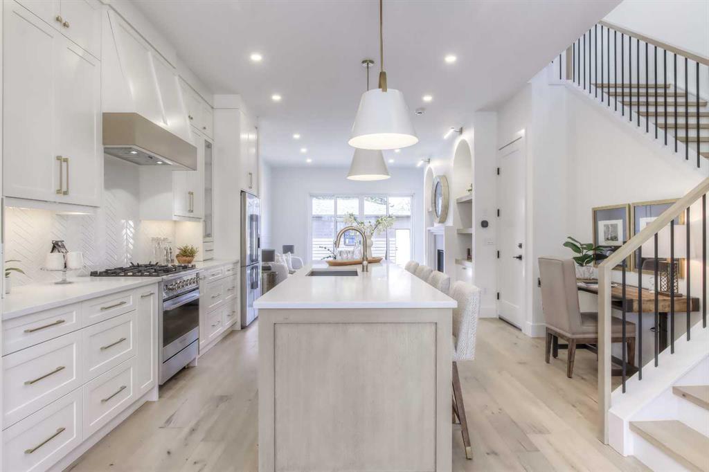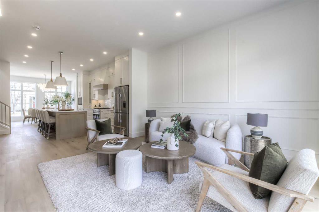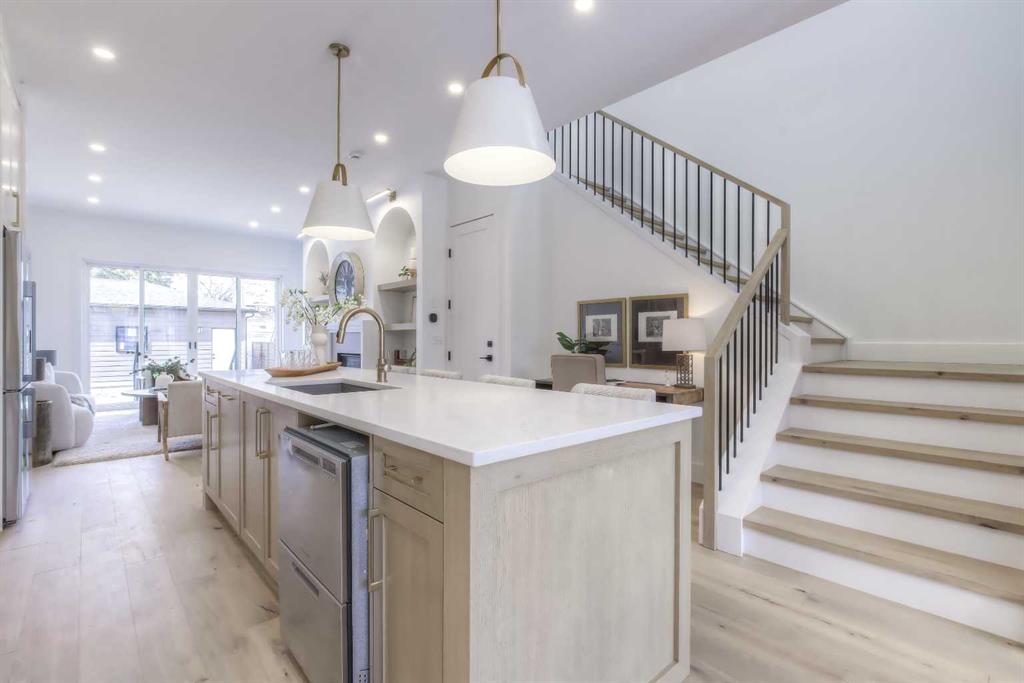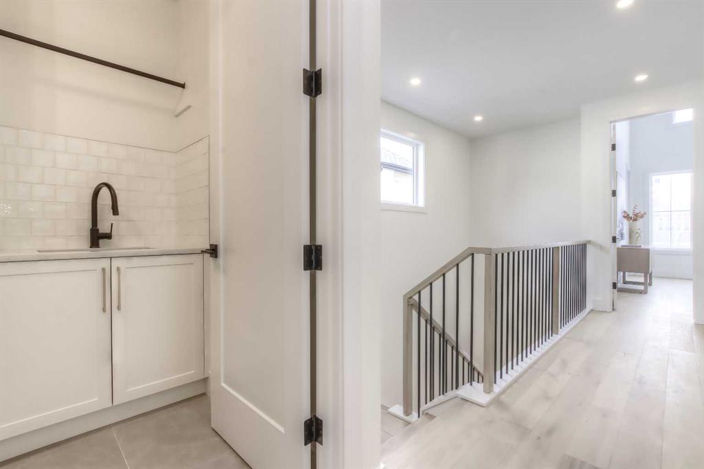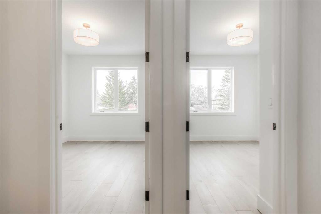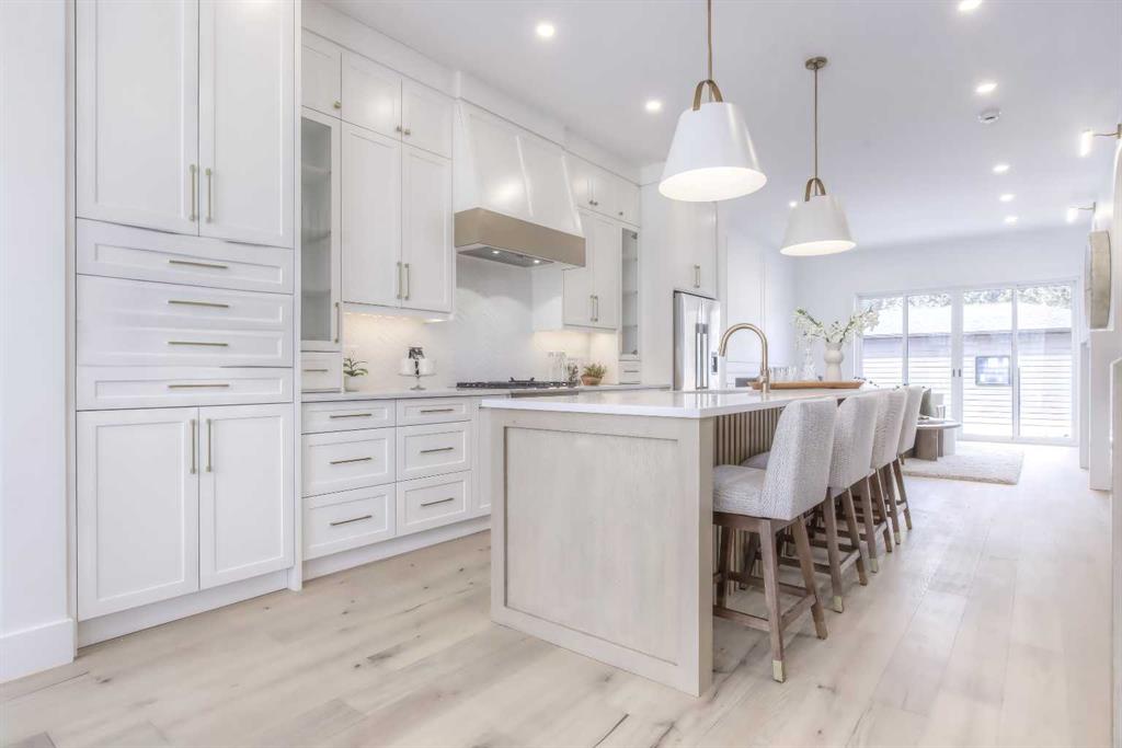 Tucked along a tree-lined street in KILLARNEY, this NEWLY BUILT luxury infill is a masterclass in thoughtful design and upscale comfort. From the moment you step through the front door, you’ll feel the difference. SOARING 10’ CEILINGS, wide-plank white oak engineered hardwood, custom millwork, upscale designer lighting, and natural light pouring through oversized windows create a bright, inviting atmosphere that feels as elegant as it is livable! The front dining room, framed by large windows and detailed French panelling, is perfect for morning coffee or entertaining. At the heart of the home, the chef-inspired kitchen blends function with refined style. Top-tier FISHER & PAYKEL APPLIANCES, including a gas range and double-drawer dishwasher, pair with sleek quartz counters, a large island, and custom-built hood fans and cabinets that elevate the space. The living room anchors the rear of the home, with more French panelling and a contemporary fireplace that adds warmth with a designer mantle and large profile tile, while arched built-ins with wall-mounted lighting frame the fireplace beautifully. Sliding glass doors open to a WEST-FACING CONCRETE PATIO with a BBQ gas line, ideal for summer nights in the sun. Around the corner, a spacious mudroom with built-in bench and cabinetry keeps things organized, and a stylish powder room adds a dose of designer flair. Upstairs, a black iron and white oak staircase leads to three bedrooms, a full laundry room, and two luxe bathrooms. The primary suite is a true retreat, featuring VAULTED CEILINGS, a MASSIVE WALK-IN CLOSET with custom shelving, and a spa-like ensuite with HEATED FLOORS, dual sinks, a free-standing soaker tub, and a fully tiled oversized shower with frameless glass. Both additional bedrooms are bright and spacious with built-in closets and share access to a stunning 5-PIECE BATH with dual sinks and a tiled tub/shower combo. A large upper laundry room with sink and storage completes this level. Downstairs, the fully developed basement offers incredible versatility. You’ll find two more bedrooms (one of which is the perfect gym space), a modern 4-piece bath, and a large rec space that’s easily adaptable as a games room, media lounge, or even future kitchen area with a full bar complete with sink, dishwasher, fridge, and quartz counters. There’s a separate entrance and a second laundry space, too! Easily convert this into a mother-in-law space, use it for a live-in nanny, or other multi-generational living arrangements! Located in the heart of Killarney, you’re just a short walk to Killarney School (K–6 Montessori), École Holy Name (French Immersion), and Kildare Park. The Killarney Aquatic & Rec Centre is five minutes away, along with, Safeway, and Walmart for easy errands. Grab coffee or dinner along 17th Ave, or hop on the LRT at Westbrook Station for a quick ride downtown. With nearby playgrounds, schools, and easy access to Crowchild and Bow Trail, the location truly checks all the boxes.