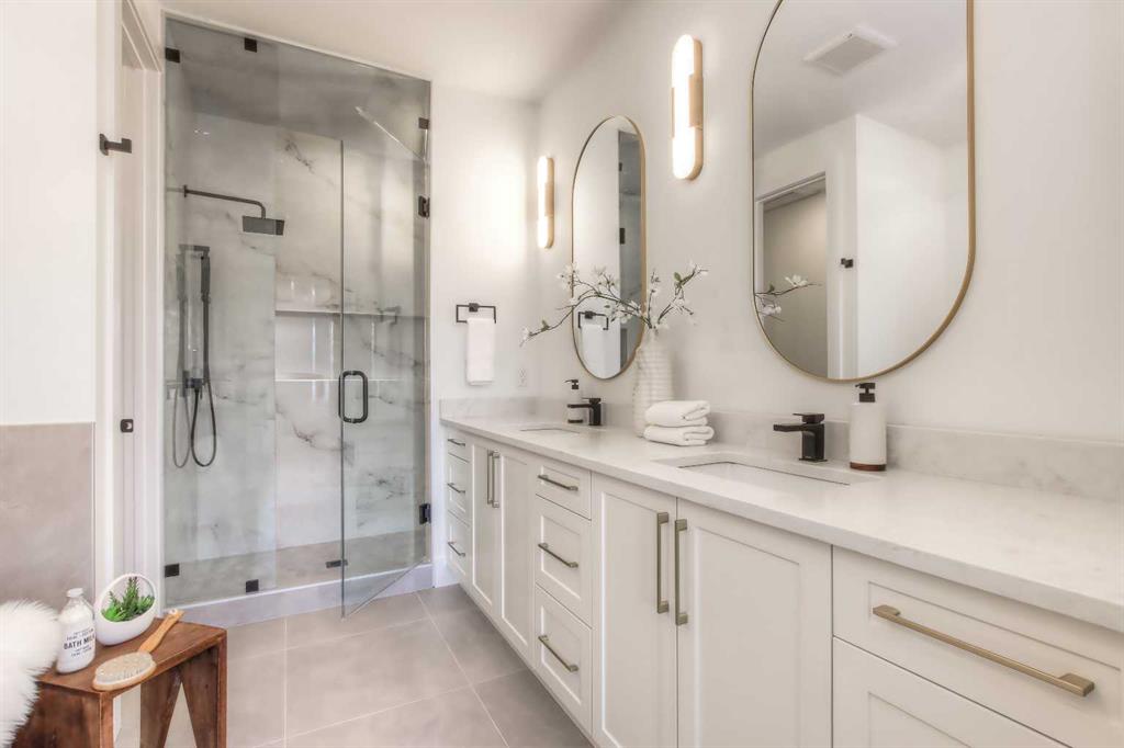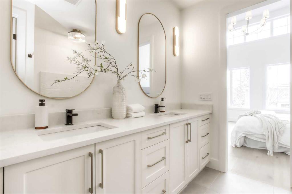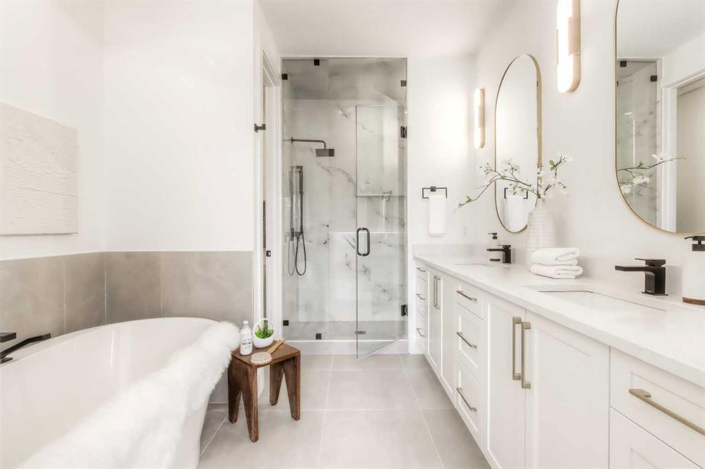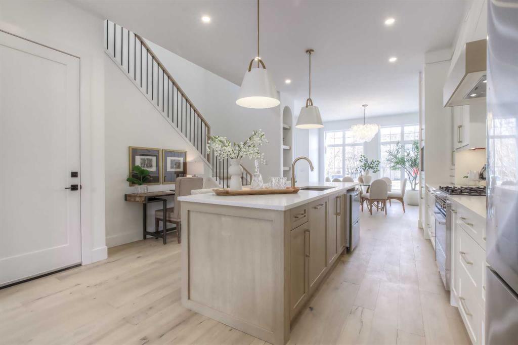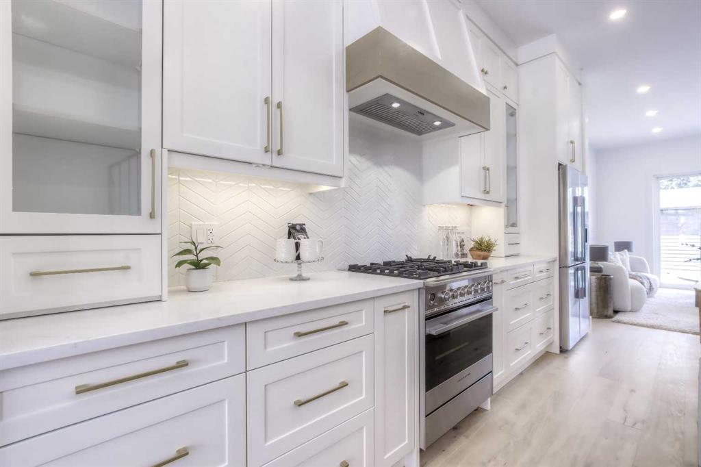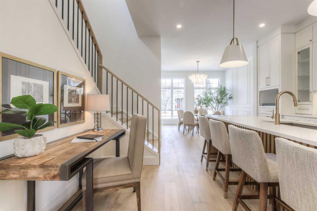 Tucked along a tree-lined street in KILLARNEY, this NEWLY BUILT luxury infill is a masterclass in thoughtful design and upscale comfort. From the moment you step through the front door, you’ll feel the difference. SOARING 10’ CEILINGS, wide-plank white oak engineered hardwood, custom millwork, upscale designer lighting, and natural light pouring through oversized windows create a bright, inviting atmosphere that feels as elegant as it is livable! The front dining room, framed by large windows and detailed French panelling, is perfect for morning coffee or entertaining. At the heart of the home, the chef-inspired kitchen blends function with refined style. Top-tier FISHER & PAYKEL APPLIANCES, including a gas range and double-drawer dishwasher, pair with sleek quartz counters, a large island, and custom-built hood fans and cabinets that elevate the space. The living room anchors the rear of the home, with more French panelling and a contemporary fireplace that adds warmth with a designer mantle and large profile tile, while arched built-ins with wall-mounted lighting frame the fireplace beautifully. Sliding glass doors open to a WEST-FACING CONCRETE PATIO with a BBQ gas line, ideal for summer nights in the sun. Around the corner, a spacious mudroom with built-in bench and cabinetry keeps things organized, and a stylish powder room adds a dose of designer flair. Upstairs, a black iron and white oak staircase leads to three bedrooms, a full laundry room, and two luxe bathrooms. The primary suite is a true retreat, featuring VAULTED CEILINGS, a MASSIVE WALK-IN CLOSET with custom shelving, and a spa-like ensuite with HEATED FLOORS, dual sinks, a free-standing soaker tub, and a fully tiled oversized shower with frameless glass. Both additional bedrooms are bright and spacious with built-in closets and share access to a stunning 5-PIECE BATH with dual sinks and a tiled tub/shower combo. A large upper laundry room with sink and storage completes this level. Downstairs, the fully developed basement offers incredible versatility. You’ll find two more bedrooms (one of which is the perfect gym space), a modern 4-piece bath, and a large rec space that’s easily adaptable as a games room, media lounge, or even future kitchen area with a full bar complete with sink, dishwasher, fridge, and quartz counters. There’s a separate entrance and a second laundry space, too! Easily convert this into a mother-in-law space, use it for a live-in nanny, or other multi-generational living arrangements! Located in the heart of Killarney, you’re just a short walk to Killarney School (K–6 Montessori), École Holy Name (French Immersion), and Kildare Park. The Killarney Aquatic & Rec Centre is five minutes away, along with, Safeway, and Walmart for easy errands. Grab coffee or dinner along 17th Ave, or hop on the LRT at Westbrook Station for a quick ride downtown. With nearby playgrounds, schools, and easy access to Crowchild and Bow Trail, the location truly checks all the boxes.