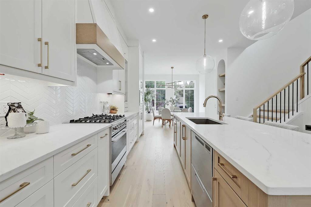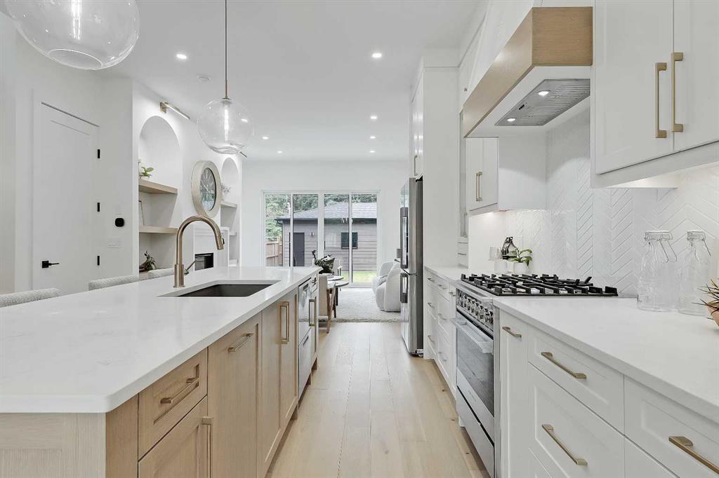 Tucked along a tree-lined street in KILLARNEY, this NEWLY BUILT luxury infill is a masterclass in thoughtful design and upscale comfort. From the moment you step through the front door, you’ll feel the difference. SOARING 10’ CEILINGS, wide-plank white oak engineered hardwood, custom millwork, upscale designer lighting, and natural light pouring through oversized windows create a bright, inviting atmosphere that feels as elegant as it is livable and with AC INSTALLED this home offers it all! The front dining room, framed by large windows and detailed French panelling, is perfect for morning coffee or entertaining. At the heart of the home, the chef-inspired kitchen blends function with refined style. Top-tier FISHER & PAYKEL APPLIANCES, including a gas range and double-drawer dishwasher, pair with sleek quartz counters, a large island, and custom-built hood fans and cabinets that elevate the space. The living room anchors the rear of the home, with more French panelling and a contemporary fireplace that adds warmth with a designer mantle and large profile tile, while arched built-ins with wall-mounted lighting frame the fireplace beautifully. Sliding glass doors open to a WEST-FACING CONCRETE PATIO with a BBQ gas line, ideal for summer nights in the sun. Around the corner, a spacious mudroom with built-in bench and cabinetry keeps things organized, and a stylish powder room adds a dose of designer flair. Upstairs, a black iron and white oak staircase leads to three bedrooms, a full laundry room, and two luxe bathrooms. The primary suite is a true retreat, featuring VAULTED CEILINGS, a MASSIVE WALK-IN CLOSET with custom shelving, and a spa-like ensuite with HEATED FLOORS, dual sinks, a free-standing soaker tub, and a fully tiled oversized shower with frameless glass. Both additional bedrooms are bright and spacious with built-in closets and share access to a stunning 5-PIECE BATH with dual sinks and a tiled tub/shower combo. A large upper laundry room with sink and storage completes this level. Downstairs, the fully developed basement offers incredible versatility. You’ll find two more bedrooms (one of which is the perfect gym space), a modern 4-piece bath, and a large rec space that’s easily adaptable as a games room, media lounge, or even future kitchen area with a full bar complete with sink, dishwasher, fridge, and quartz counters. There’s a separate entrance and a second laundry space, too! Easily convert this into a mother-in-law space, use it for a live-in nanny, or other multi-generational living arrangements! Located in the heart of Killarney, you’re just a short walk to Killarney School (K–6 Montessori), École Holy Name (French Immersion), and Kildare Park. The Killarney Aquatic & Rec Centre is five minutes away, along with, Safeway, and Walmart for easy errands. Grab coffee or dinner along 17th Ave, or hop on the LRT at Westbrook Station for a quick ride downtown. Call to view today!