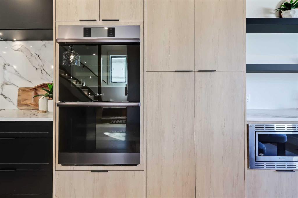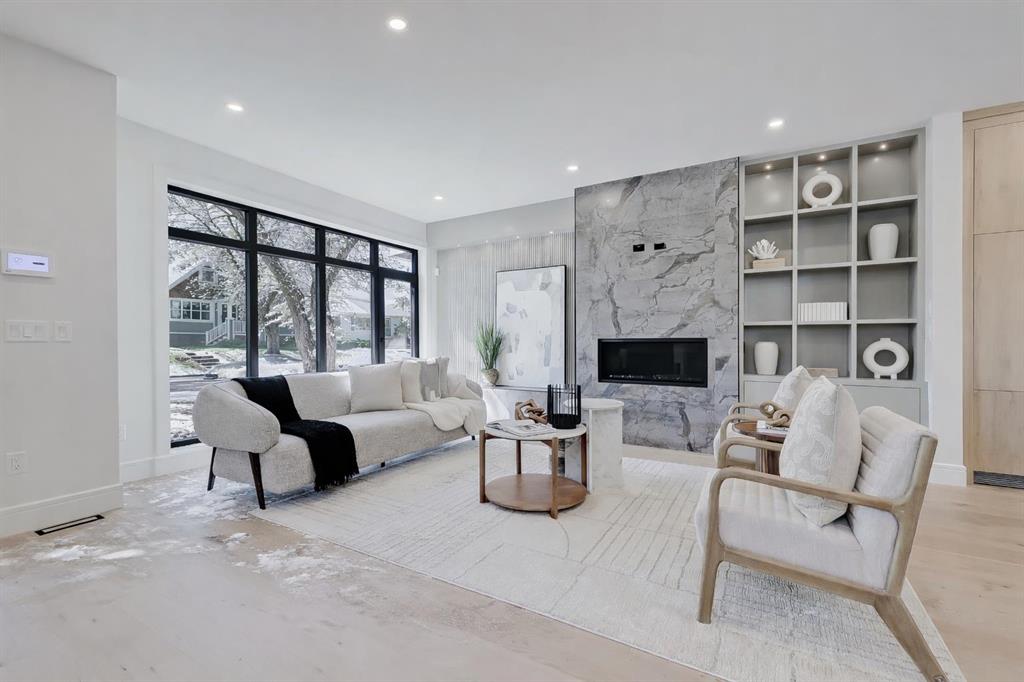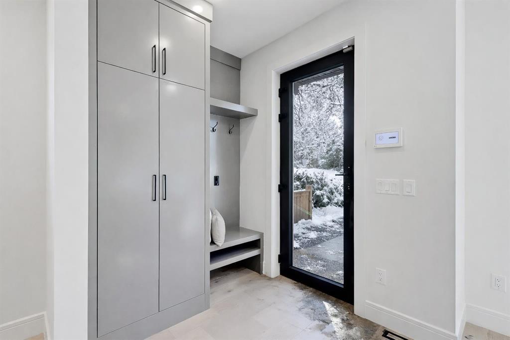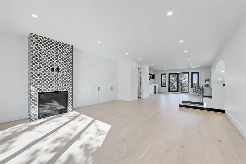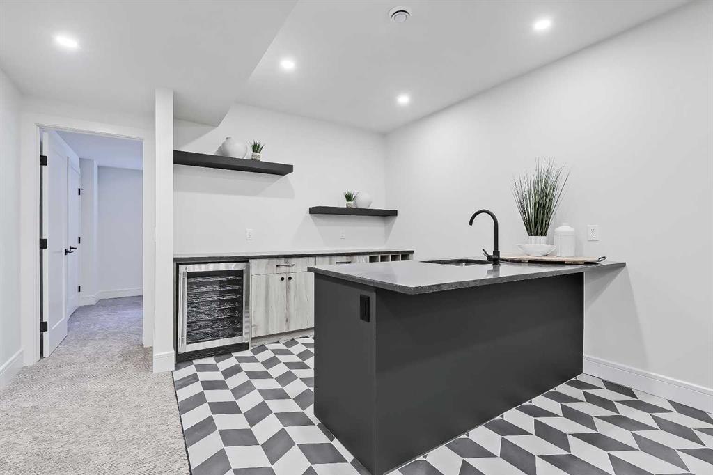 Tile detailing, modern finishes, designer lighting package, upgraded German-made KULU windows & doors…it’s everything you’re looking for in a luxury 3-STOREY SEMI-DETACHED INFILL! This designer home is located just off 26th Ave in the heart of Killarney – the ideal location for your new family home! The main floor opens into a welcoming foyer w/ built-in closet & bench, offering views into the spacious living room w/ a gas fireplace w/ full-height tile, as well as a stunning wood-panelled feature wall. Beautiful oak hardwood flooring leads you into the open-concept kitchen – fully equipped w/ an oversized island w/ quartz countertop, timeless shaker-style cabinetry w/ numerous lower drawers, & a contemporary flat-panel built-in cabinetry pantry. The designer kitchen is nicely finished w/ a full stainless steel appliance package, complete w/ a panelled French door refrigerator, a Dacor double wall oven, a gas cooktop w/ pot filler, & a built-in dishwasher. The custom built-ins continue into the dedicated dining room, w/ open shelving & lower cabinets w/ quartz counter for everyday convenience. Step out onto the back deck through the rear mudroom, complete w/ a built-in bench, coat cabinet, & tile flooring. Before you head upstairs, the stylish powder room is tucked away w/ a beautiful skirted vanity & vessel sink. Up the bright stairwell w/ glass wall awaits the primary suite – as sleek & modern as the rest of the home, w/ oversized windows, a private balcony w/ KULU door, & an extra-large walk-in closet! The chic ensuite features a dual vanity w/ a quartz countertop & a bank of lower drawers, a freestanding soaker tub, & a stand-up shower w/ full glass walls, rain showerhead, & bench. Two secondary bedrooms share the main 4-pc bath & the laundry room features a sink, upper cabinetry, hanging rod, tile backsplash, & a folding counter. A luxury home isn’t complete without a THIRD FLOOR LOFT, & this space has not been overlooked. More oversized windows bring in lots of natural light, shining across a spacious rec area w/ gas fireplace, full wet bar w/ extended quartz countertop, bar sink, & statement open shelving. A lovely sitting area w/ built-in desk overlooks the COVERED BALCONY & of course, there’s a full bath w/ fully tiled shower, too. The living space continues into the basement, w/ a full wet bar w/ quartz island, dual basin sink, & a designer tile floor, w/ a large family room, built-in media centre, a glass walled home gym w/ sports flooring, a 4th bedroom, & a full 4-pc bath. Killarney offers the perfect balance of community & convenience. From here, you’re within walking distance to Glendale School, Killarney School, & Bishop Carroll High. The CTrain is only 5 minutes away, making downtown access effortless. For sports enthusiasts, the Killarney Aquatic & Recreation Centre, Optimist Athletic Park, & Shaganappi Golf Course are all nearby.