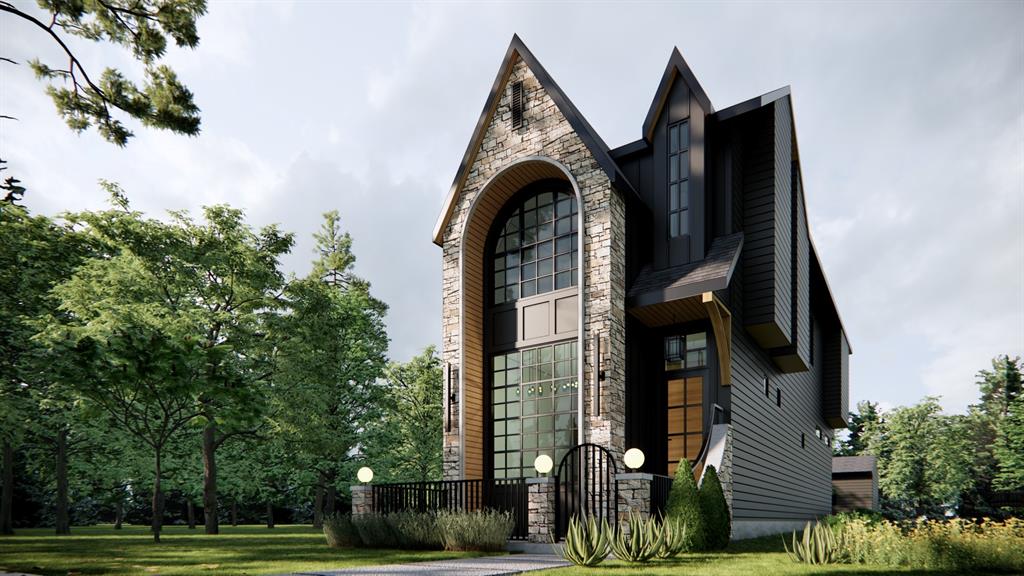 DETACHED INFILL COMING TO HILLHURST EARLY FALL! This upscale, modern home offers your family a lifestyle unlike any other – highly walkable, trendy shops/restaurants, and some of the city’s best outdoor recreation options in the sought-after inner-city community of HILLHURST, this brand-new home is within walking distance to Kensington shops, restaurants, live music, and more – supporting local has never been more convenient! Detailed arches, steep peaks, oversized windows the height of the exterior, Stone Accents, and a custom lit front foyer offer a stunning curb appeal in this masterfully crafted home by John Trinh & Associates (JTA Design). A RARE FIND, this European-inspired detached home with over 2,900 total square feet, extensive CUSTOM MILLWORK, plus other DESIGNER UPGRADES throughout makes this a dream home opportunity! Although tucked away on a quiet street a block away from Queen Elizabeth School and High School, you have easy access to Crowchild Trail, Memorial Drive, and 16th Avenue. Stylish and functional, discover LUXURIOUS FINISHES on the main floor with soaring 10’ CEILINGS, 8’ passage doors, and beautifully laid HERRINGBONE HARDWOOD. The kitchen features quartz countertops, custom cabinetry with soft-close hardware, under cabinet lighting, and large hidden WALK-IN PANTRY. The oversized central island has bar seating, under island lighting, and a built-in beverage fridge . The premium stainless steel appliance package adds to the overall luxurious feel. A built-in bench resides in the rear mudroom, along with a full walk-in rear entry closet and custom LED lighting with motion sensor activation. A wood-wrapped staircase leads upstairs to more hardwood flooring, soaring ceilings, and 8’ doors. The master suite features VAULTED ceilings an oversized arched window with DT VIEWS, a large spacious walk-in closet, and sensor lighting throughout. The ensuite has heated floors, a fully tiled walk-in shower, dual vanity, and a freestanding soaker tub. PLUS, both SECONDARY BEDROOMS feature their own 3PC ENSUITES! 9 ft ceilings in the fully developed basement create a spacious rec area with a pocket OFFICE with a built-in desk, a full wet bar, and a floating TV counter. Other upgrades include low maintenance landscaping and windows, metal-clad doors with glass, a good-sized rear deck, WEST backyard & PAVED back alley! Live in LUXURY in the PERFECT LOCATION – Hillhurst, and neighbouring Kensington, is home to your favourite eats like Hayden Block, Red’s Diner, Nik’s Bistro, Pie Junkie, Vero Bistro, and Pulcinella. Spend an afternoon shopping at the local stores or stop in at the Regal Cat Café before taking a walk along the Bow River Pathway and over to Made by Marcus for an evening treat. All this at your doorstep! This house and location is the perfect place for you & your family to call home! *RMS are taken from builder plans and subject to change upon completion.