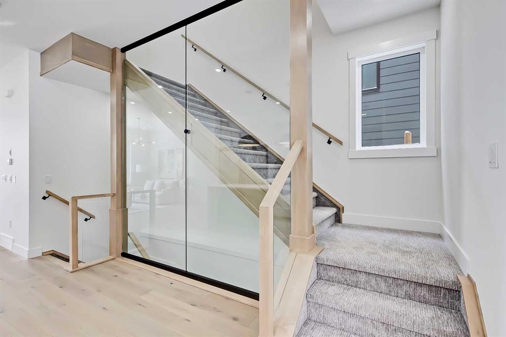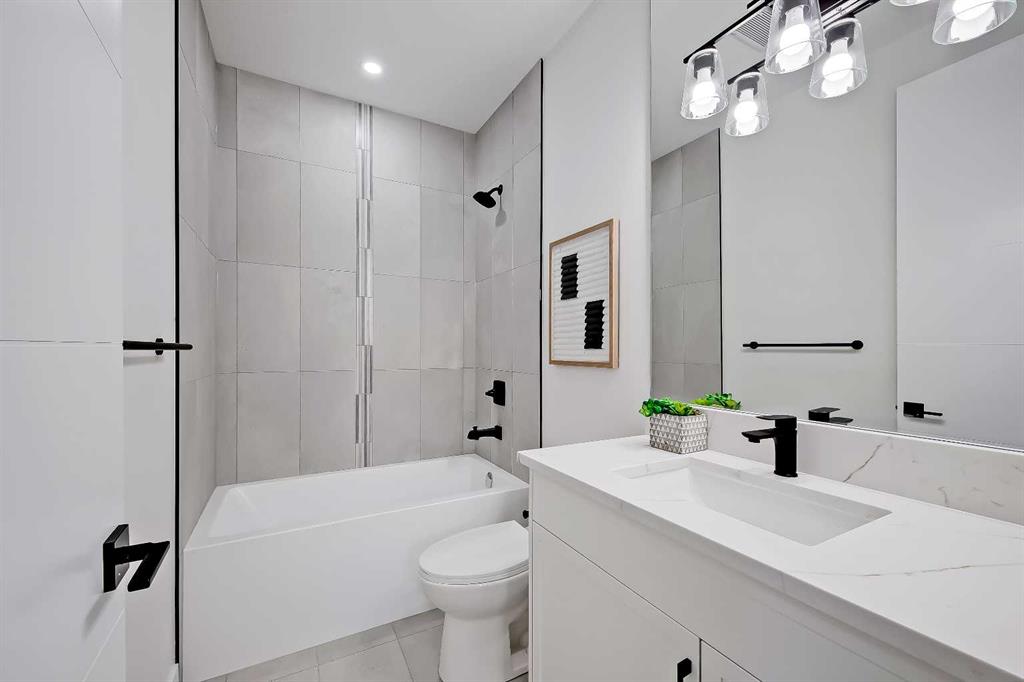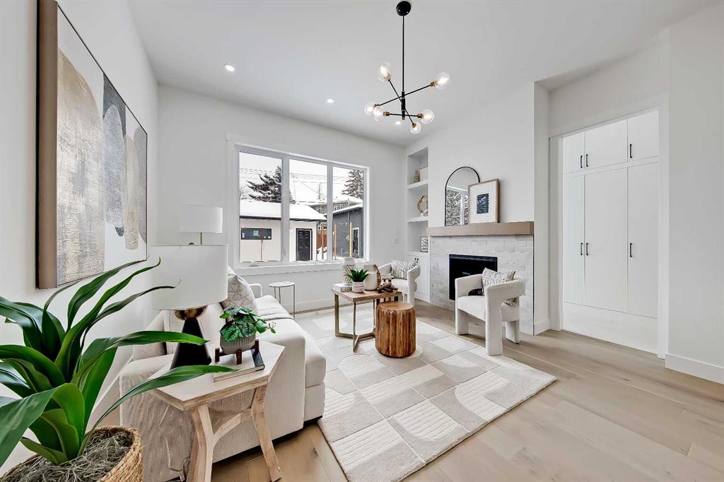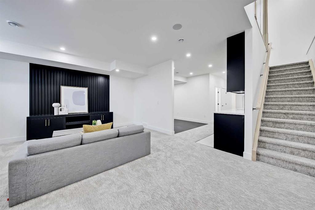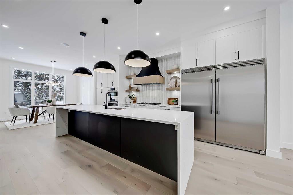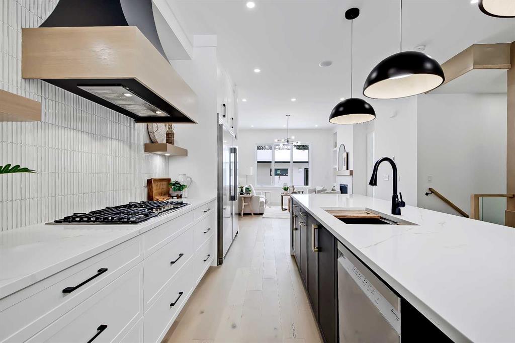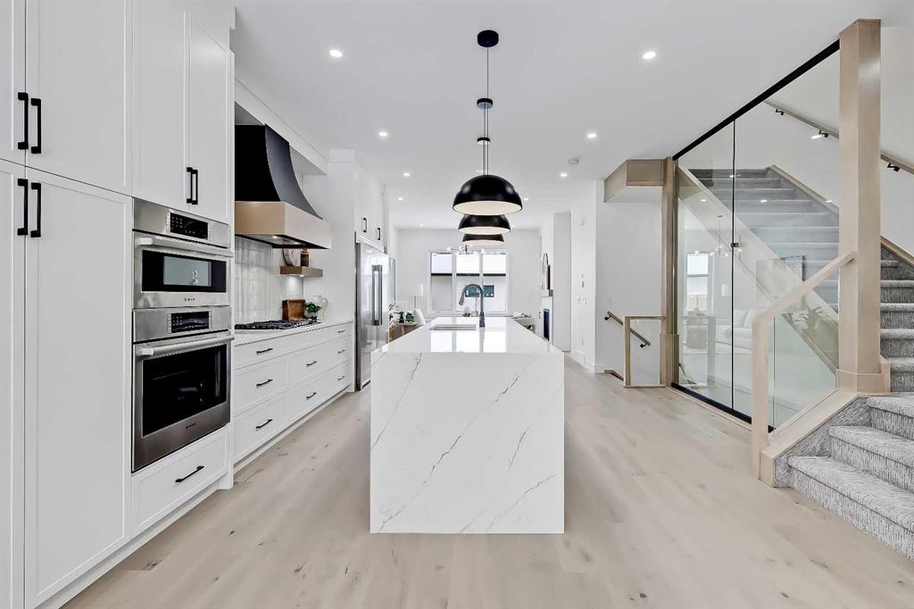 HIGH END FINISHES | WEST EXPOSURE | GLASS FEATURE WALL | VAULTED PRIMARY SUITE | SECONDARY BEDROOMS WITH TRAY CEILINGS | WALK-IN CLOSETS IN ALL BEDROOMS | HOME GYM | BUILT-IN WORK SPACE | Welcome to true luxury, inner-city living, where your home encompasses the best of both worlds – a house you’re proud to call home, and a community that receives you with open arms. Situated in the heart of KILLARNEY, a lively & active neighbourhood with mature trees and contemporary infills, with an active community association with a garden and many fun classes and activities to join! The convenience doesn’t end there – every inch of this floorplan has been thoughtfully designed for your family. The open-concept main floor features a chef’s inspired kitchen with ceiling-height custom cabinetry, a modern tile backsplash, designer pendant lights, & a vast waterfall island with ample bar seating, plus built-in feature lighting in the shelves for a truly contemporary aesthetic. Nicely finishing the kitchen is the upgraded stainless steel appliance package, which includes a double wide Full Fridge/Full Freezer, gas cooktop w/ custom hood fan, built-in wall oven, microwave, & dishwasher. The spacious living room centres on a stunning gas fireplace with custom tile, wood mantle, and built in storage. The large dining room offers oversized windows, allowing lots of natural light into the home, and the front foyer and back mudroom both host built-in closets and the rear has direct access to the elegant 2-pc powder room with stunning skirted quartz sink. A full-height glass wall takes you upstairs, where you’re greeted with hardwood floors, and the elegant primary suite showcases a soaring vaulted ceiling, oversized windows, and a spacious walk-in closet w/ built-in shelving. The spa-inspired ensuite is stylishly finished with heated tile floors, quartz countertops, dual under-mount sinks, a stand-alone soaker tub, and a stunning glass shower with rain shower and handheld shower heads. Two additional bedrooms each feature walk-in closets and soaring TRAY ceilings and share use of the 4-pc main bath w/ tub/shower combo w/ full-height tile surround. A built-in workstation is perfectly situated outside the secondary bedrooms and is perfect for a home office or homework station! There’s also a lovely laundry room w/ upper and lower cabinetry, quartz counter, and tile flooring. Downstairs, the fully developed basement has upgraded carpet w/ 8lb underlay, a large fourth/guest bedroom w/ built-in desk, and a spacious rec room with a full wet bar. Rare for many homes, this level also features a fully loaded home gym area with sport flooring! Killarney offers your family a vibrant lifestyle while still showcasing a touch of quiet suburban appeal. Shopping, restaurants, and recreation are all within easy reach – Marda Loop is only a 5-minute drive away, and downtown is easily accessible via Bow Trail or Westbrook LRT. Move in today and start enjoying this stunning home and 10/10 location!
