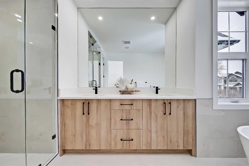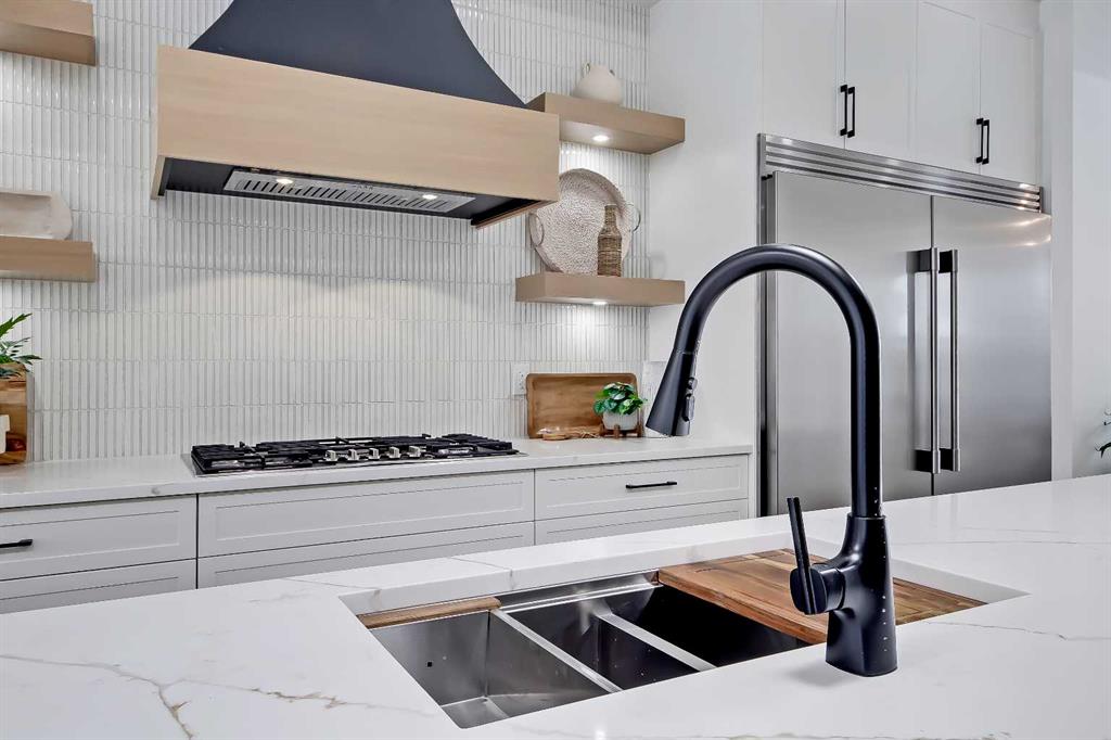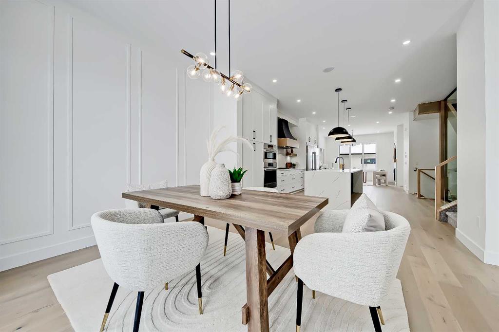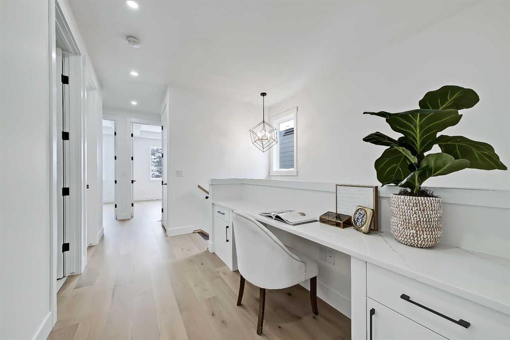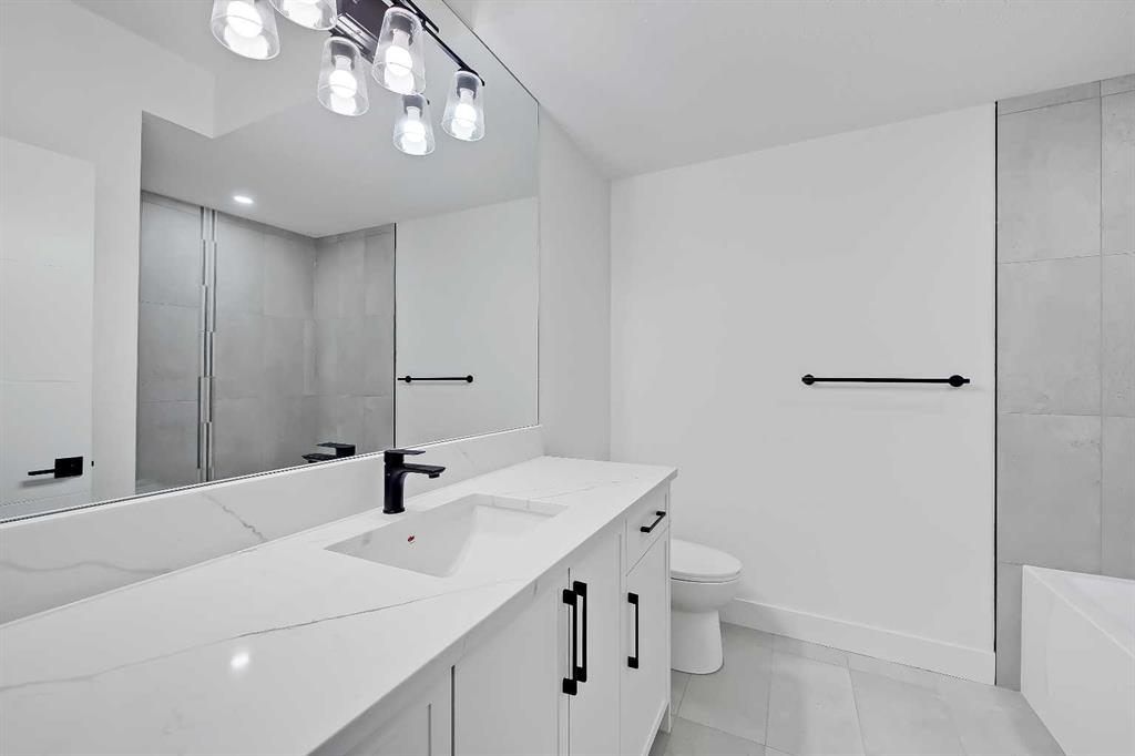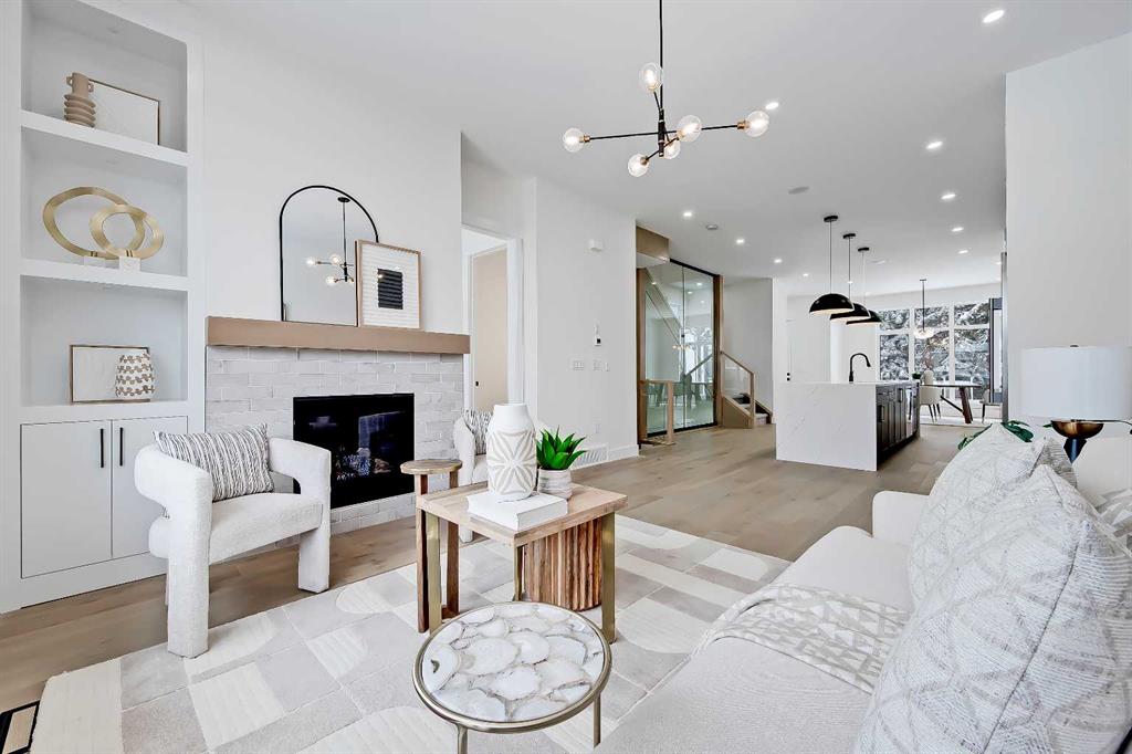 HIGH END FINISHES | WEST EXPOSURE | GLASS FEATURE WALL | VAULTED PRIMARY SUITE | SECONDARY BEDROOMS WITH TRAY CEILINGS | WALK-IN CLOSETS IN ALL BEDROOMS | HOME GYM | BUILT-IN WORK SPACE | Welcome to true luxury, inner-city living, where your home encompasses the best of both worlds – a house you’re proud to call home, and a community that receives you with open arms. Situated in the heart of KILLARNEY, a lively & active neighbourhood with mature trees and contemporary infills, with an active community association with a garden and many fun classes and activities to join! The convenience doesn’t end there – every inch of this floorplan has been thoughtfully designed for your family. The open-concept main floor features a chef’s inspired kitchen with ceiling-height custom cabinetry, a modern tile backsplash, designer pendant lights, & a vast waterfall island with ample bar seating, plus built-in feature lighting in the shelves for a truly contemporary aesthetic. Nicely finishing the kitchen is the upgraded stainless steel appliance package, which includes a double wide Full Fridge/Full Freezer, gas cooktop w/ custom hood fan, built-in wall oven, microwave, & dishwasher. The spacious living room centres on a stunning gas fireplace with custom tile, wood mantle, and built in storage. The large dining room offers oversized windows, allowing lots of natural light into the home, and the front foyer and back mudroom both host built-in closets and the rear has direct access to the elegant 2-pc powder room with stunning skirted quartz sink. A full-height glass wall takes you upstairs, where you’re greeted with hardwood floors, and the elegant primary suite showcases a soaring vaulted ceiling, oversized windows, and a spacious walk-in closet w/ built-in shelving. The spa-inspired ensuite is stylishly finished with heated tile floors, quartz countertops, dual under-mount sinks, a stand-alone soaker tub, and a stunning glass shower with rain shower and handheld shower heads. Two additional bedrooms each feature walk-in closets and soaring TRAY ceilings and share use of the 4-pc main bath w/ tub/shower combo w/ full-height tile surround. A built-in workstation is perfectly situated outside the secondary bedrooms and is perfect for a home office or homework station! There’s also a lovely laundry room w/ upper and lower cabinetry, quartz counter, and tile flooring. Downstairs, the fully developed basement has upgraded carpet w/ 8lb underlay, a large fourth/guest bedroom w/ built-in desk, and a spacious rec room with a full wet bar. Rare for many homes, this level also features a fully loaded home gym area with sport flooring! Killarney offers your family a vibrant lifestyle while still showcasing a touch of quiet suburban appeal. Shopping, restaurants, and recreation are all within easy reach – Marda Loop is only a 5-minute drive away, and downtown is easily accessible via Bow Trail or Westbrook LRT. Move in today and start enjoying this stunning home and 10/10 location!