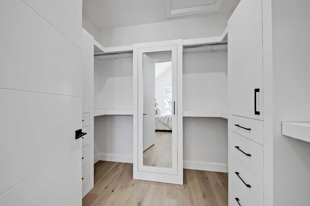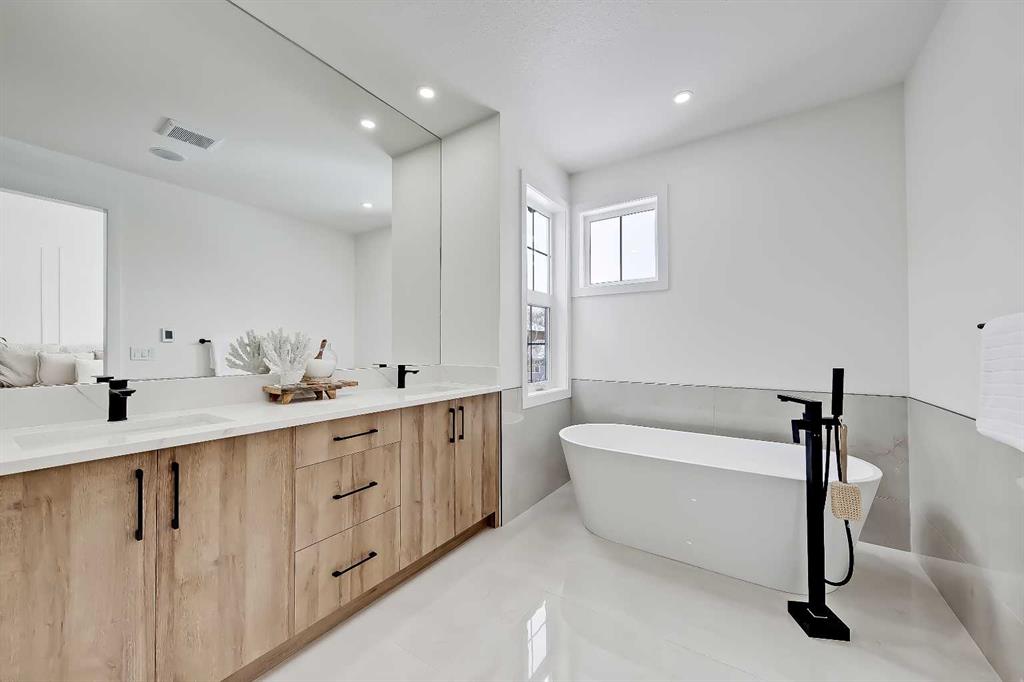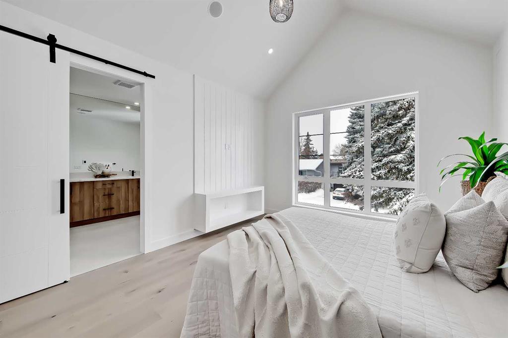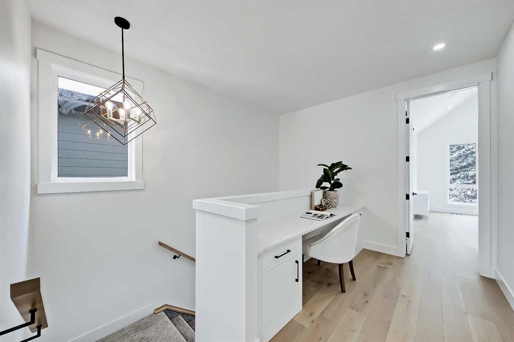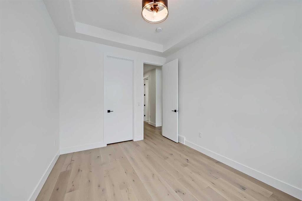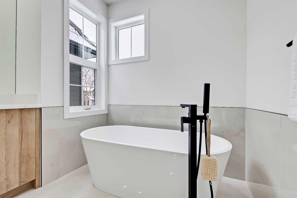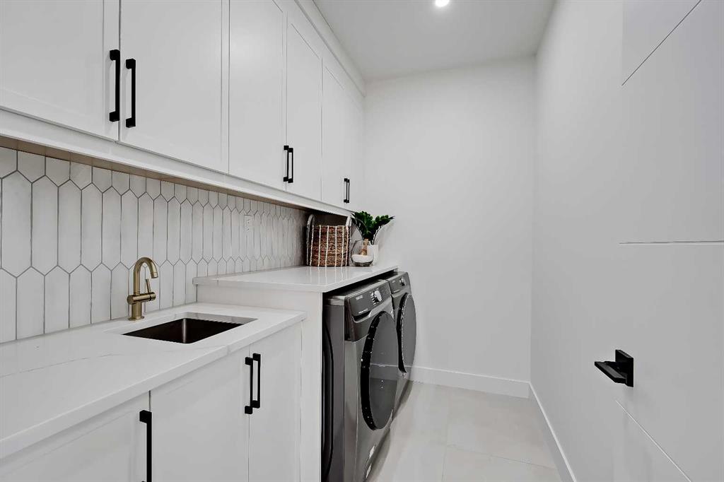 HIGH END FINISHES | WEST EXPOSURE | GLASS FEATURE WALL | VAULTED PRIMARY SUITE | SECONDARY BEDROOMS WITH TRAY CEILINGS | WALK-IN CLOSETS IN ALL BEDROOMS | HOME GYM | BUILT-IN WORK SPACE | Welcome to true luxury, inner-city living, where your home encompasses the best of both worlds – a house you’re proud to call home, and a community that receives you with open arms. Situated in the heart of KILLARNEY, a lively & active neighbourhood with mature trees and contemporary infills, with an active community association with a garden and many fun classes and activities to join! The convenience doesn’t end there – every inch of this floorplan has been thoughtfully designed for your family. The open-concept main floor features a chef’s inspired kitchen with ceiling-height custom cabinetry, a modern tile backsplash, designer pendant lights, & a vast waterfall island with ample bar seating, plus built-in feature lighting in the shelves for a truly contemporary aesthetic. Nicely finishing the kitchen is the upgraded stainless steel appliance package, which includes a double wide Full Fridge/Full Freezer, gas cooktop w/ custom hood fan, built-in wall oven, microwave, & dishwasher. The spacious living room centres on a stunning gas fireplace with custom tile, wood mantle, and built in storage. The large dining room offers oversized windows, allowing lots of natural light into the home, and the front foyer and back mudroom both host built-in closets and the rear has direct access to the elegant 2-pc powder room with stunning skirted quartz sink. A full-height glass wall takes you upstairs, where you’re greeted with hardwood floors, and the elegant primary suite showcases a soaring vaulted ceiling, oversized windows, and a spacious walk-in closet w/ built-in shelving. The spa-inspired ensuite is stylishly finished with heated tile floors, quartz countertops, dual under-mount sinks, a stand-alone soaker tub, and a stunning glass shower with rain shower and handheld shower heads. Two additional bedrooms each feature walk-in closets and soaring TRAY ceilings and share use of the 4-pc main bath w/ tub/shower combo w/ full-height tile surround. A built-in workstation is perfectly situated outside the secondary bedrooms and is perfect for a home office or homework station! There’s also a lovely laundry room w/ upper and lower cabinetry, quartz counter, and tile flooring. Downstairs, the fully developed basement has upgraded carpet w/ 8lb underlay, a large fourth/guest bedroom w/ built-in desk, and a spacious rec room with a full wet bar. Rare for many homes, this level also features a fully loaded home gym area with sport flooring! Killarney offers your family a vibrant lifestyle while still showcasing a touch of quiet suburban appeal. Shopping, restaurants, and recreation are all within easy reach – Marda Loop is only a 5-minute drive away, and downtown is easily accessible via Bow Trail or Westbrook LRT. Move in today and start enjoying this stunning home and 10/10 location!