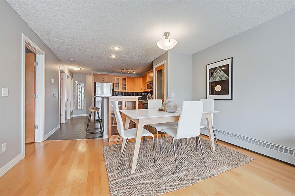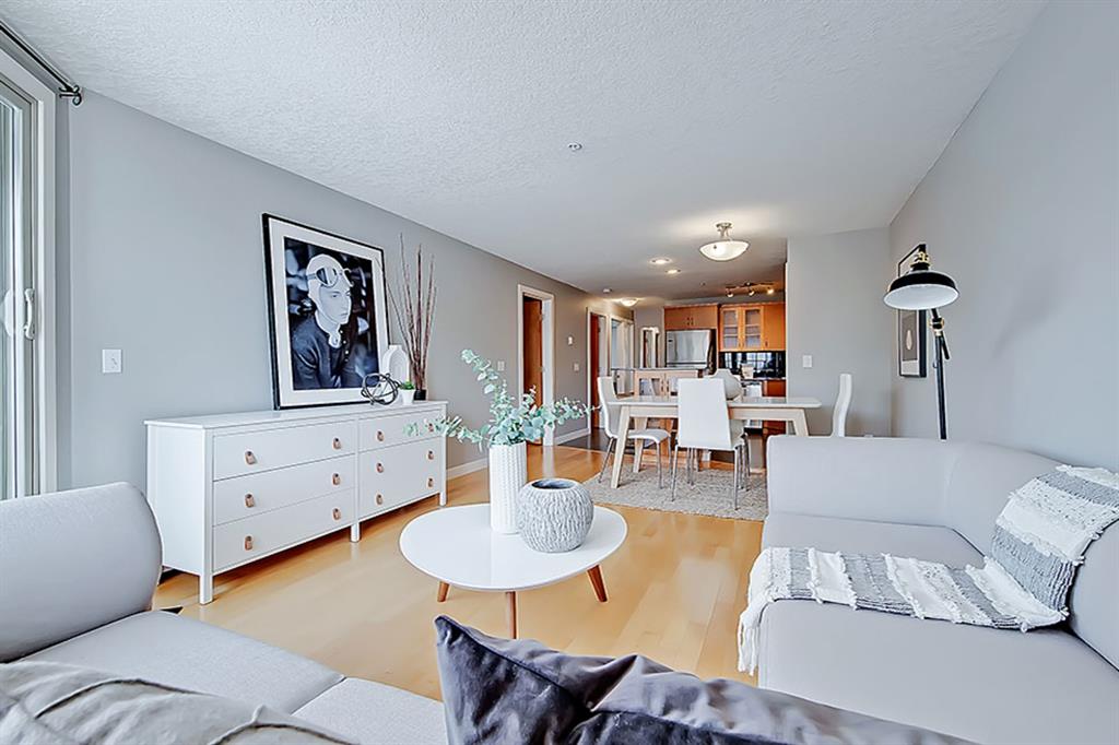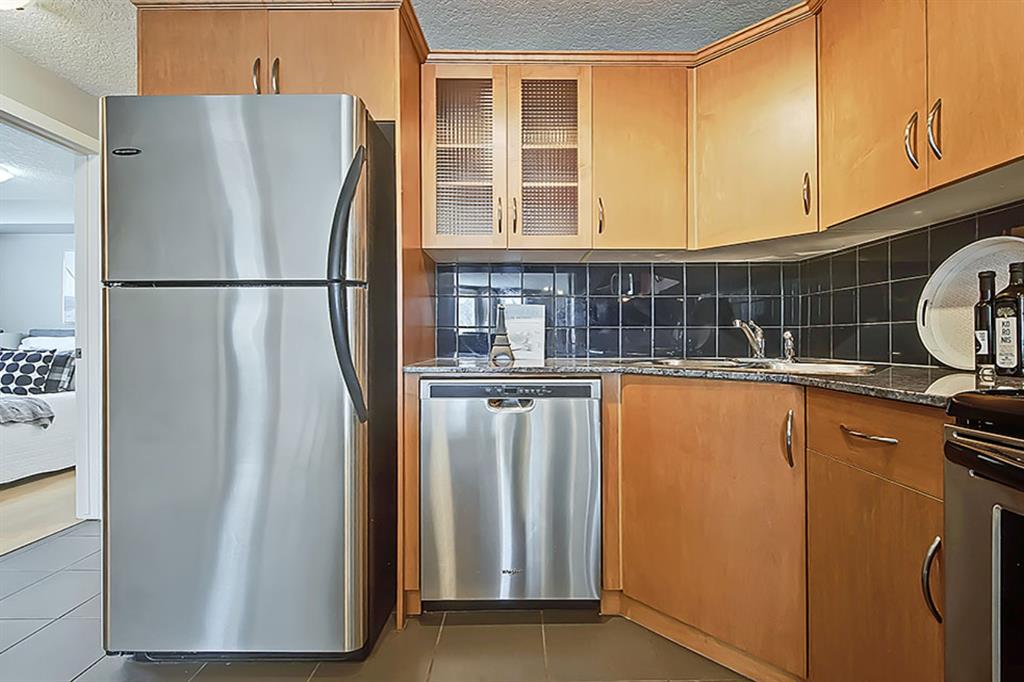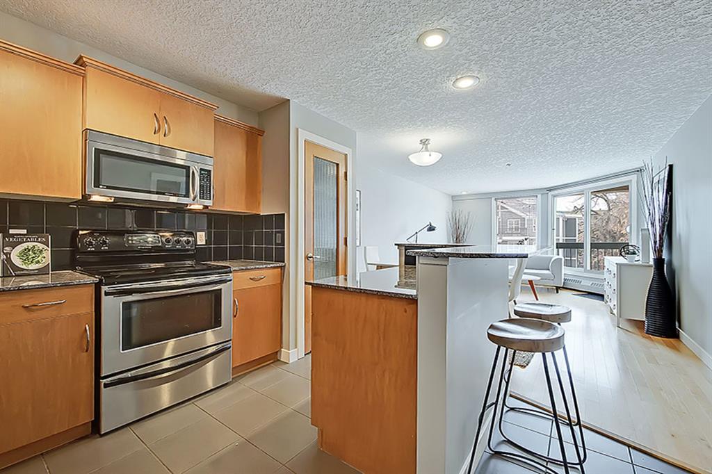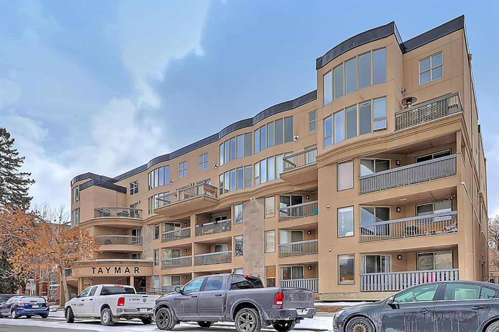 Welcome to Taymar – a highly walkable, beautifully upgraded CONCRETE condo building in the trendy neighbourhood of MISSION! Just off 17th Ave and 4th St, you’re close to everything you want at your doorstep – trendy shops, popular restaurants, lively nightlife, outdoor recreation, and the beautiful Elbow River. Tasteful finishings and an open-concept layout make this 2-BED spacious condo incredibly desirable, complete with engineered hardwood and tile flooring (no carpet!). The modern kitchen features cabinets with glass doors w/display shelves, stainless steel appliances, a full built-in pantry, and timeless maple cabinets complimented by granite counters and designer fixtures. Space for a 4-person dining table allows for entertaining and weeknight meals, with additional bar seating available on the raised peninsula counter on the central island. The living room has large windows for natural light, including the sliding glass door that takes you out to the sizeable SOUTH FACING balcony with gas line hook up great for barbecuing and plenty of room for an outdoor table and chairs. Two spacious bedrooms are perfect for roommates or to use one as a home office, each with a walk-in closet. The 4-pc bathroom features a good-sized vanity, tile floors, and a tub/shower combo with a full-height white tile surround. No condo is complete without building features and amenities! This unit comes complete with in-suite laundry with a stacked washer/dryer, TITLED underground HEATED parking , as well as a sizeable storage locker conveniently located in front of your parking stall. Mission is a vibrant community that you will fall in love with immediately! You’re just two blocks from 17th Ave and The Ship & Anchor, Model Milk, National on 17th, Una Pizza, and more. 4th Street, only half a block away, has Seed & Salt, Blaze Pizza, Foo Asian Street Food, Frilly Lilly, Anejo, HotShop Spin Studio, Safeway, and other amenities. When you want to take a moment away from the hustle-and-bustle of inner-city living, head a block East, and you’re at the picturesque Elbow River with many pathways, Lindsay Park, and the Repsol Sports Centre. It’s truly a location you can’t beat!